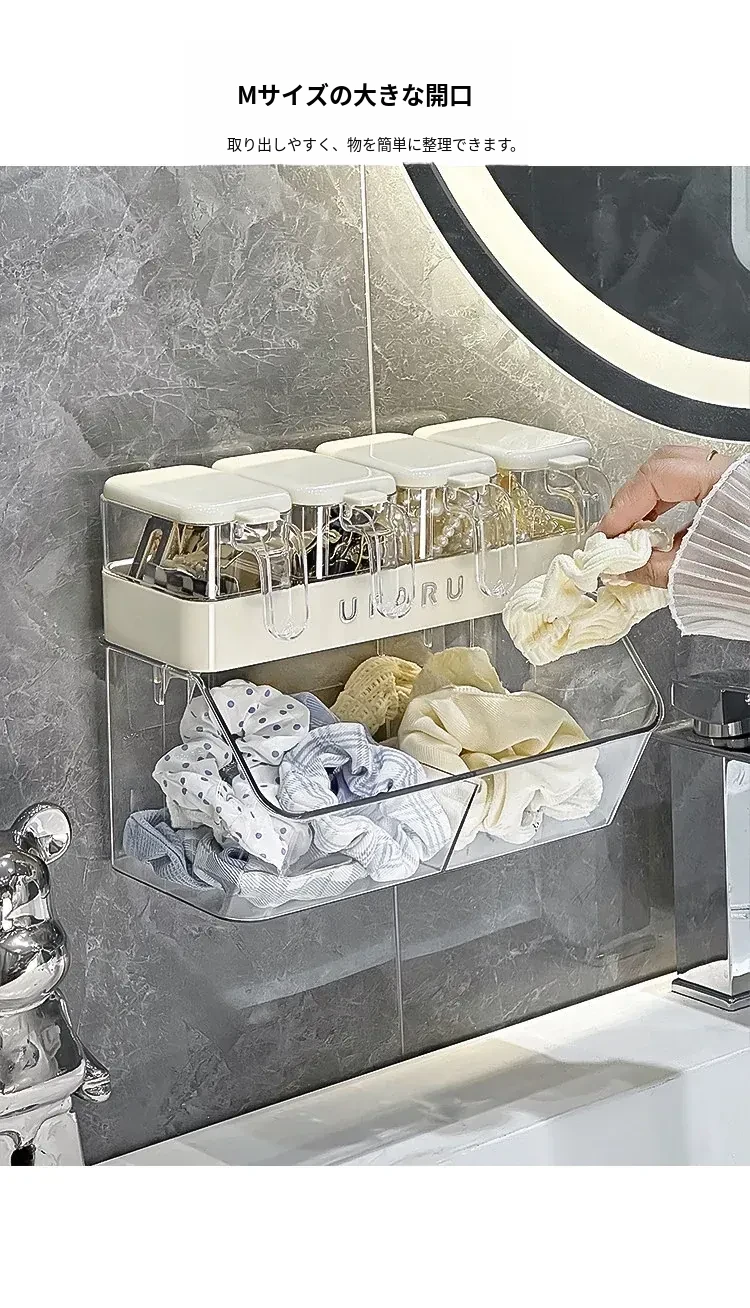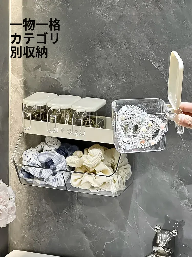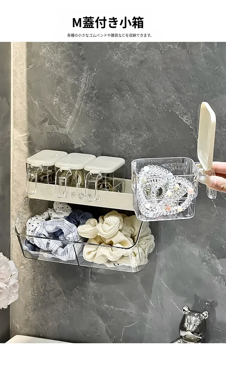 バスルーム4区ボックスジュエリーボックス【ヘアアクセサリー用 ゴム】