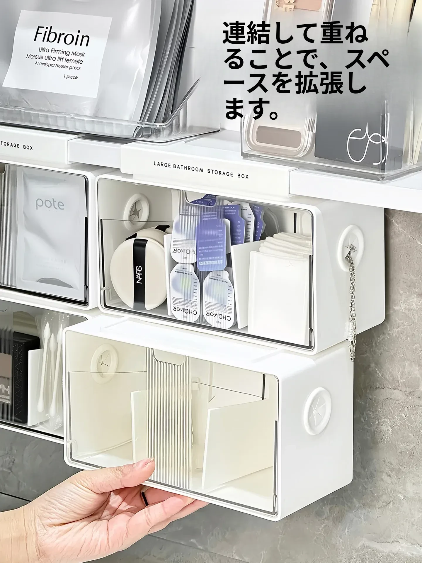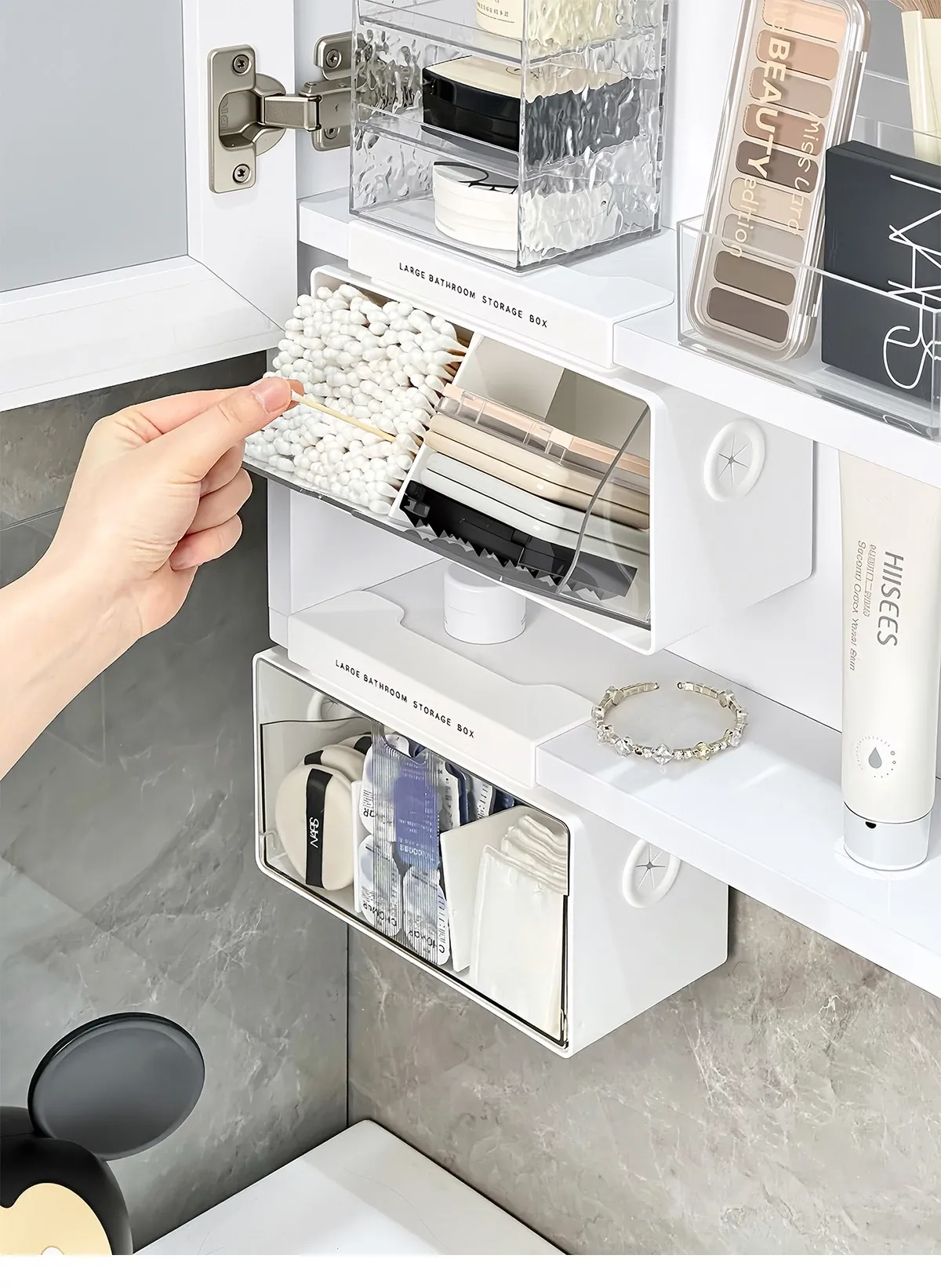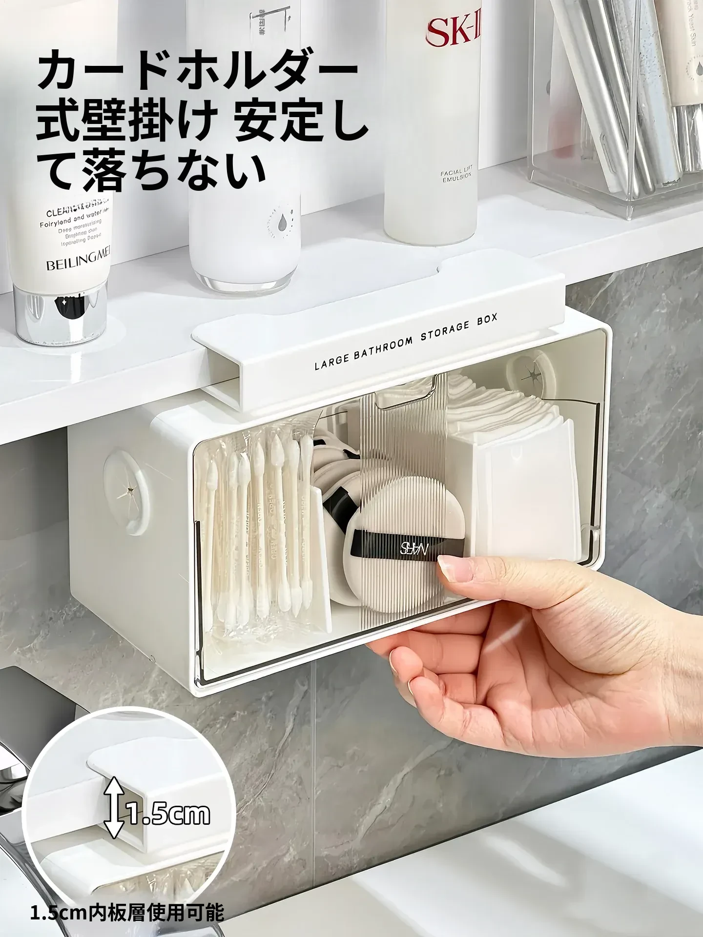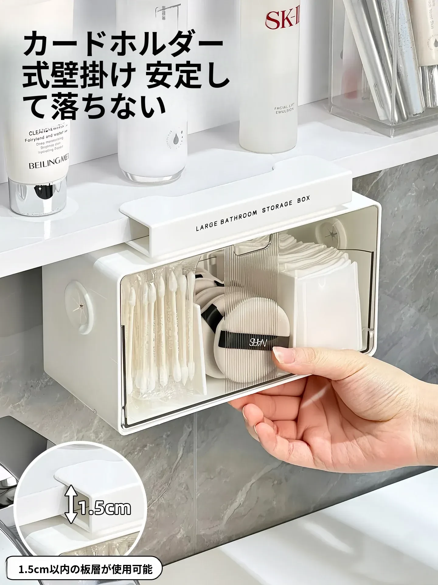 アクリル透明化粧品収納ボックス - 鏡付きキャビネット専用整理棚!バスルームの必需品、効率的にスペースを活用し、化粧品をスッキリ整理。使いやすい仕切り付きで、美しさを保つお手伝いをします。