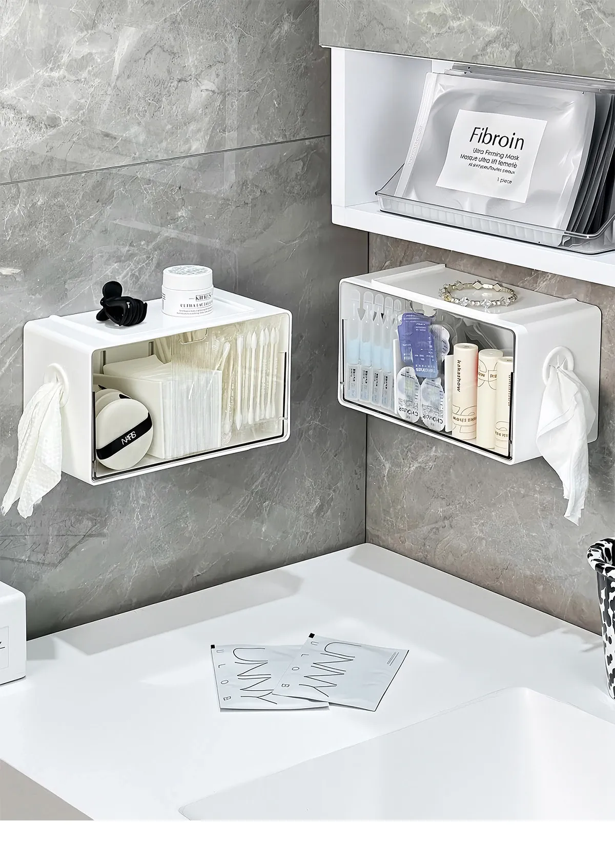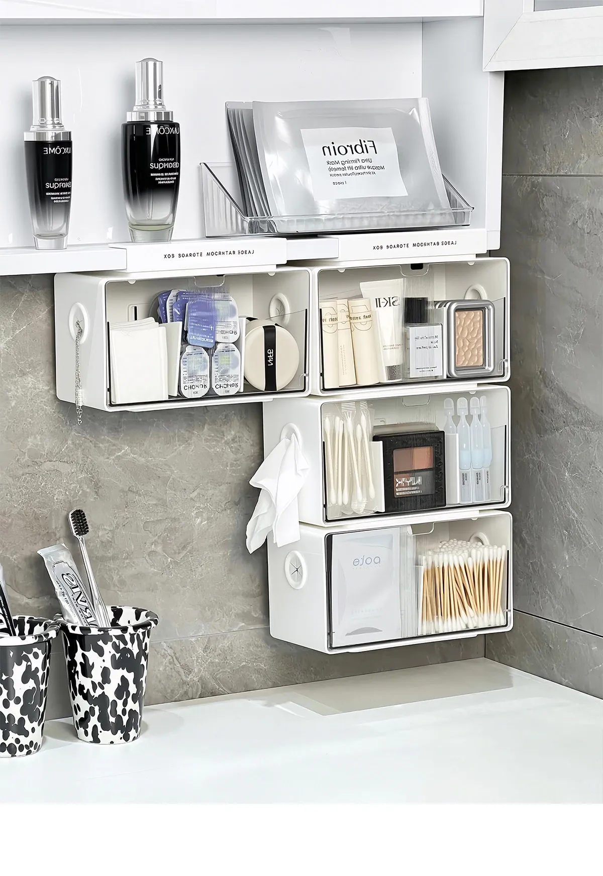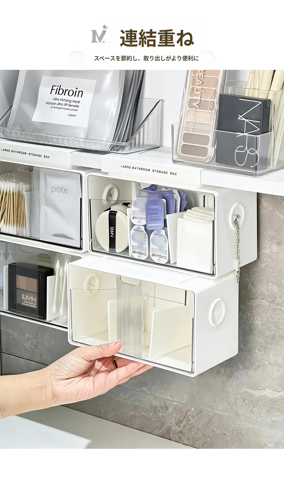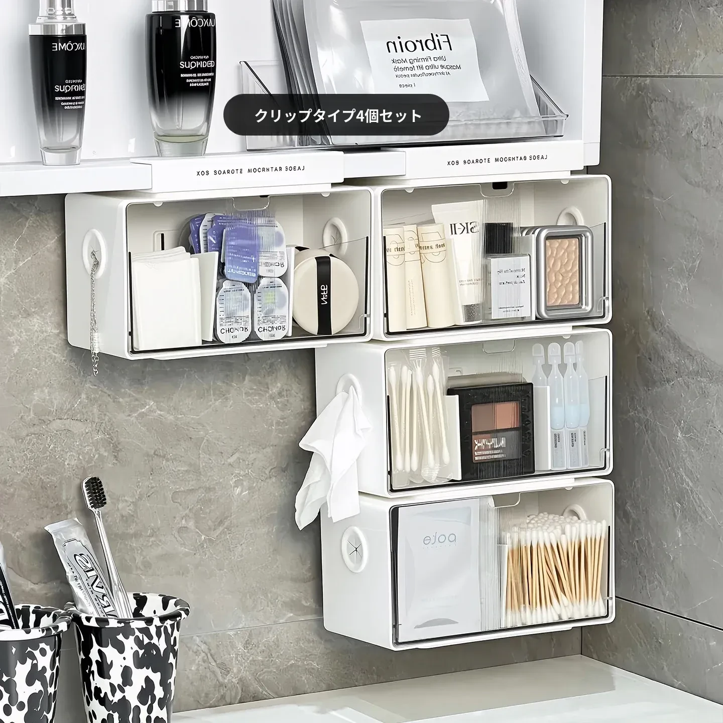 アクリル透明化粧品収納ボックス - 鏡付きキャビネット専用整理棚!バスルームの必需品、効率的にスペースを活用し、化粧品をスッキリ整理。使いやすい仕切り付きで、美しさを保つお手伝いをします。