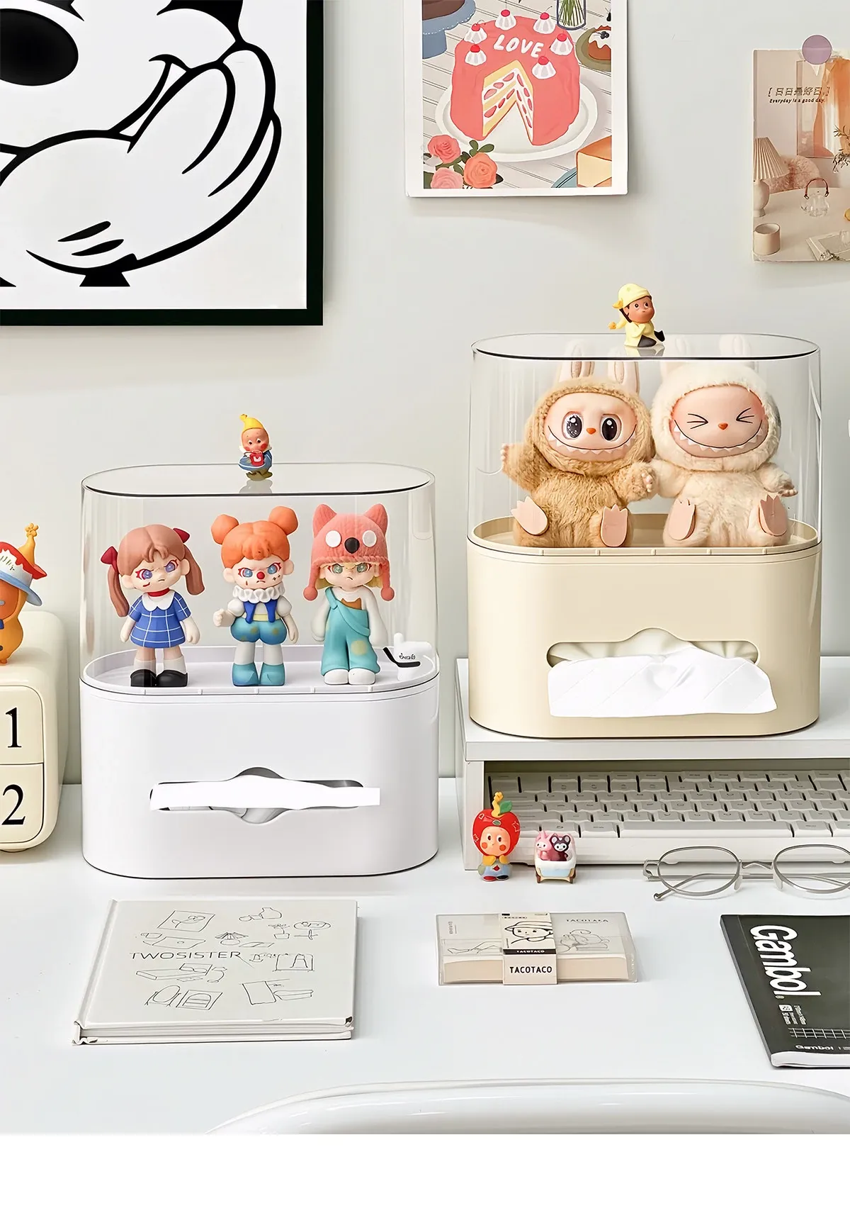 スタイリッシュなデスク用星型フィギュア展示ボックス!ホコリから守るアクリル製収納ケースで、ラブブのフィギュアを美しく飾りつけ。クリエイティブなティッシュボックスとしても活用可能!あなたのコレクションを引き立てる必見アイテム!