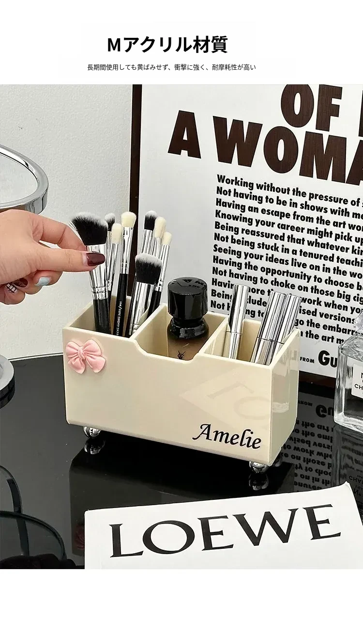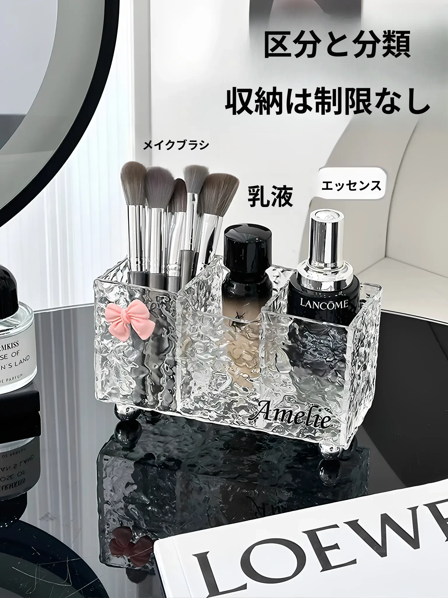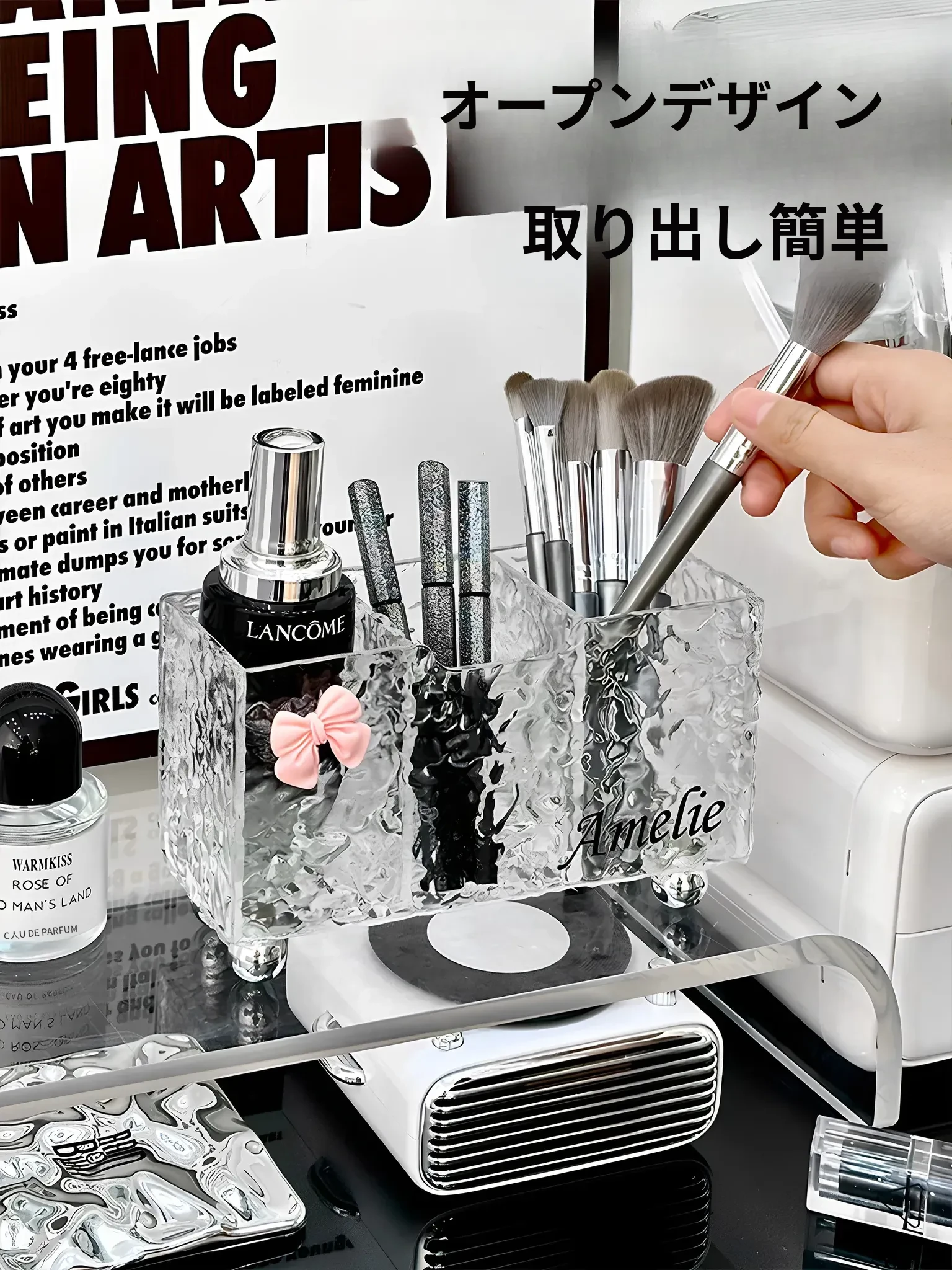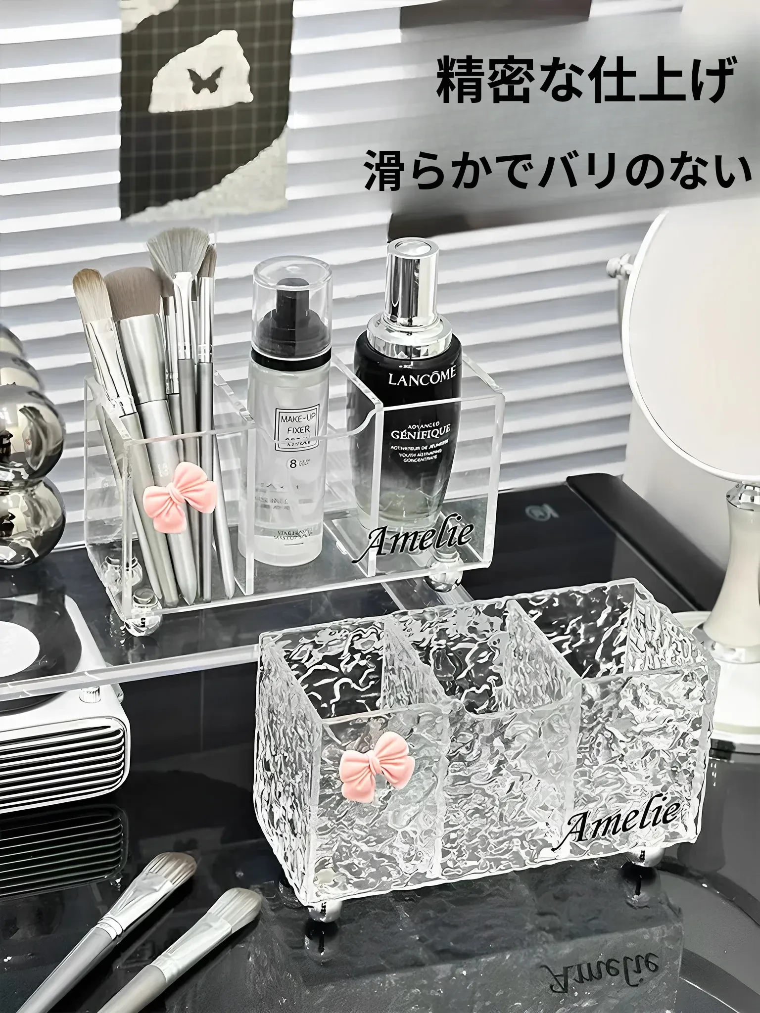 透明アクリル収納ボックス - 高級感漂うデスクトップメイクブラシ収納筒!リップスティック整理ボックス付き、洗練された化粧台を実現する収納ラック。