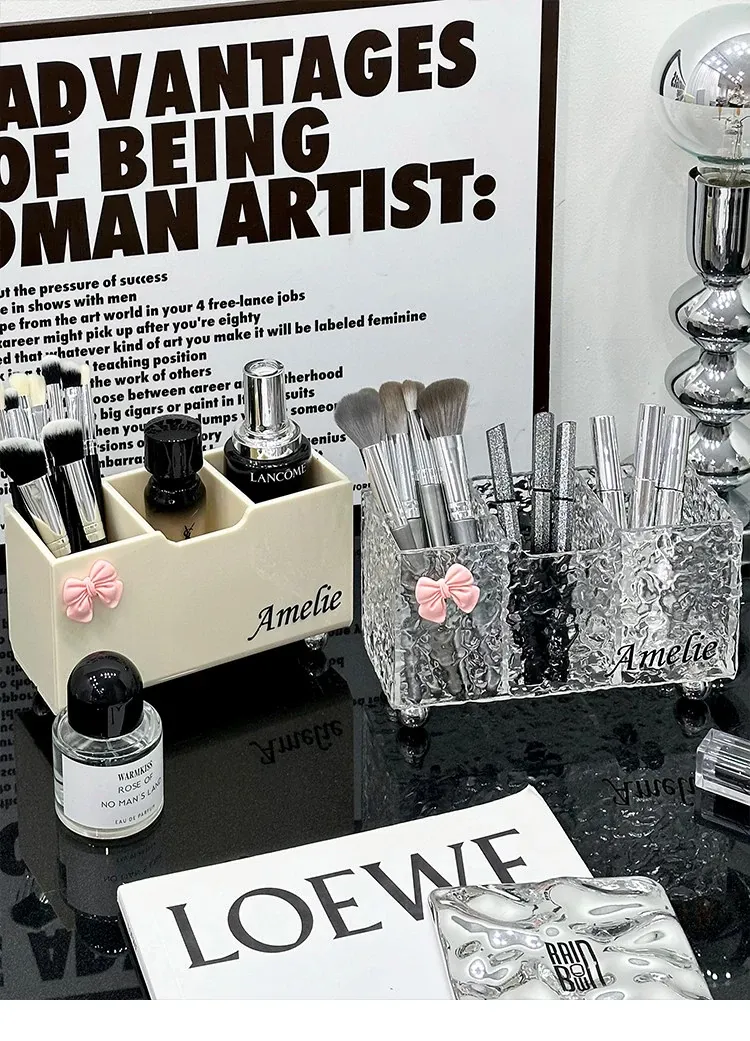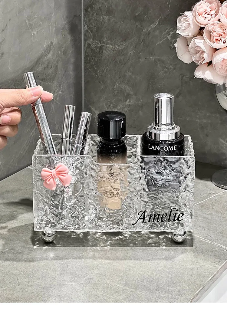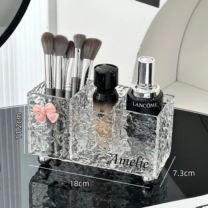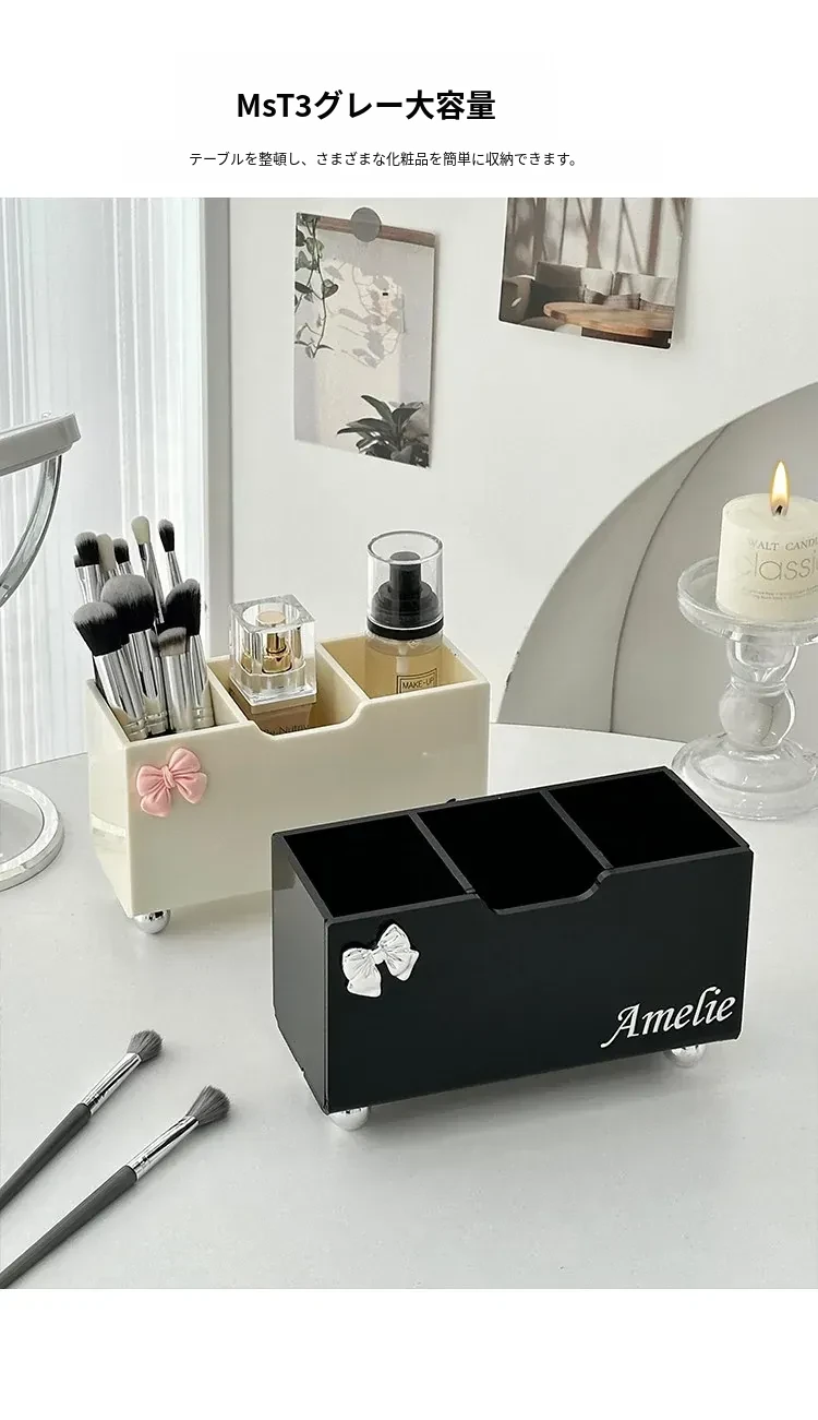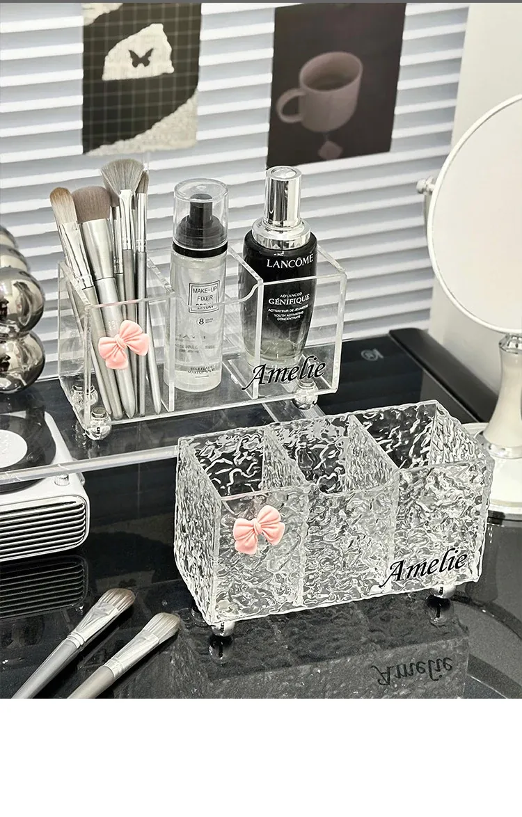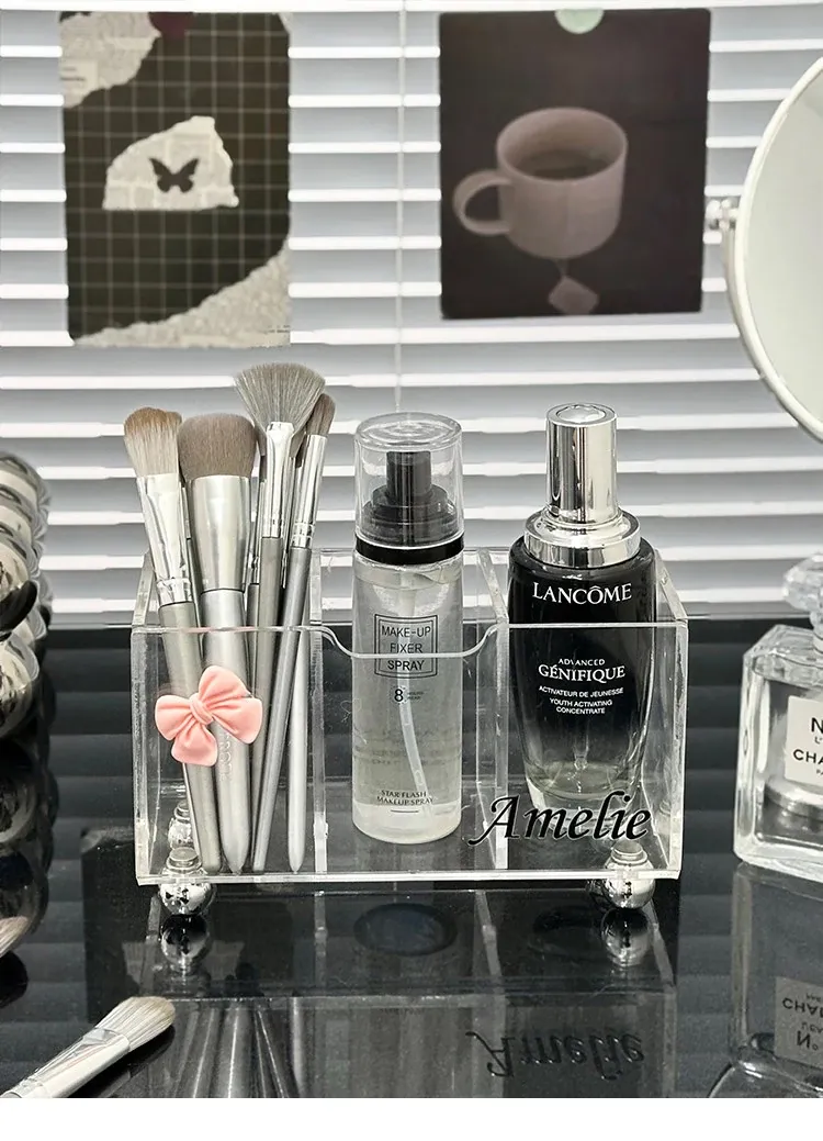 透明アクリル収納ボックス - 高級感漂うデスクトップメイクブラシ収納筒!リップスティック整理ボックス付き、洗練された化粧台を実現する収納ラック。