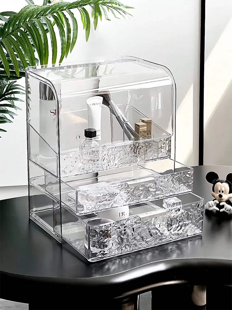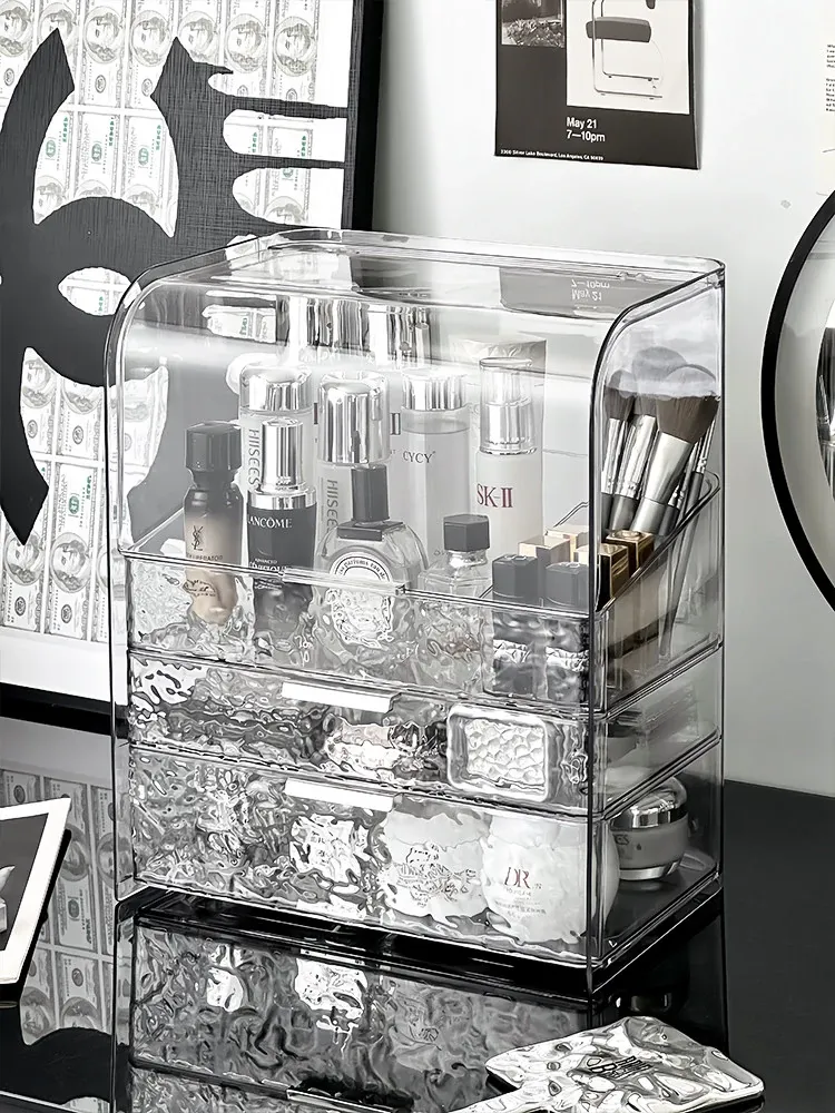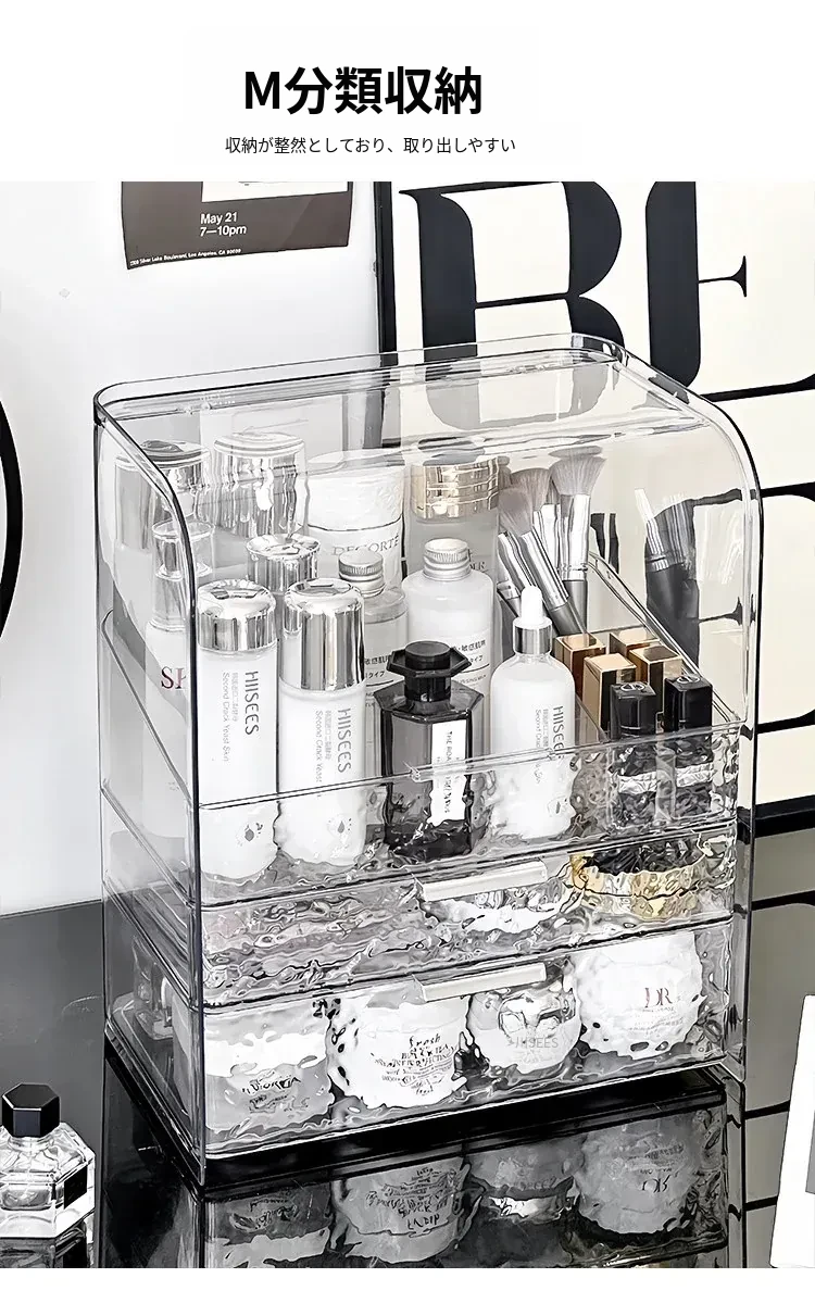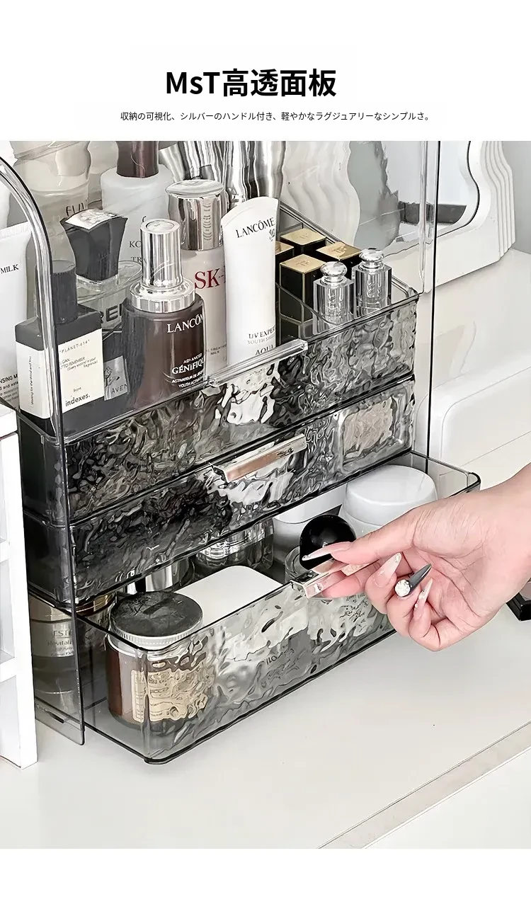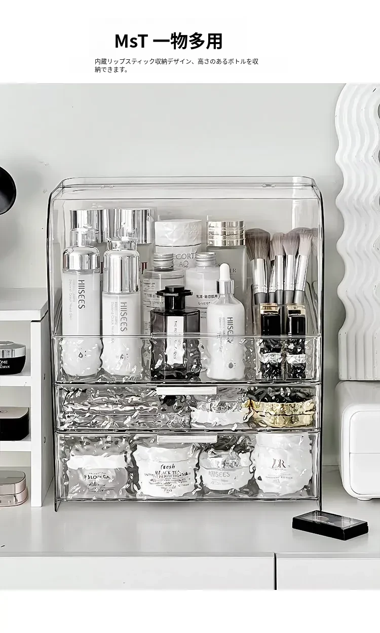メイクアップ収納ボックス・ドレッサーデスク用アクリル製防塵整理ボックス!化粧品や香水、リップをスッキリ収納。おしゃれで機能的なアイテムで、あなたのビューティースペースをグレードアップ!