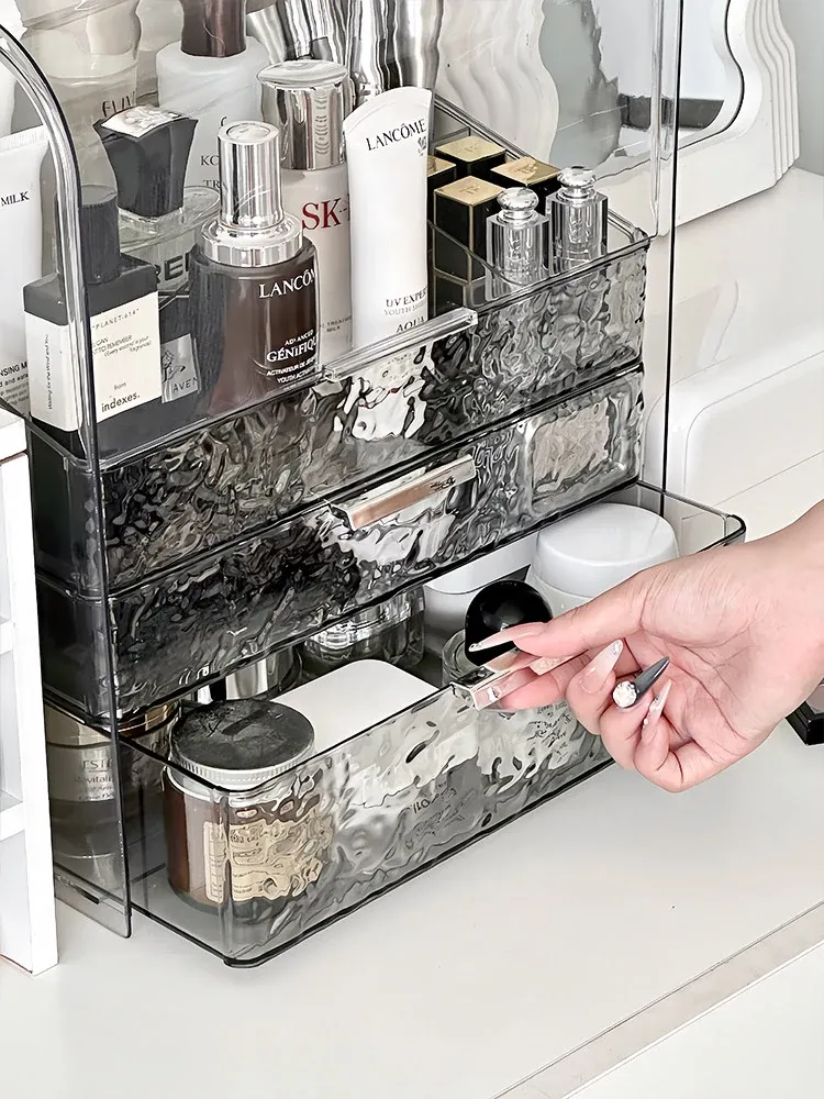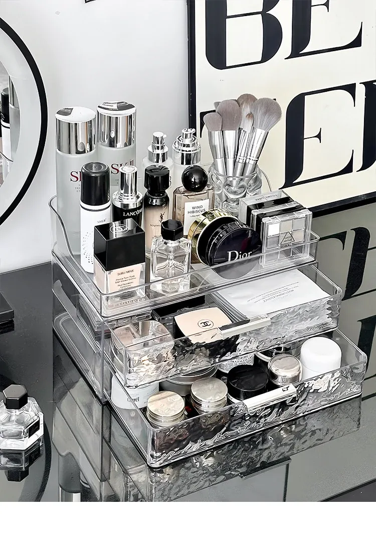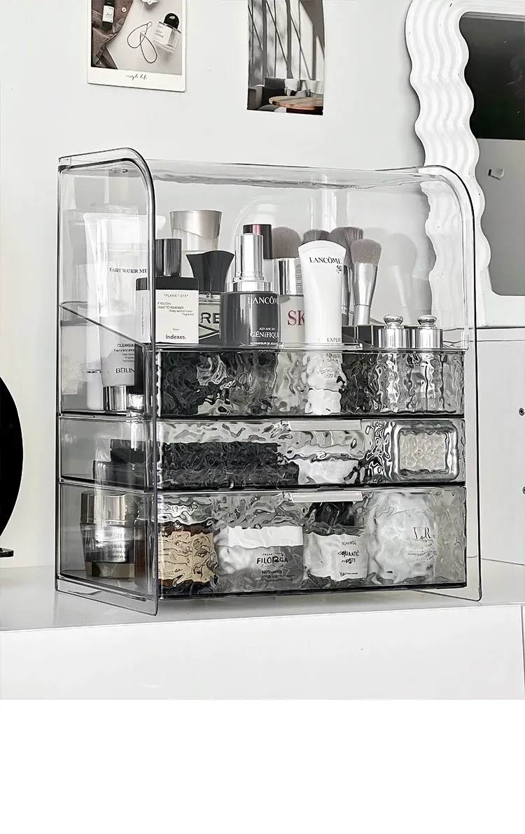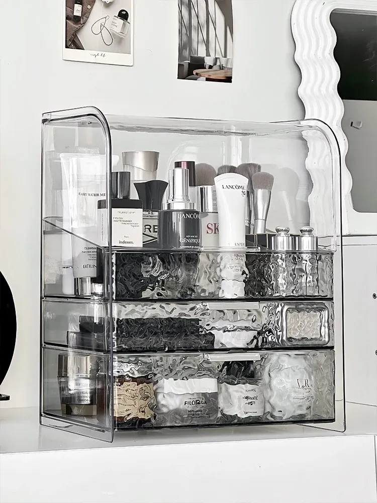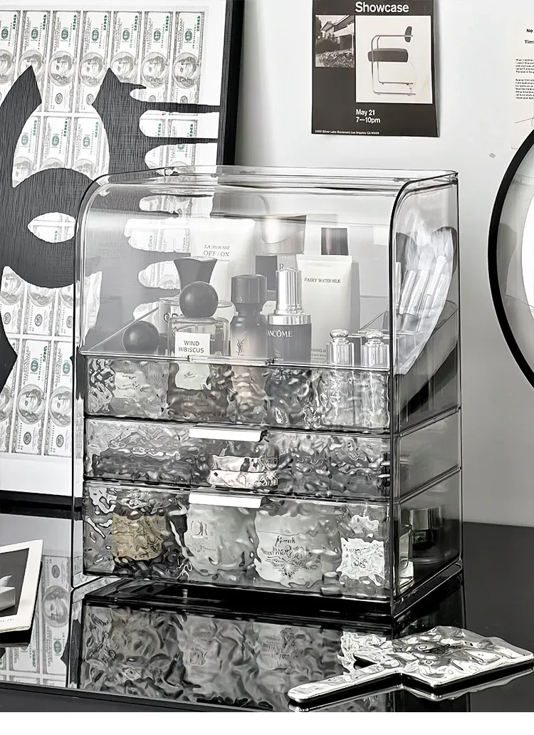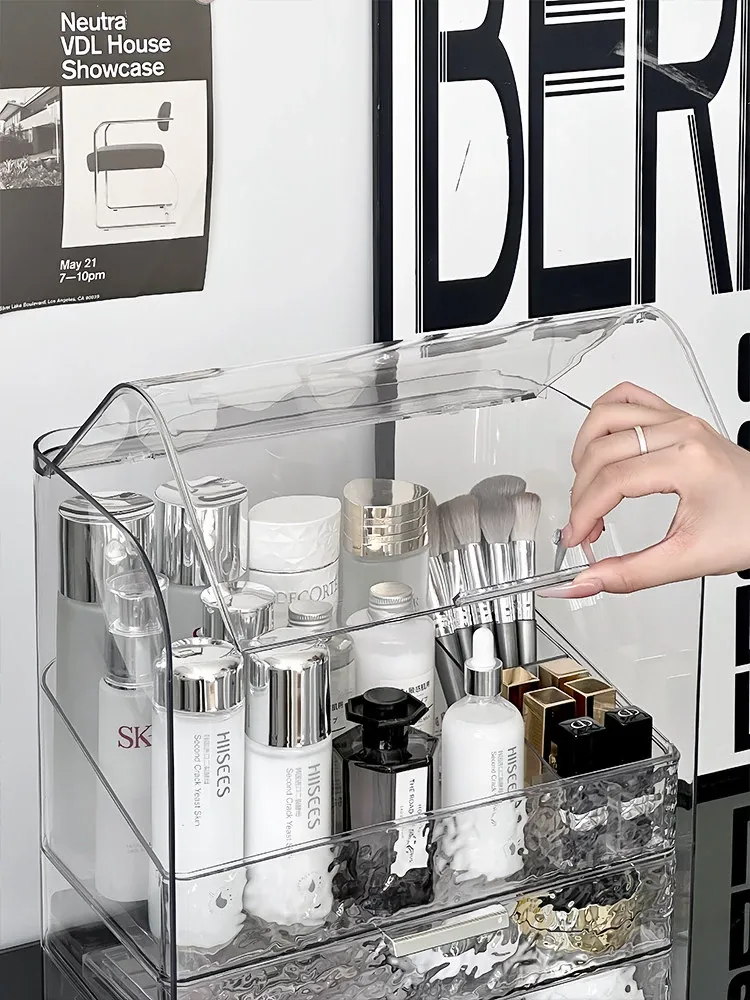 メイクアップ収納ボックス・ドレッサーデスク用アクリル製防塵整理ボックス!化粧品や香水、リップをスッキリ収納。おしゃれで機能的なアイテムで、あなたのビューティースペースをグレードアップ!