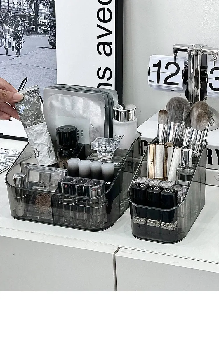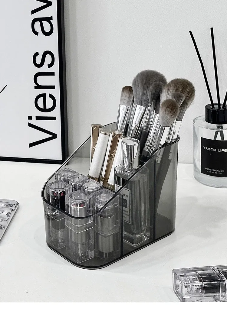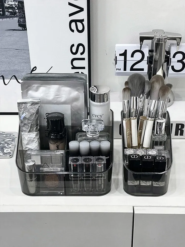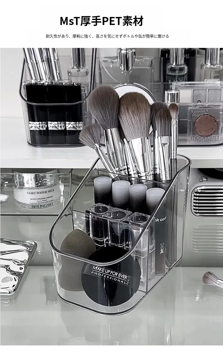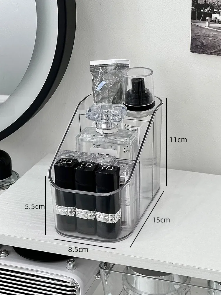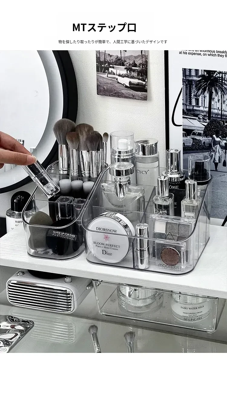 デスクトップ用アクリル化粧品収納ボックス - メイクブラシ・リップスティック・スキンケアをすっきり整理!透明デザインで美しさを引き立て、あなたの化粧台をスタイリッシュに演出します。