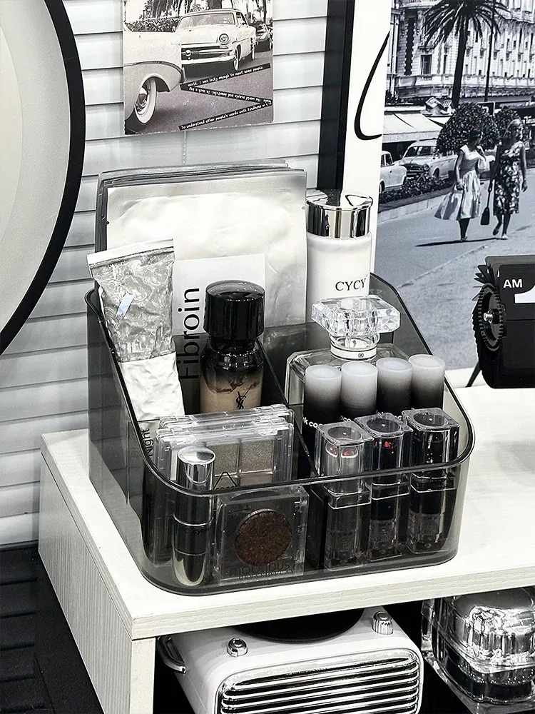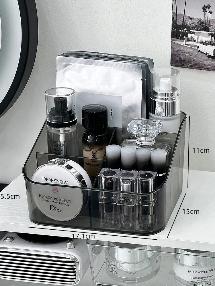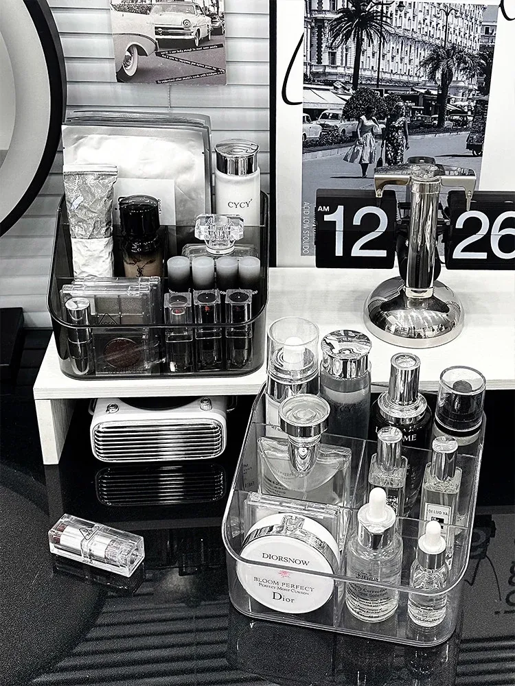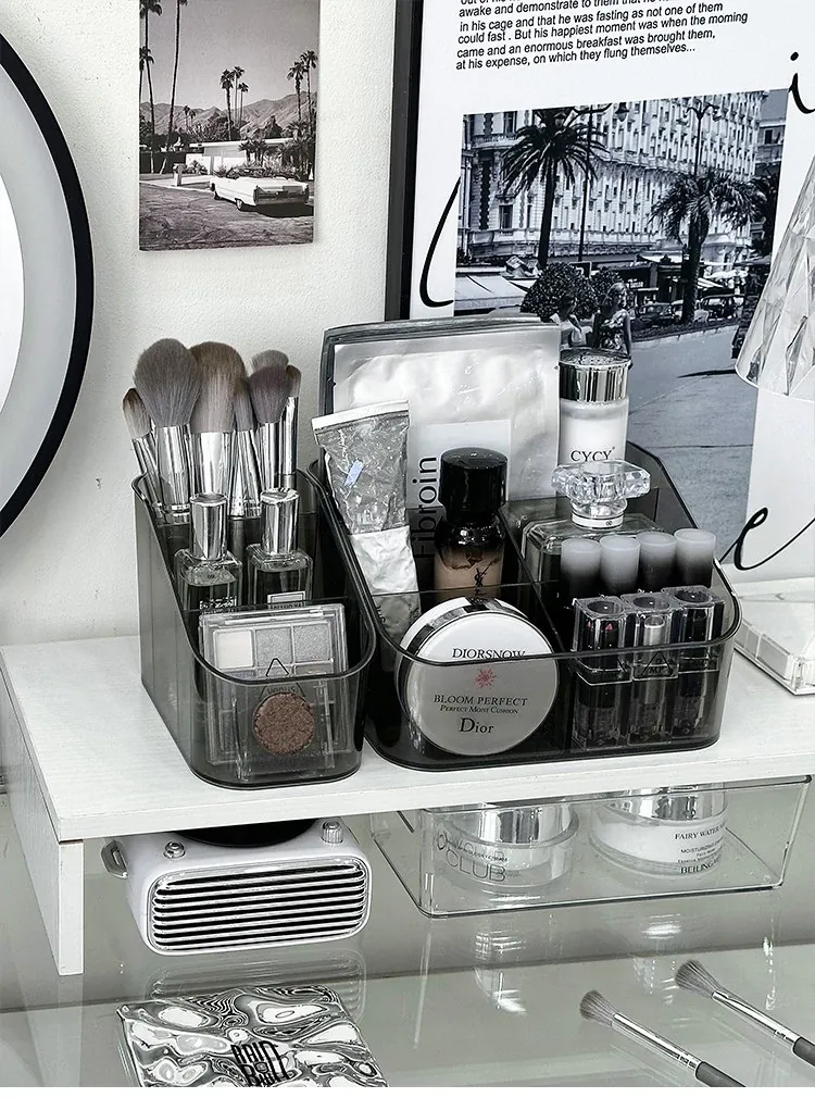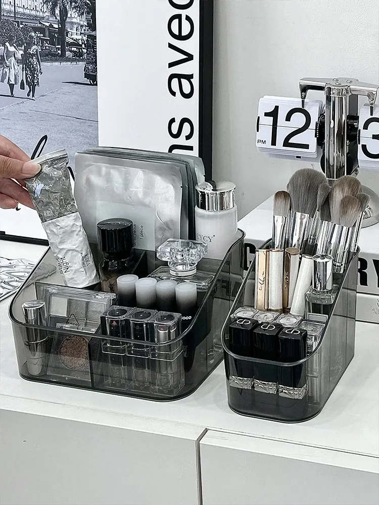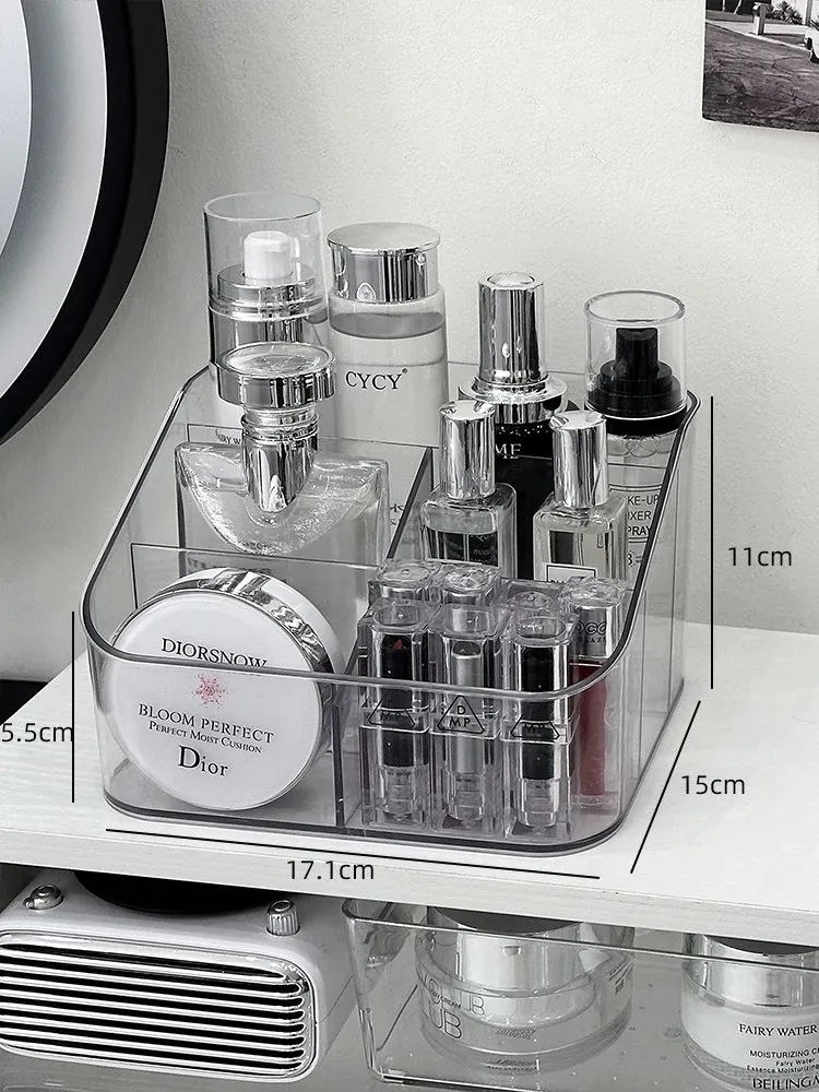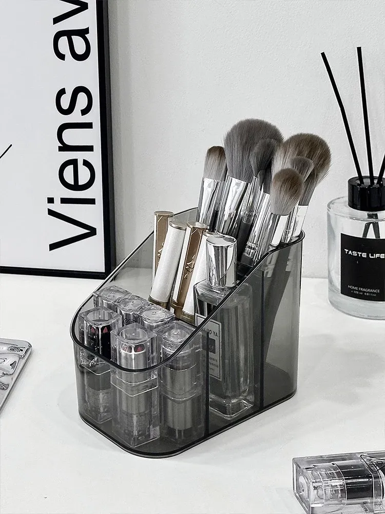 デスクトップ用アクリル化粧品収納ボックス - メイクブラシ・リップスティック・スキンケアをすっきり整理!透明デザインで美しさを引き立て、あなたの化粧台をスタイリッシュに演出します。