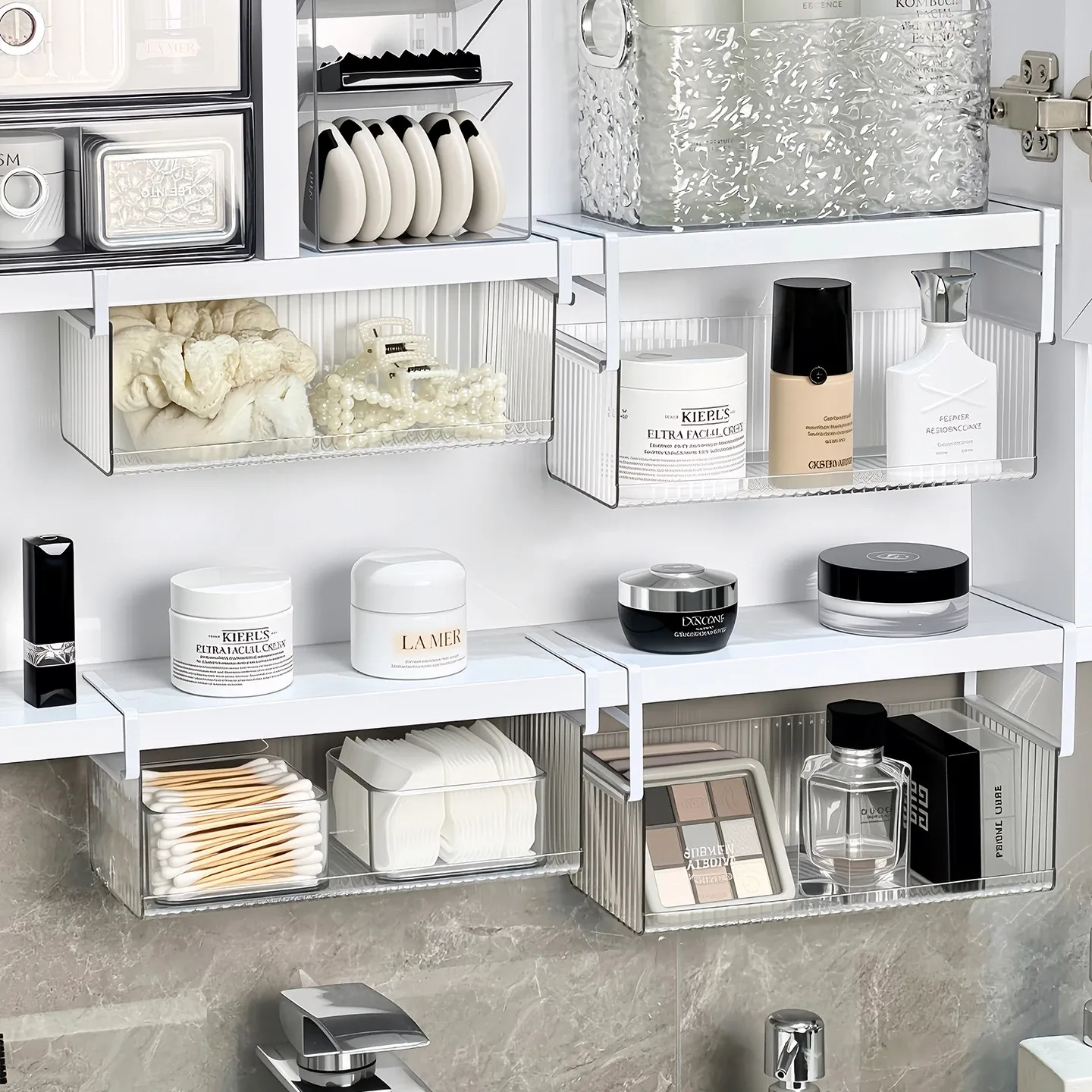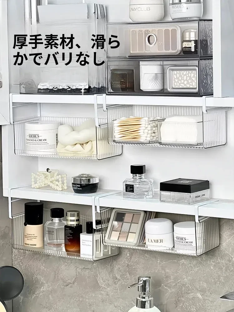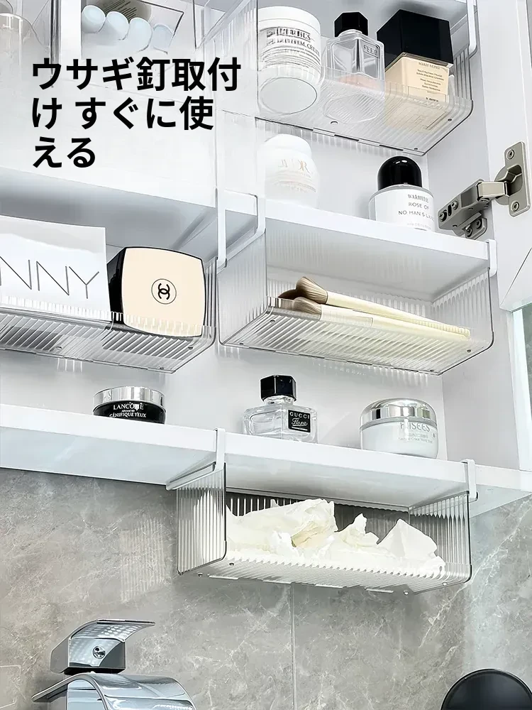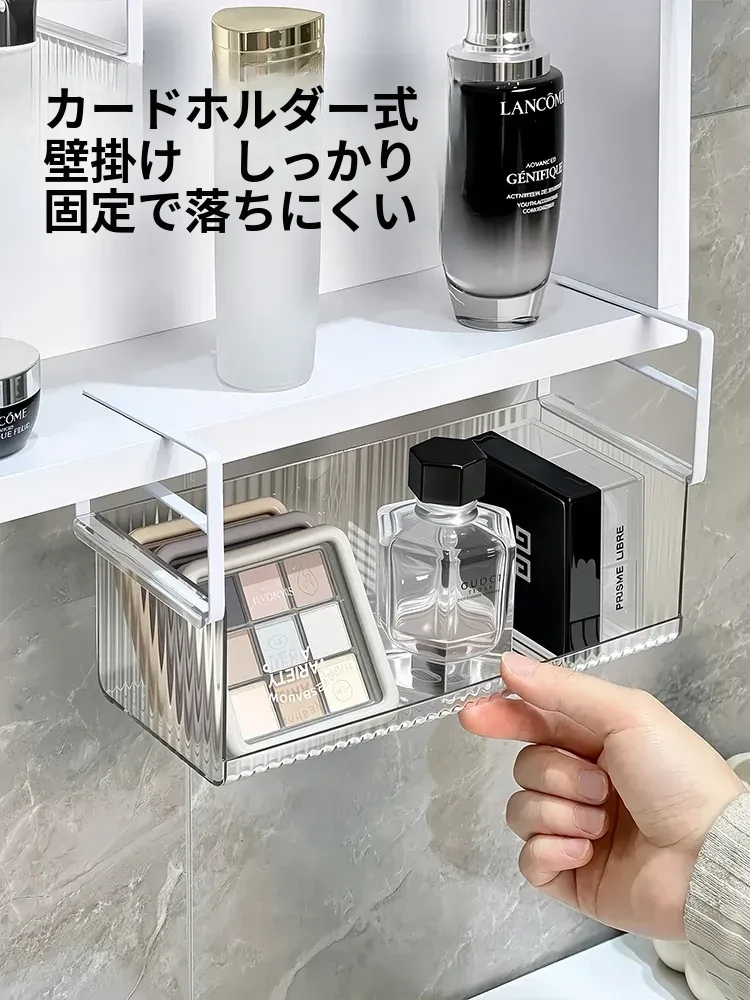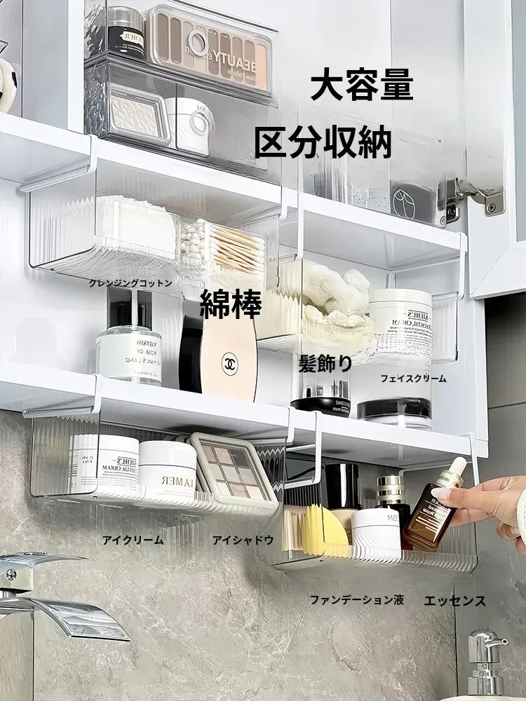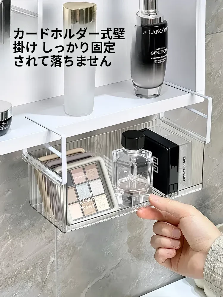 透明アクリル製ミラーキャビネット収納ボックス - バスルーム用化粧品整理ラック!コットンやクレンジングパッドもすっきり収納できる便利なアイテム。おしゃれで実用的な収納で、あなたの毎日の美容ルーチンをサポートします!