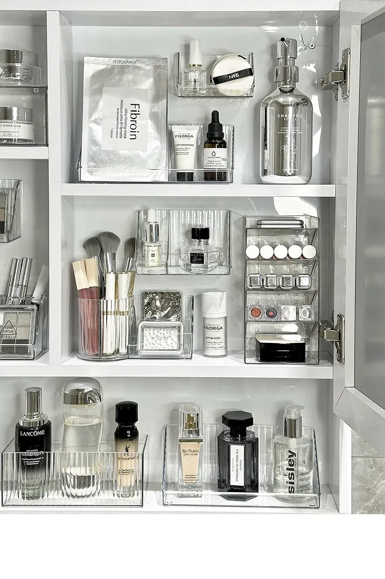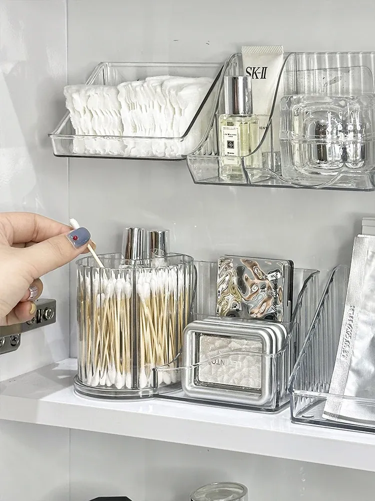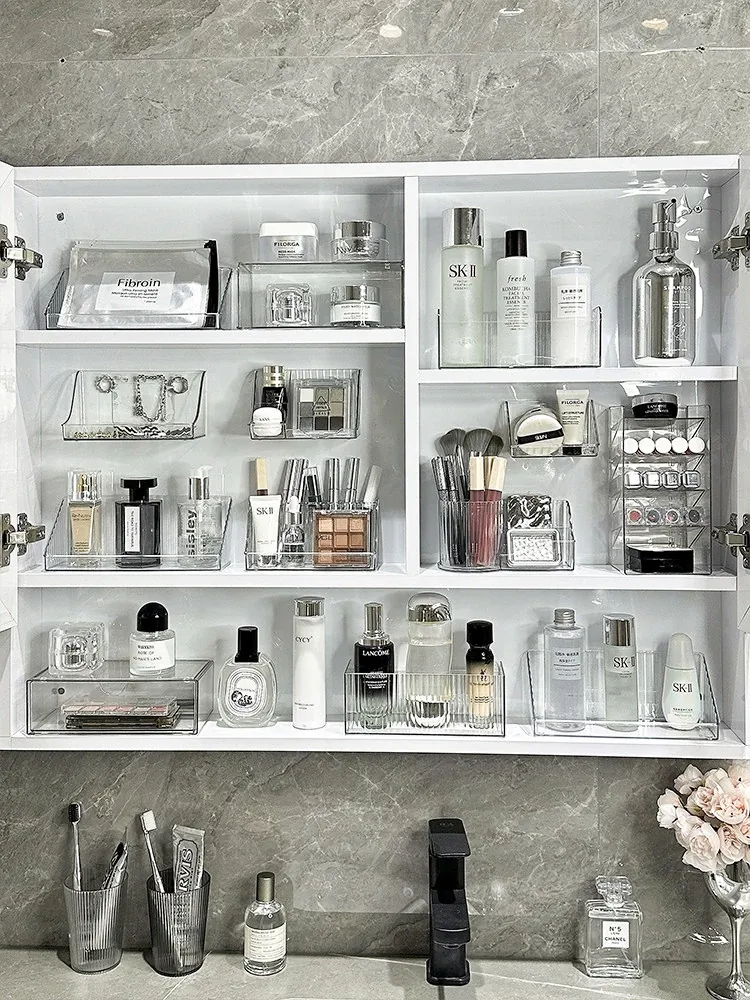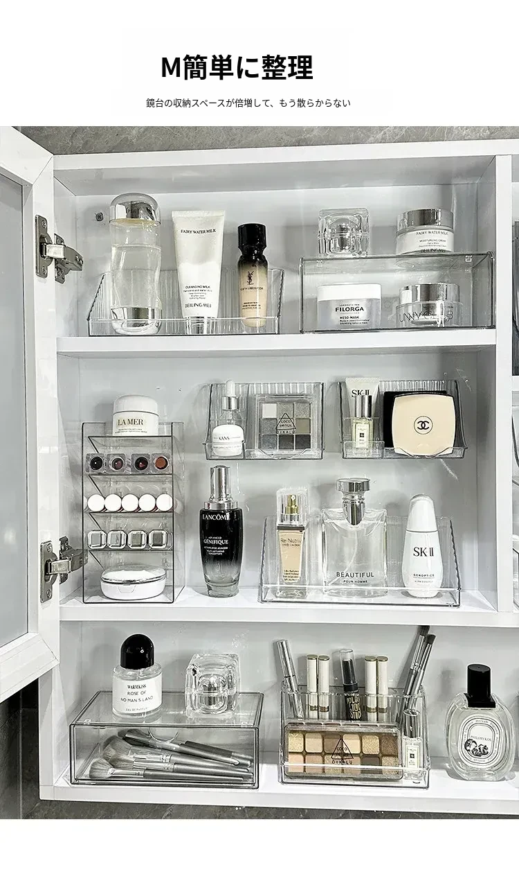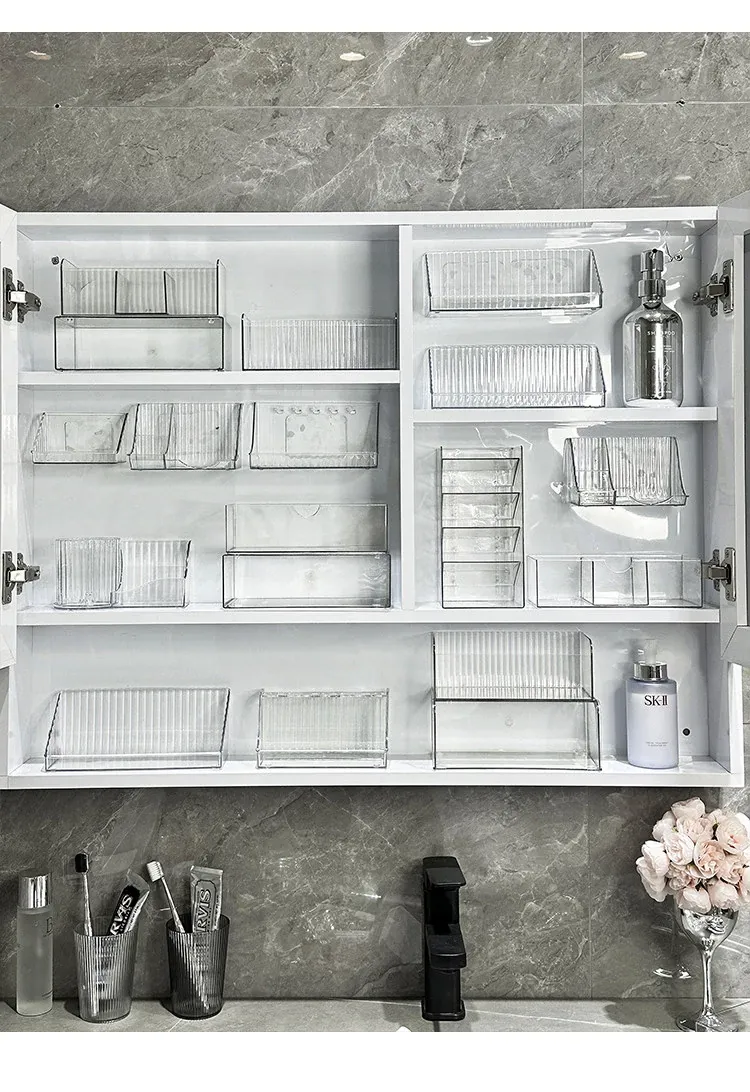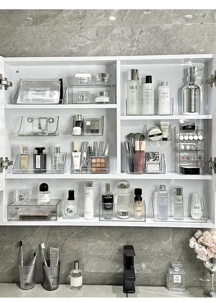 洗面台をスッキリ整理!アクリル製の透明ミラーキャビネット収納ボックス - 化粧品や綿棒を美しく収納できる壁掛け式の便利アイテムです。おしゃれで機能的な空間を手に入れましょう!