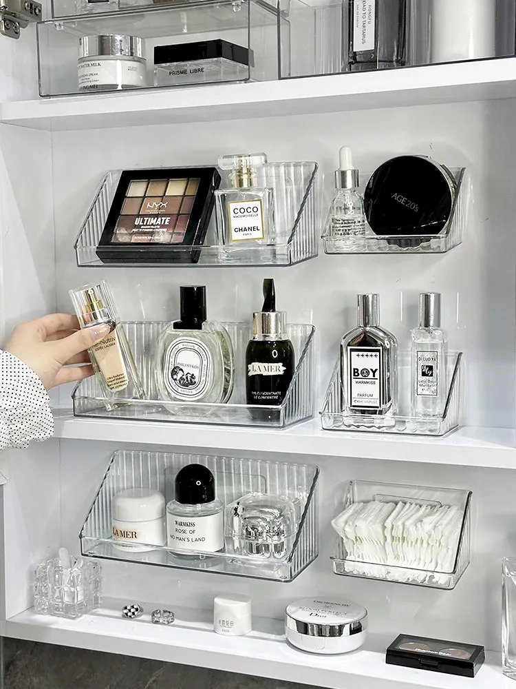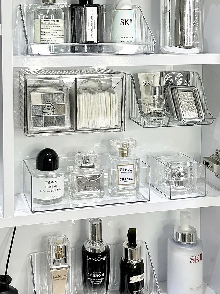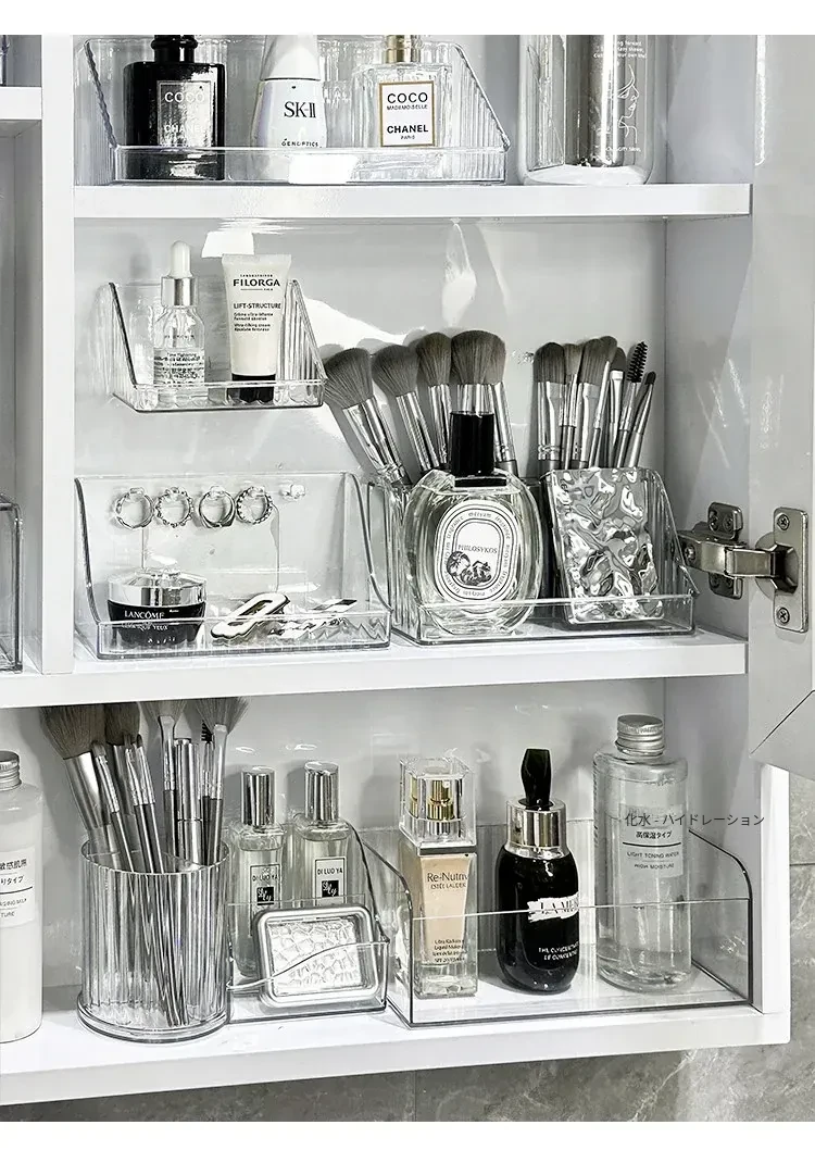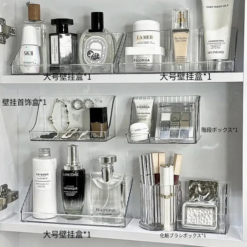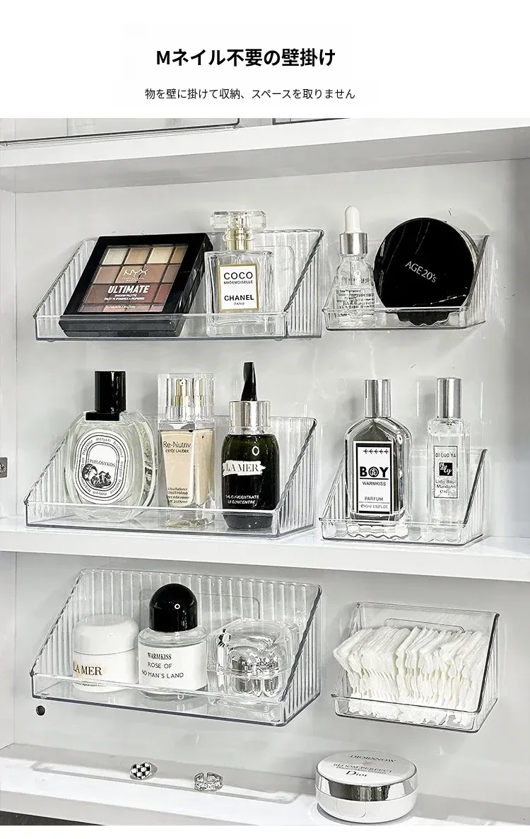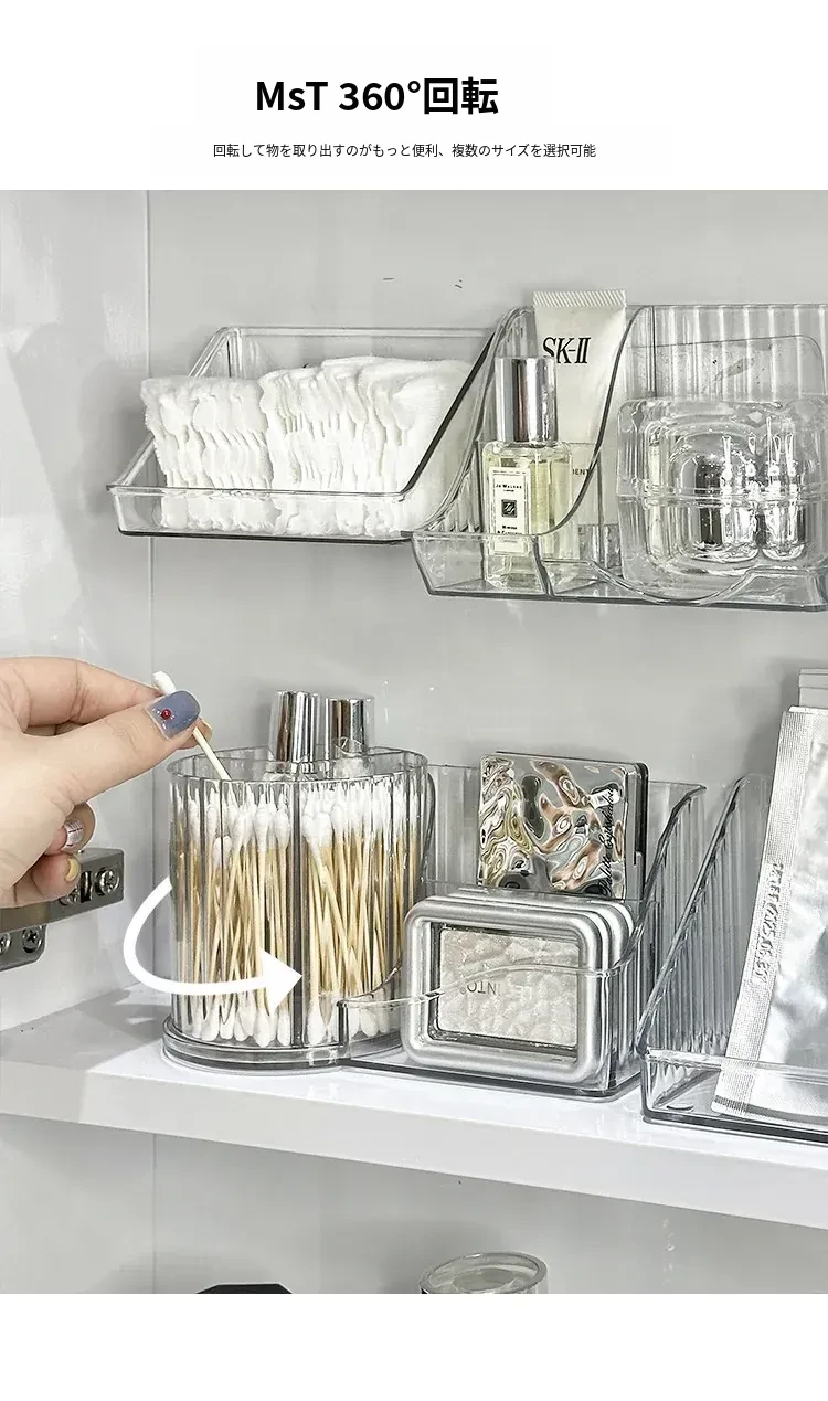 洗面台をスッキリ整理!アクリル製の透明ミラーキャビネット収納ボックス - 化粧品や綿棒を美しく収納できる壁掛け式の便利アイテムです。おしゃれで機能的な空間を手に入れましょう!