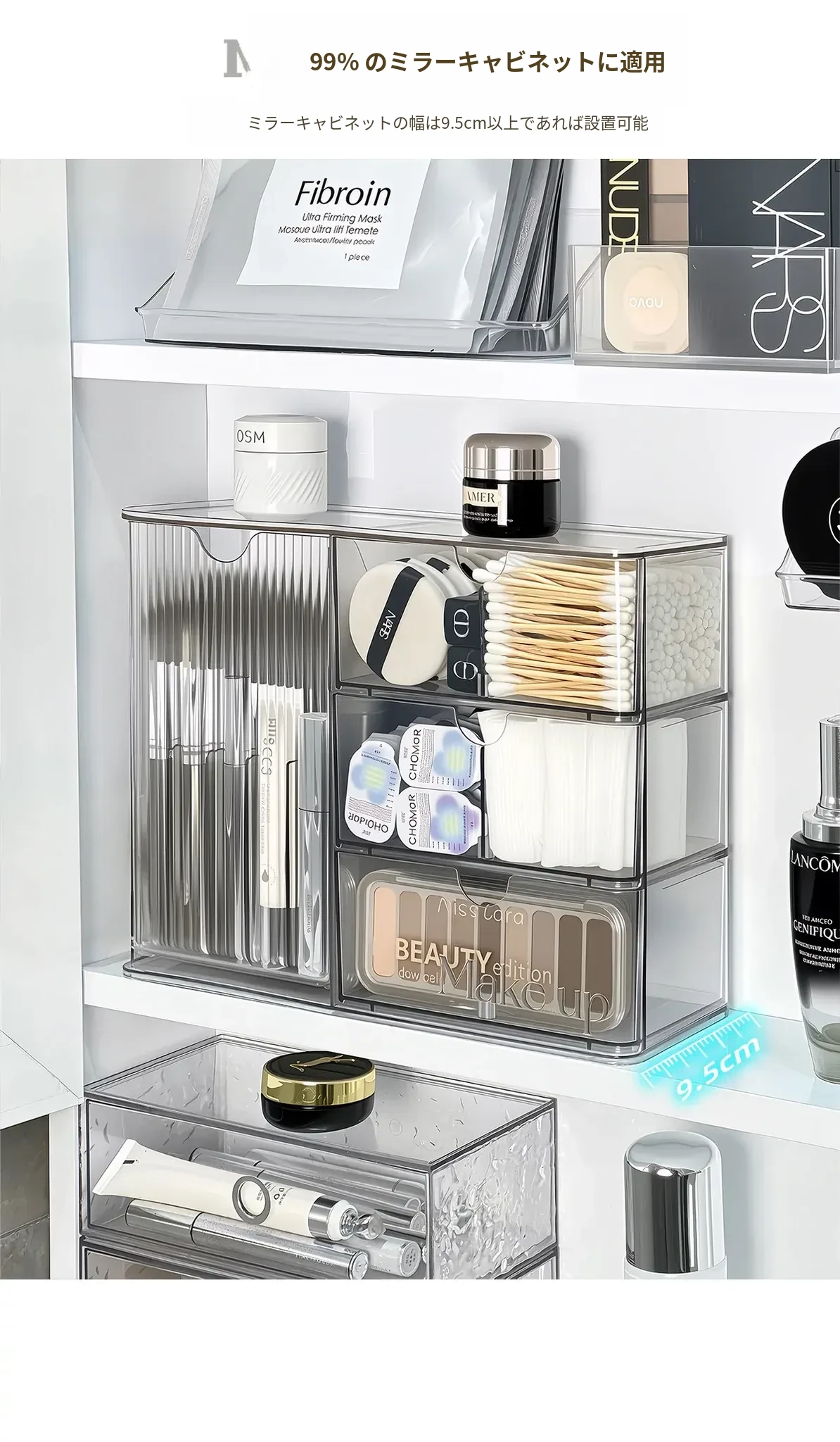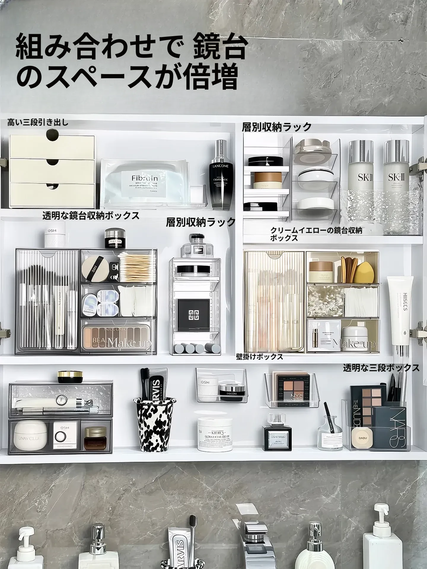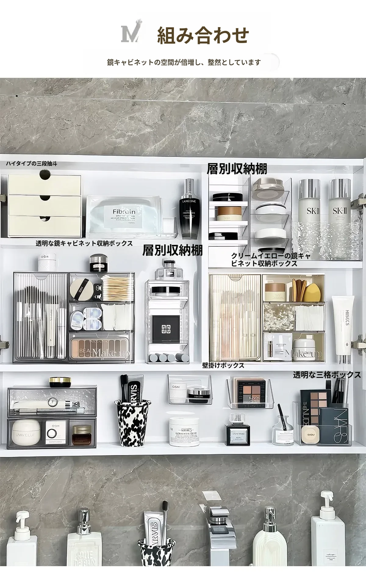 バスルーム用ミラーキャビネット収納ボックス - メイクアップ用品や口紅をスッキリ整理!化粧ブラシやコットン棒の便利な収納ラックで、毎日のビューティータイムをもっと快適に!
