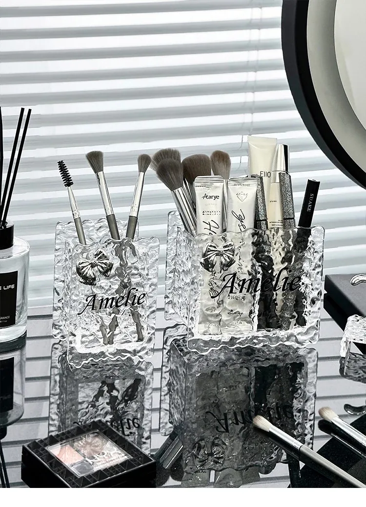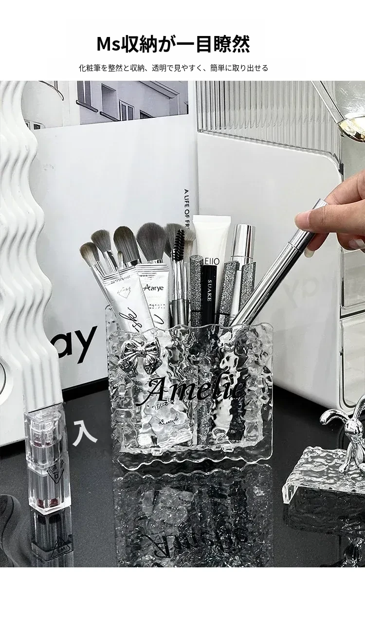 軽やかな贅沢感!アクリル化粧ブラシ収納筒 - ドレッサー用アイライナー・眉ペン・リップスティックもすっきり整理できる化粧品収納ボックス!おしゃれで機能的なペン立てを手に入れて、毎日のメイクをもっと楽しく!