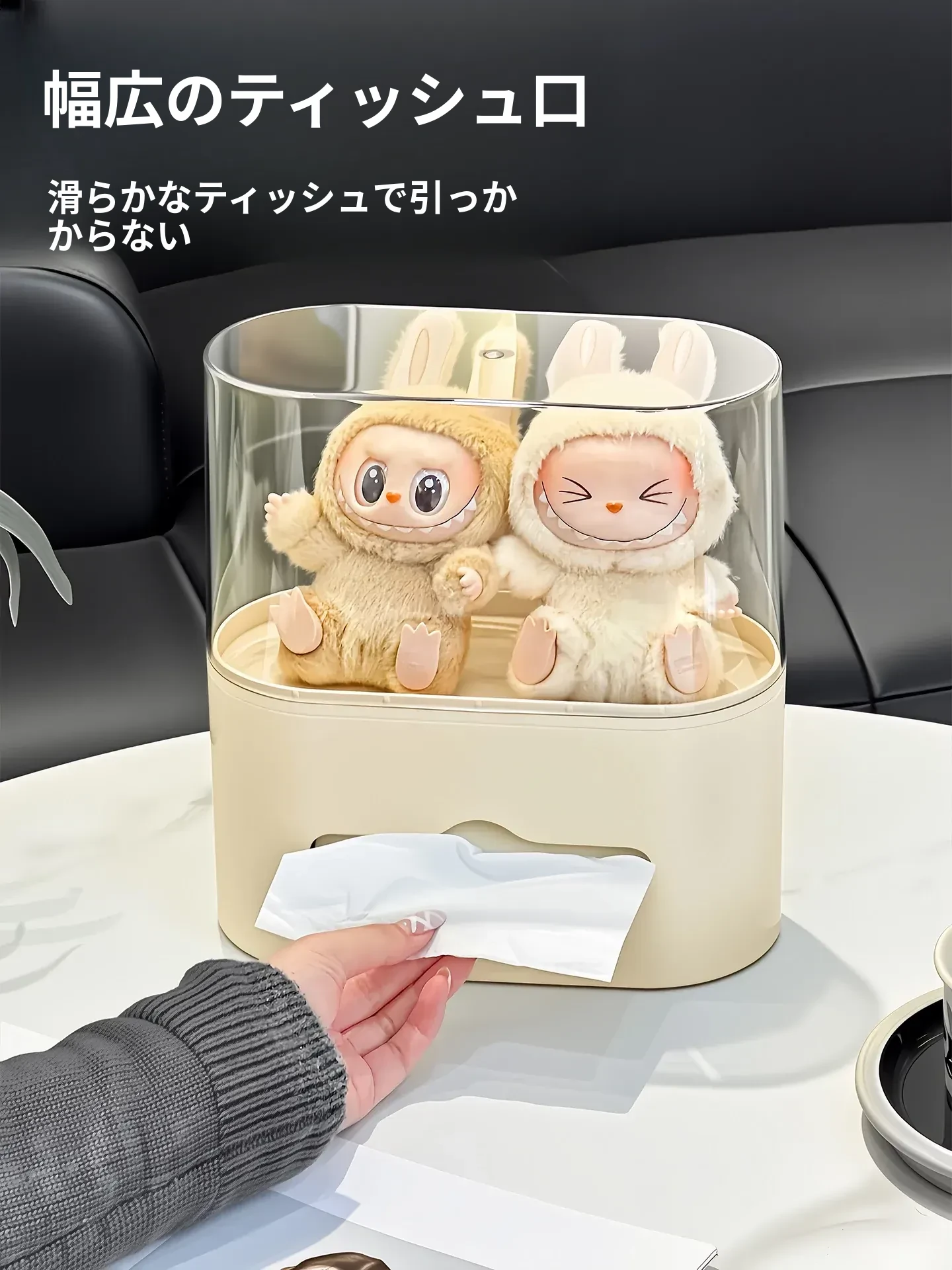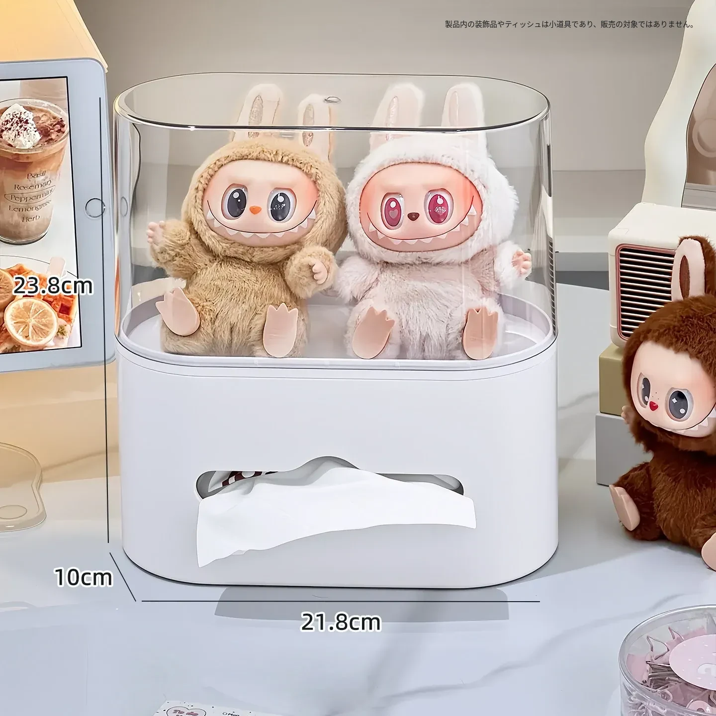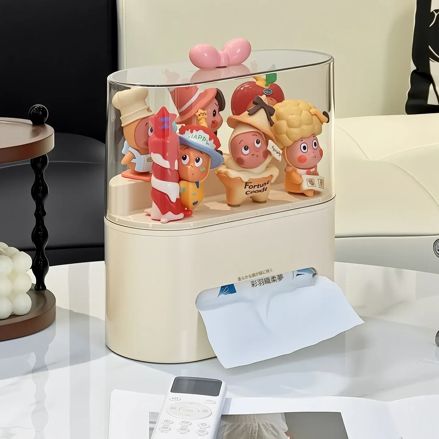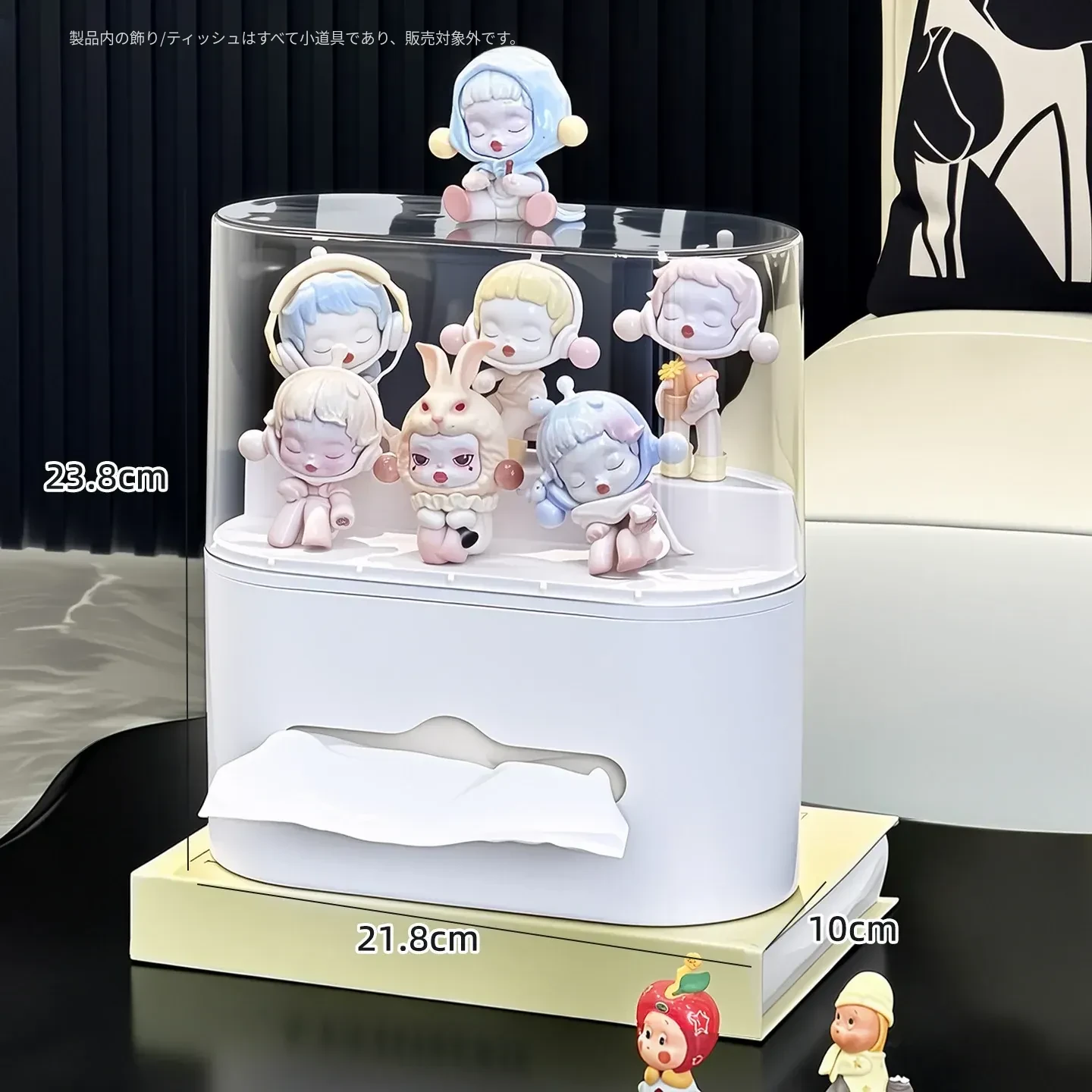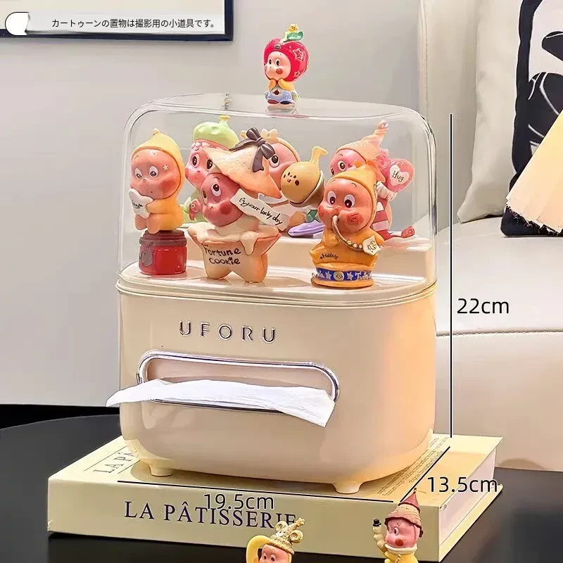 リビングにぴったり!おしゃれなティッシュボックス - 創造的なデザインで、フィギュアやブラインドボックスのディスプレイにも最適な収納ラック。スプリング付きで使いやすい、家庭用ナプキンホルダー。