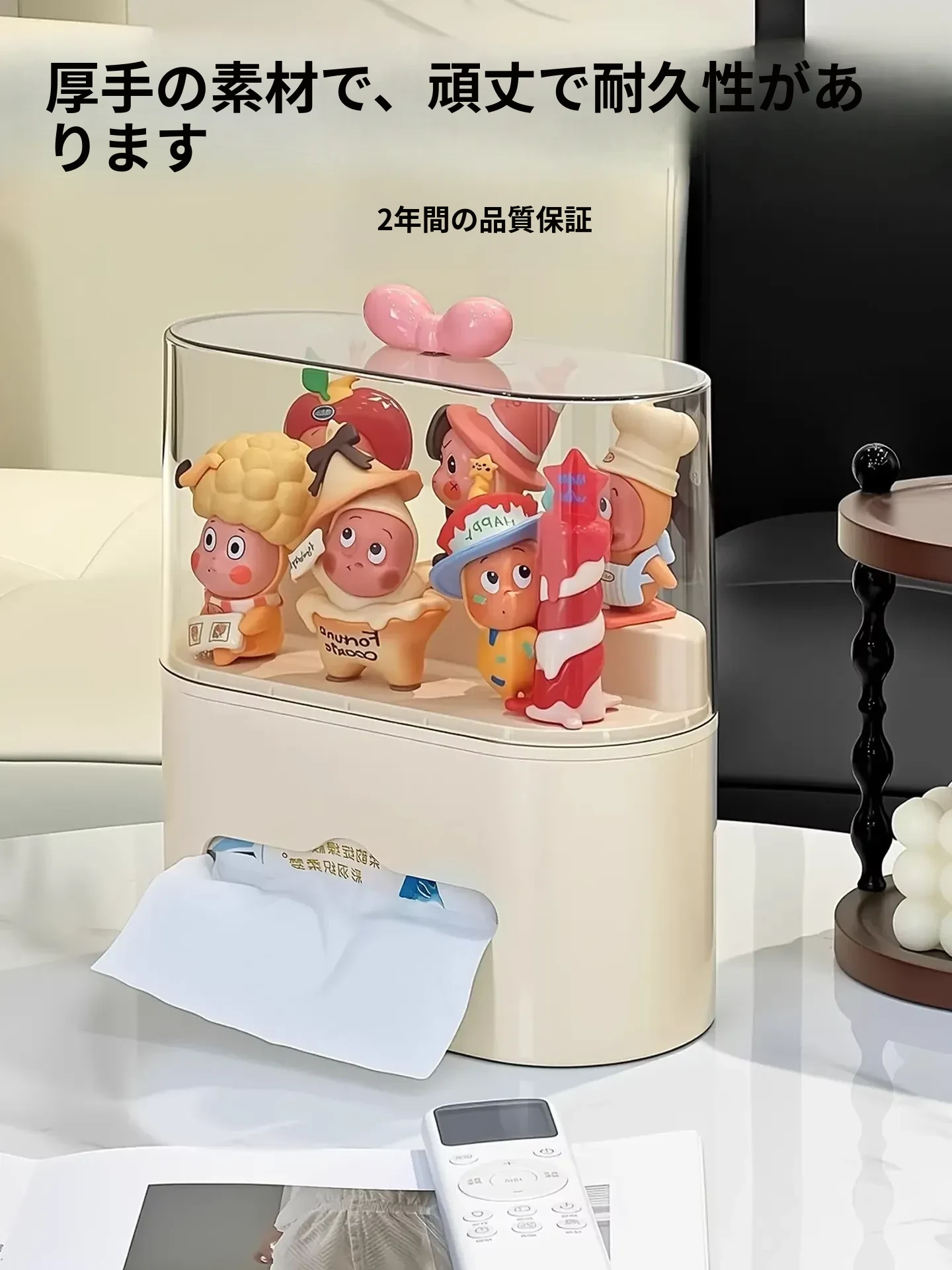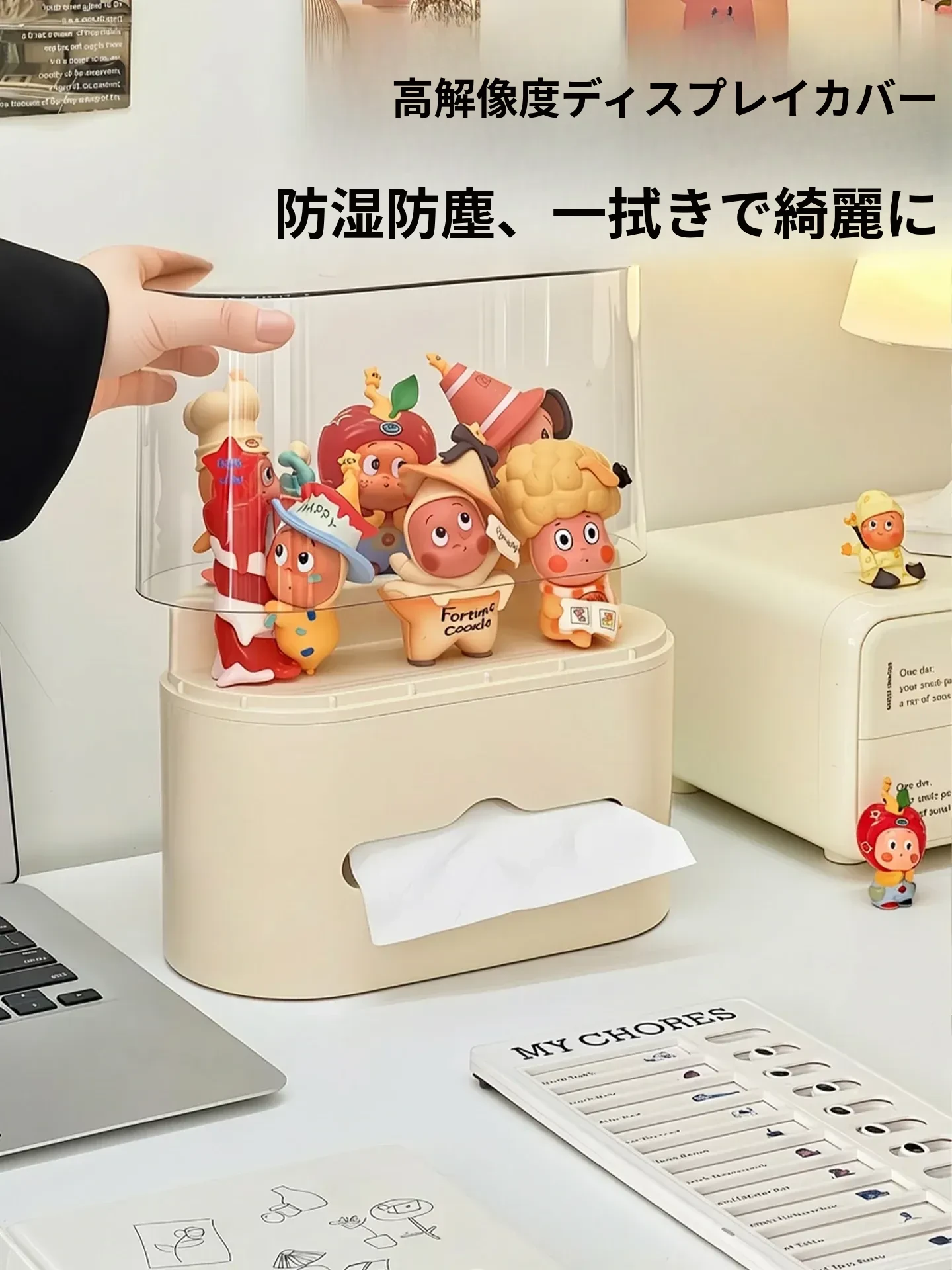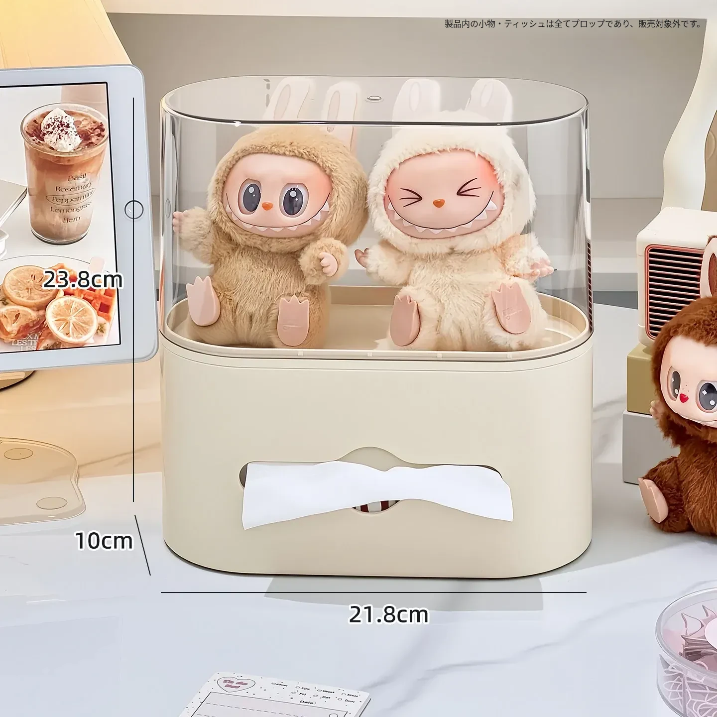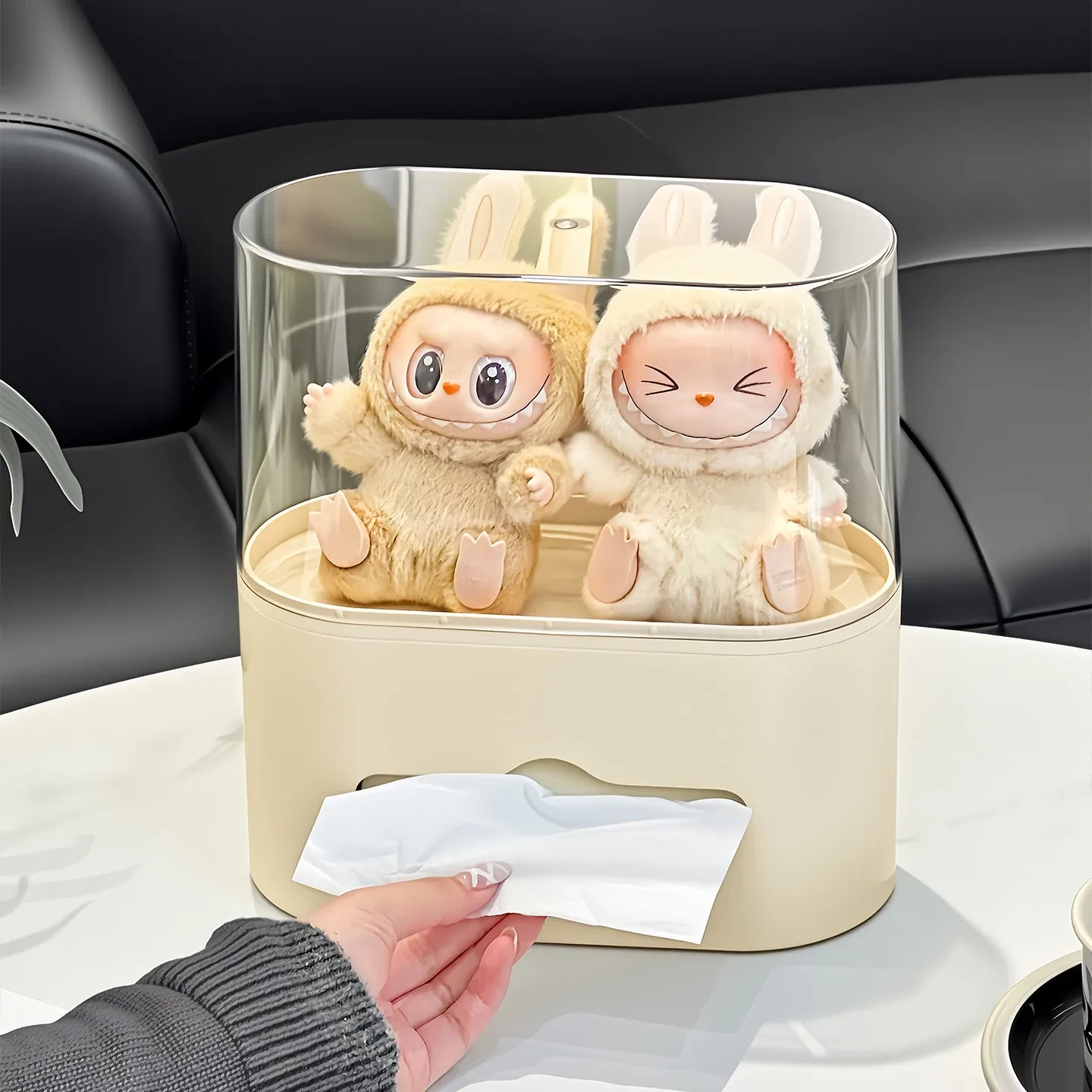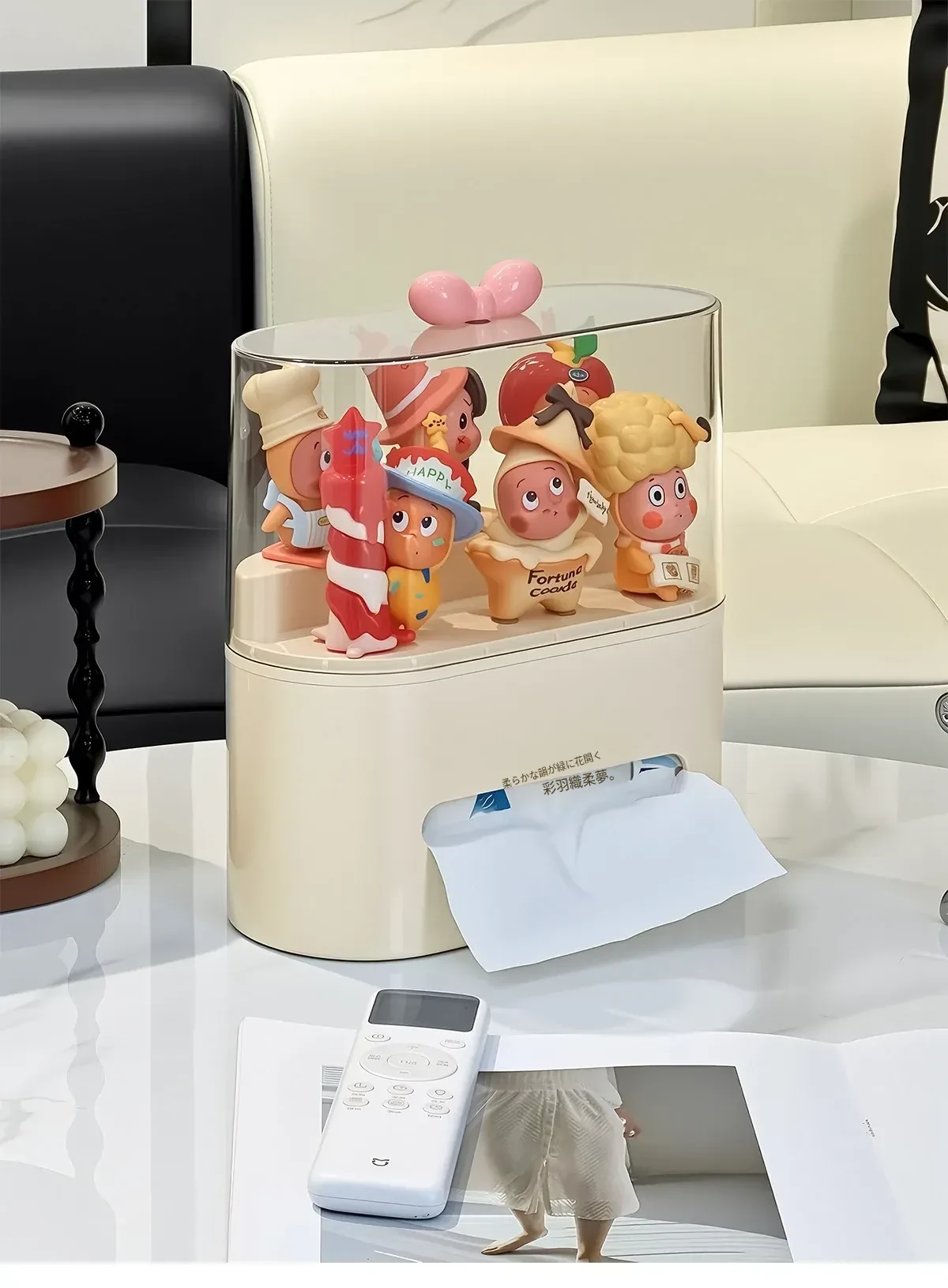 リビングにぴったり!おしゃれなティッシュボックス - 創造的なデザインで、フィギュアやブラインドボックスのディスプレイにも最適な収納ラック。スプリング付きで使いやすい、家庭用ナプキンホルダー。