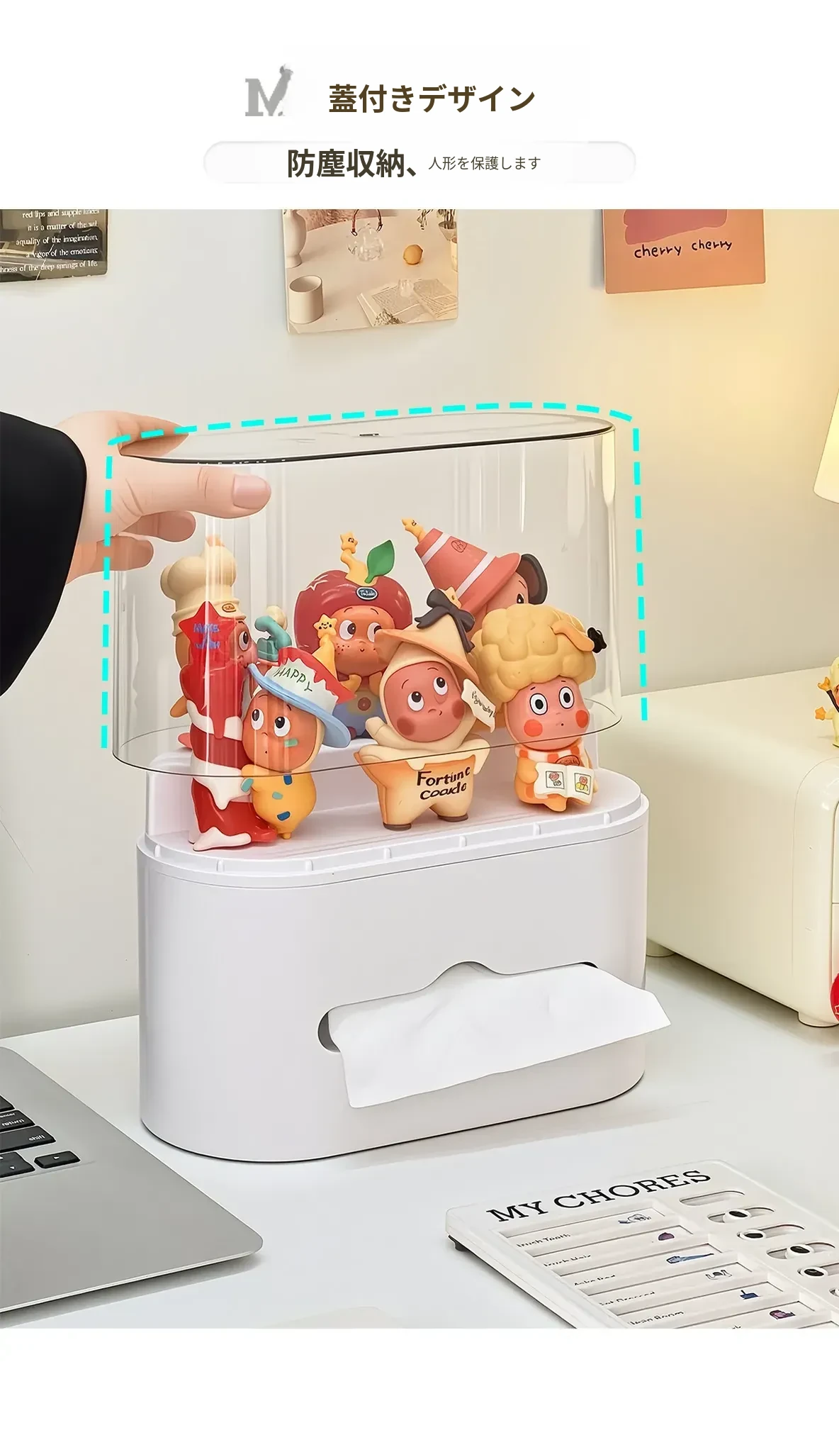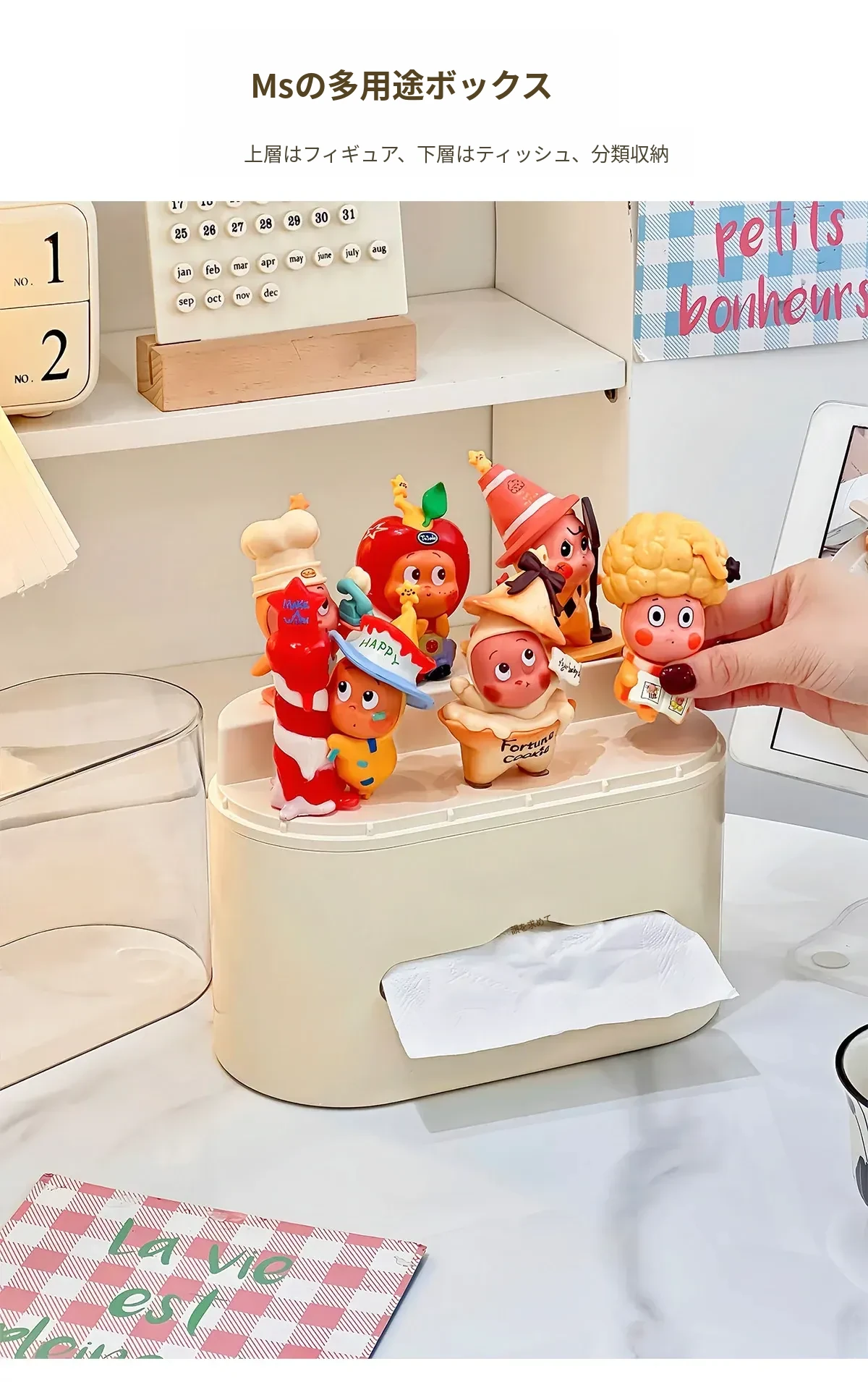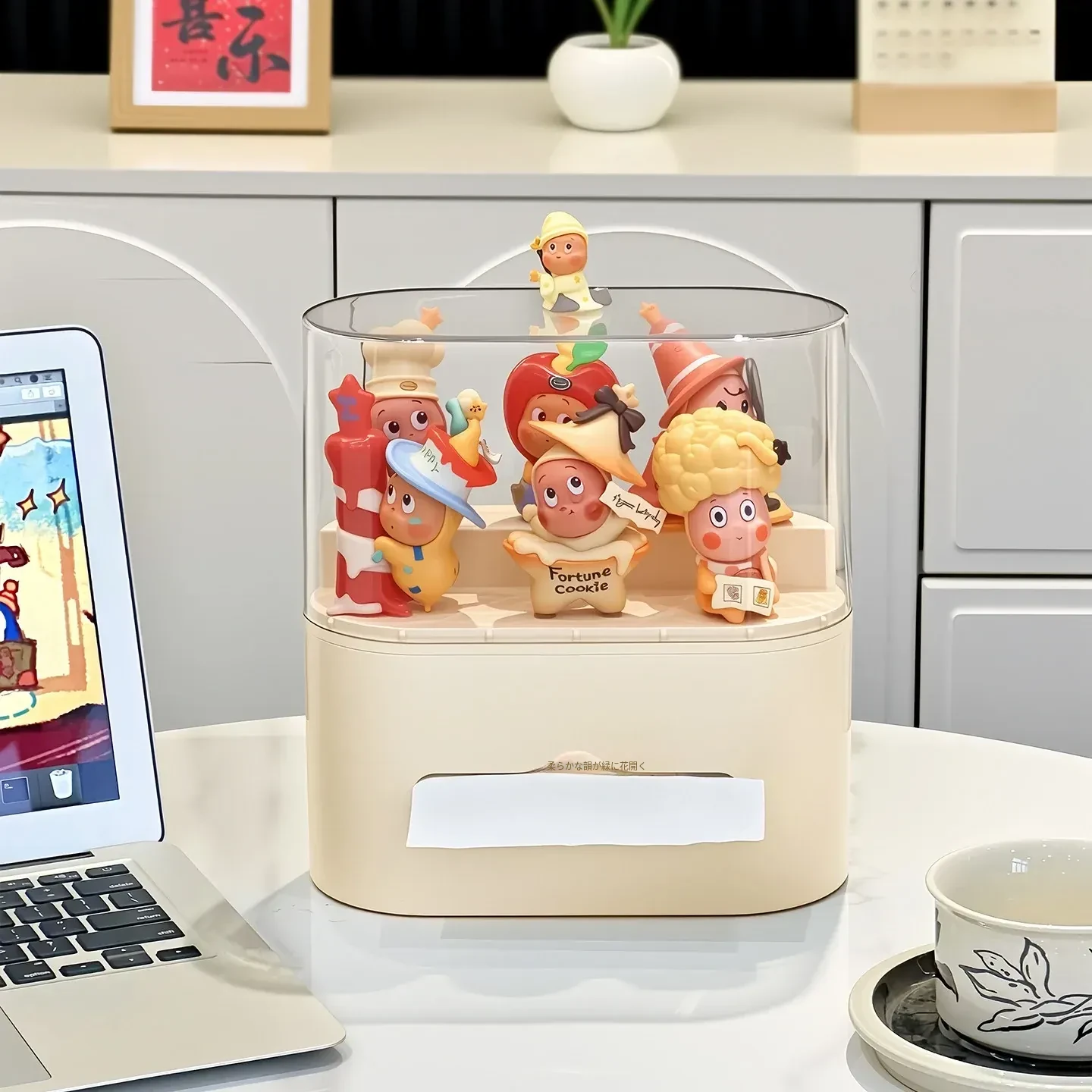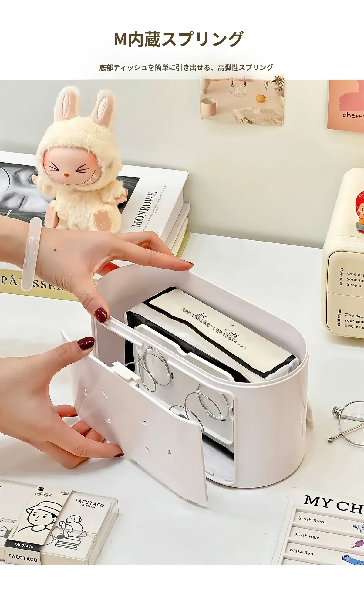 リビングにぴったり!おしゃれなティッシュボックス - 創造的なデザインで、フィギュアやブラインドボックスのディスプレイにも最適な収納ラック。スプリング付きで使いやすい、家庭用ナプキンホルダー。
