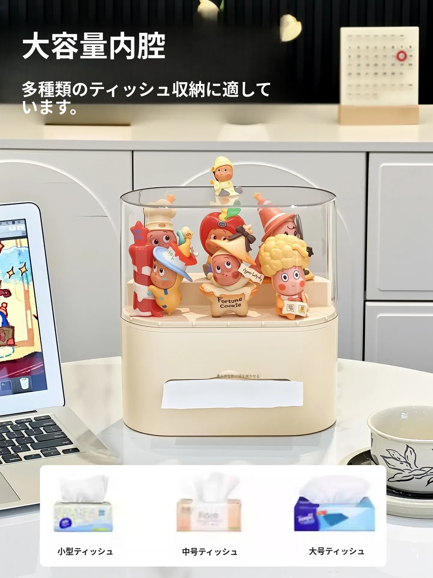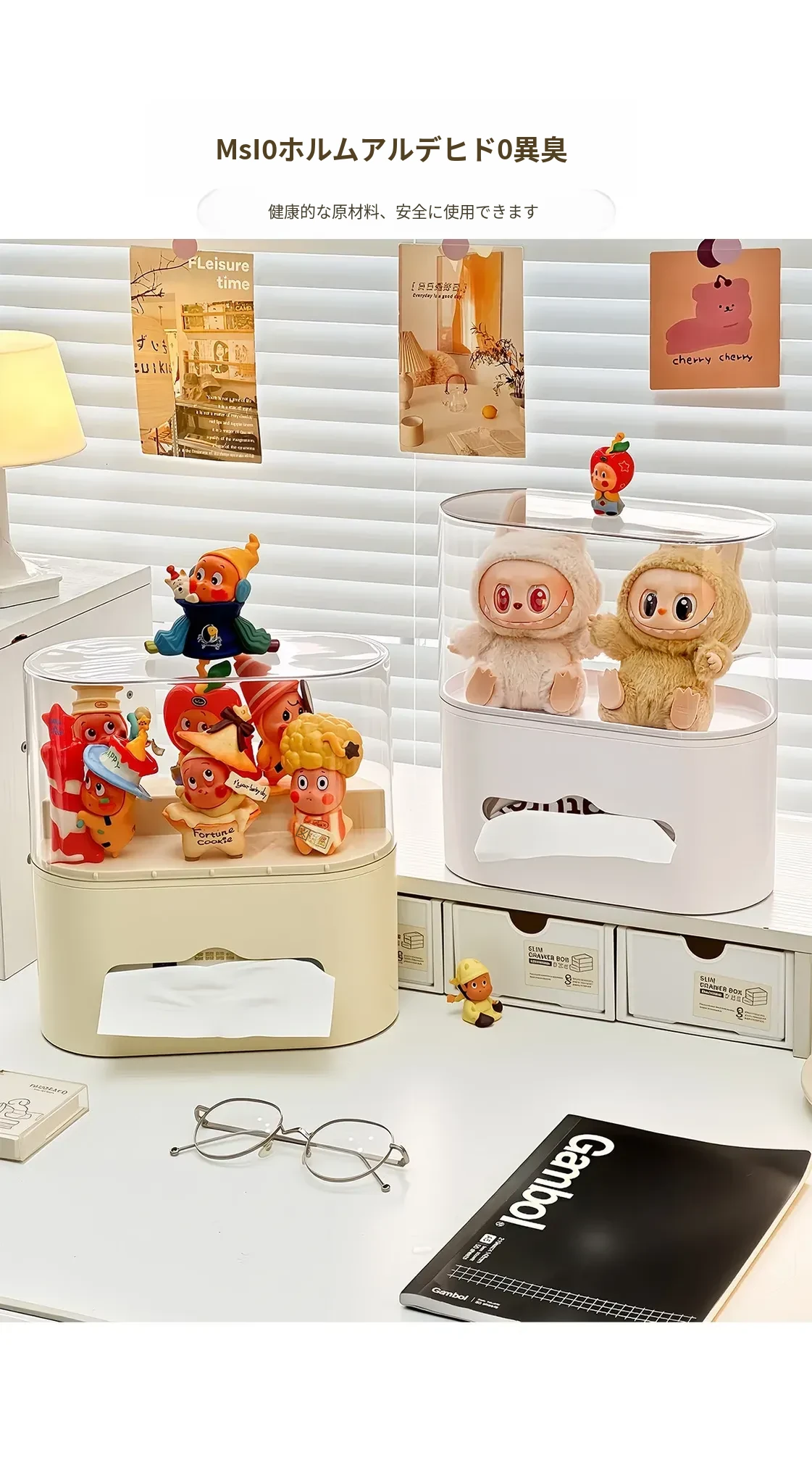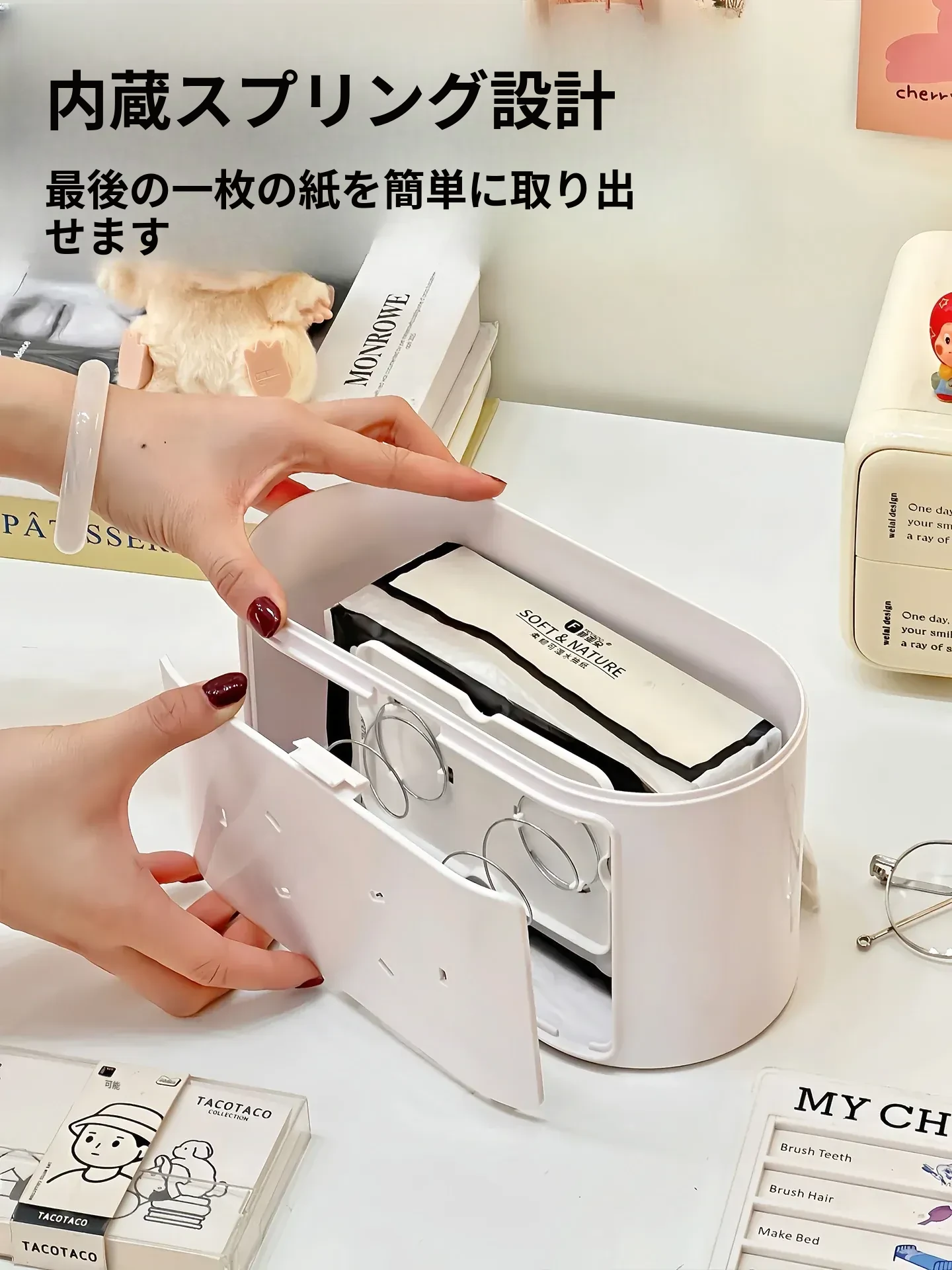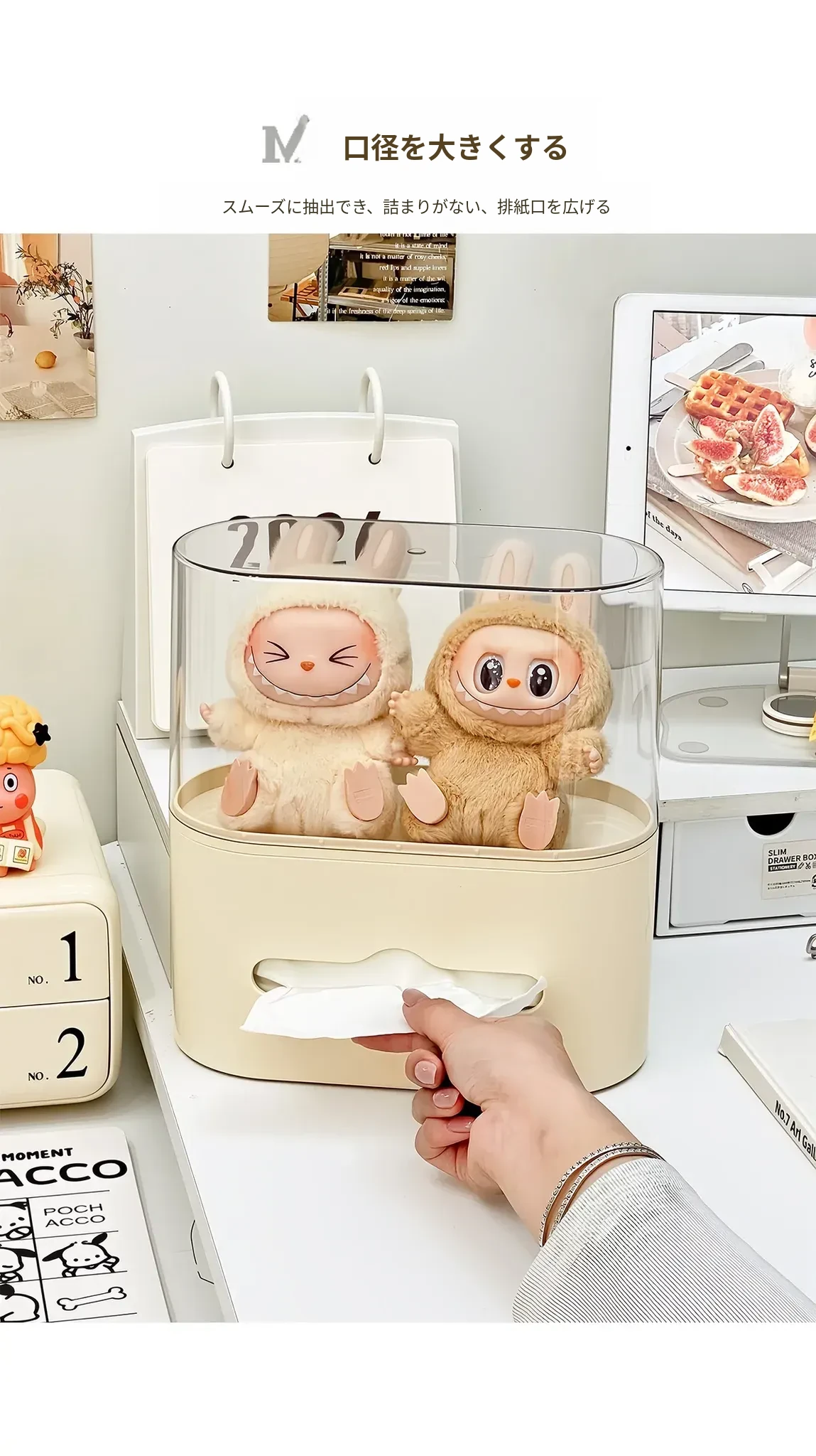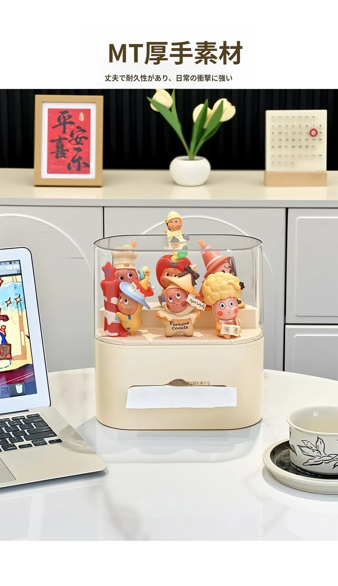 リビングにぴったり!おしゃれなティッシュボックス - 創造的なデザインで、フィギュアやブラインドボックスのディスプレイにも最適な収納ラック。スプリング付きで使いやすい、家庭用ナプキンホルダー。