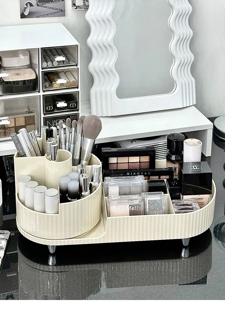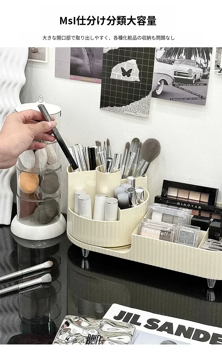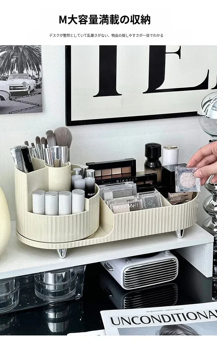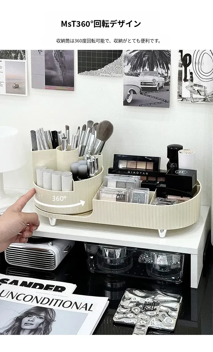 デスクトップ化粧品収納ボックス - メイクアップ台に最適!スキンケア製品や口紅を整理整頓できる回転式化粧ブラシ分格整理ボックスで、いつでも美しさをサポート!