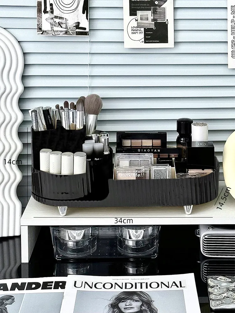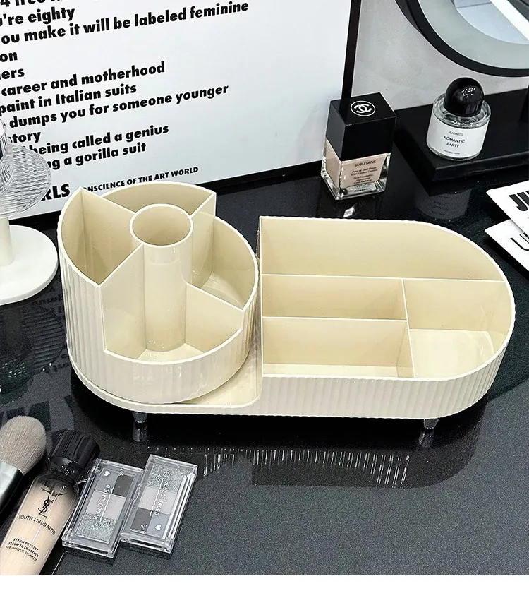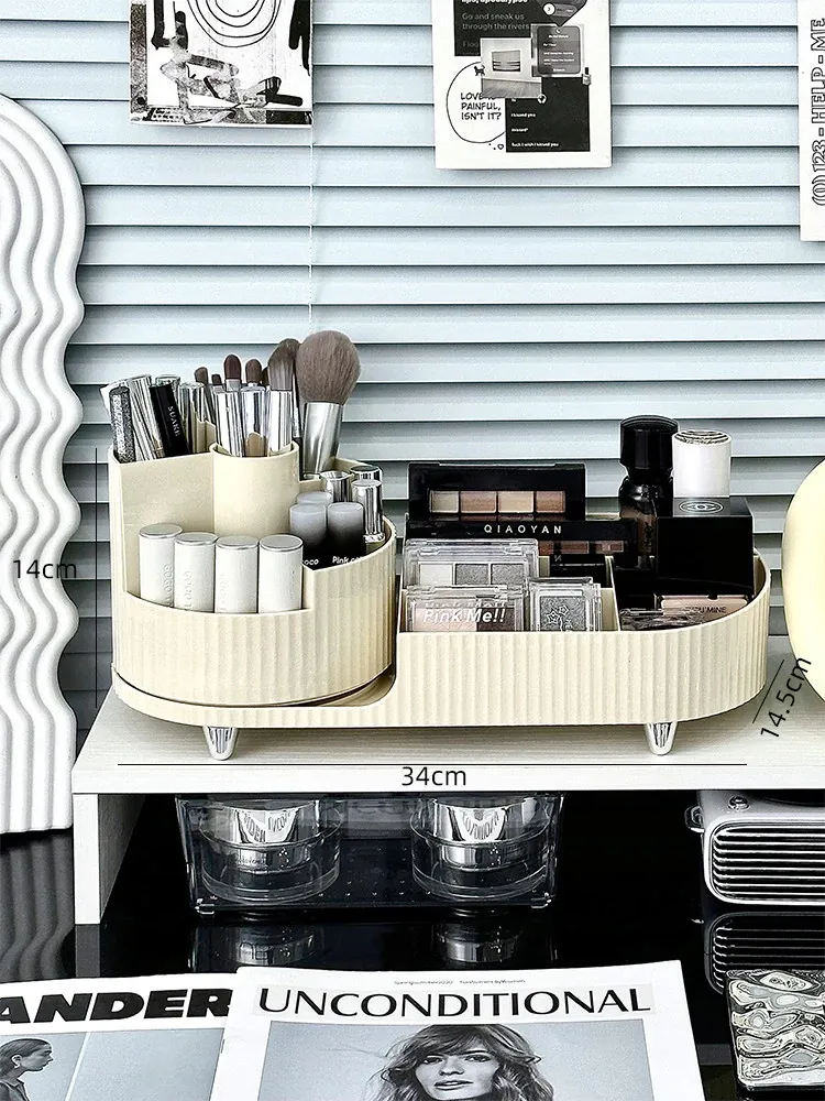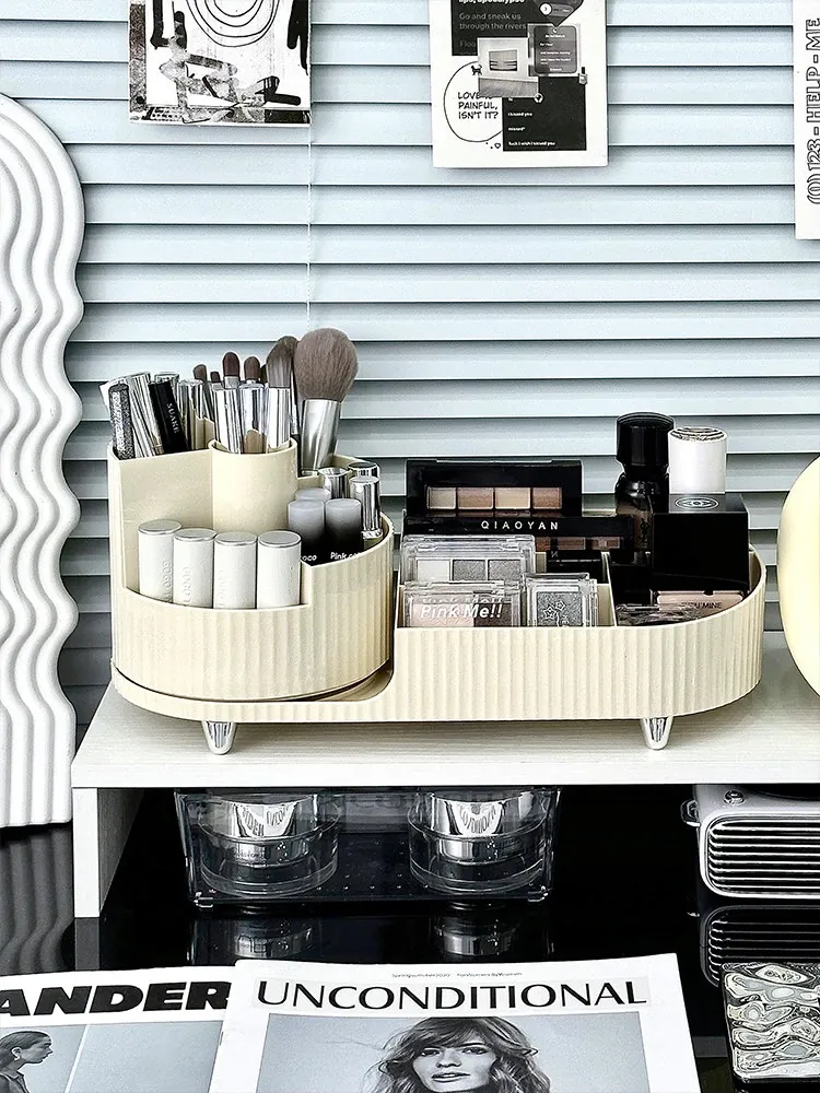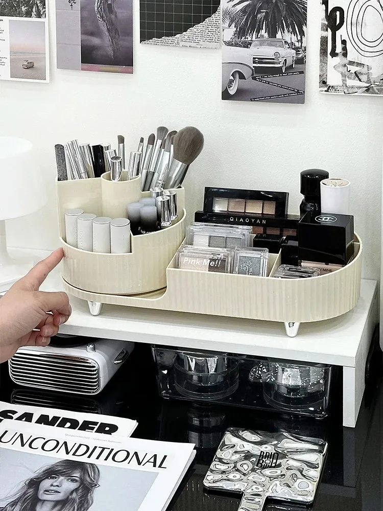 デスクトップ化粧品収納ボックス - メイクアップ台に最適!スキンケア製品や口紅を整理整頓できる回転式化粧ブラシ分格整理ボックスで、いつでも美しさをサポート!