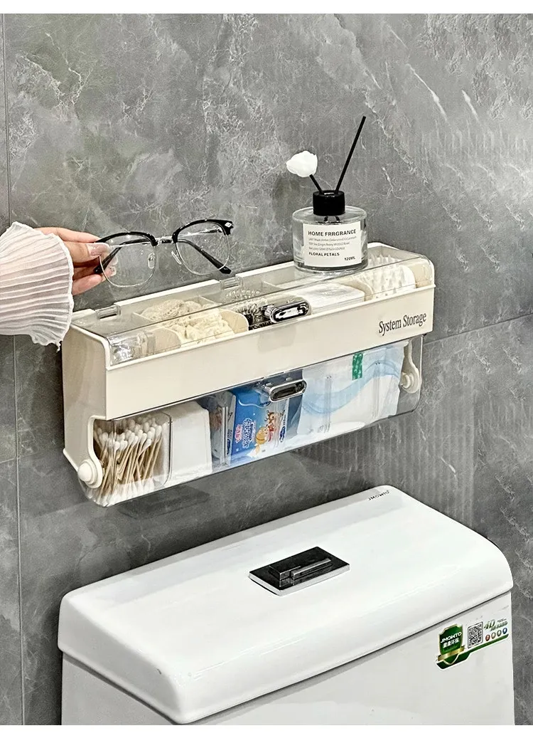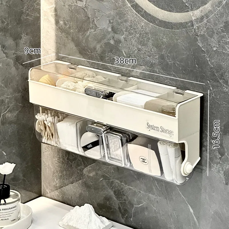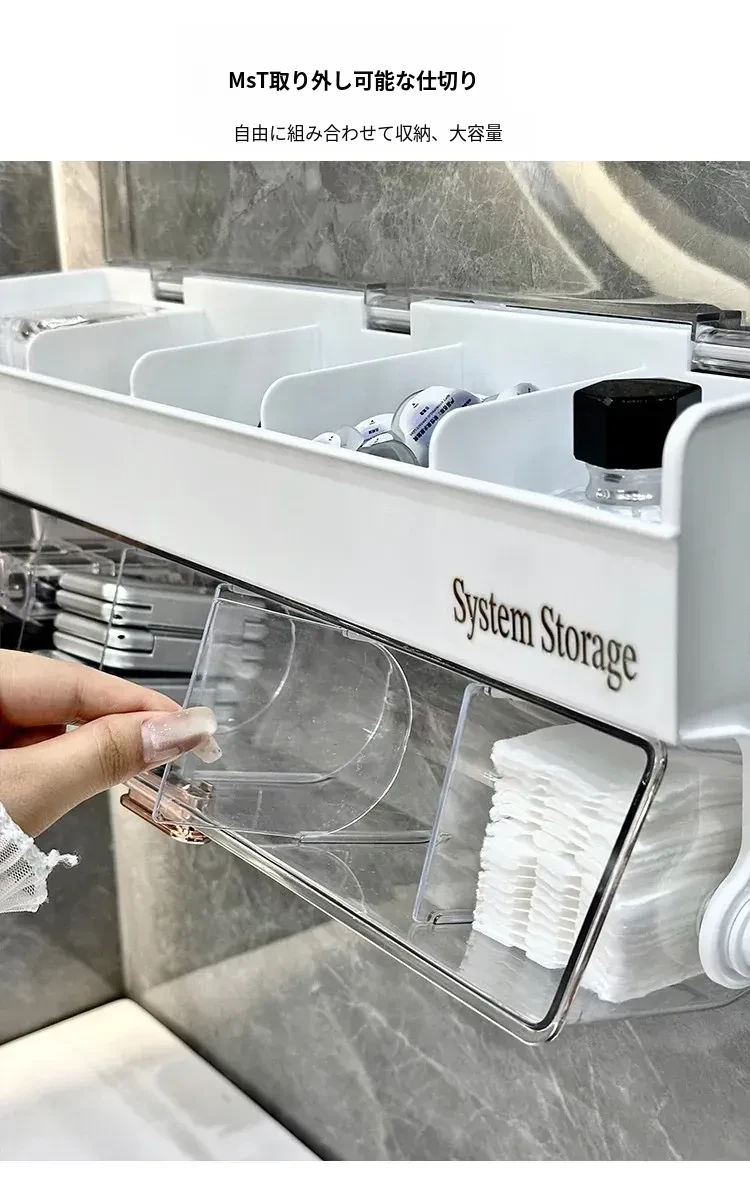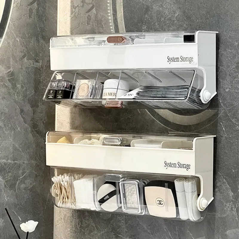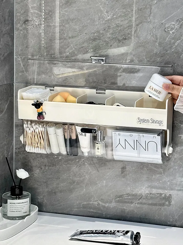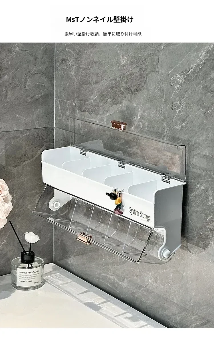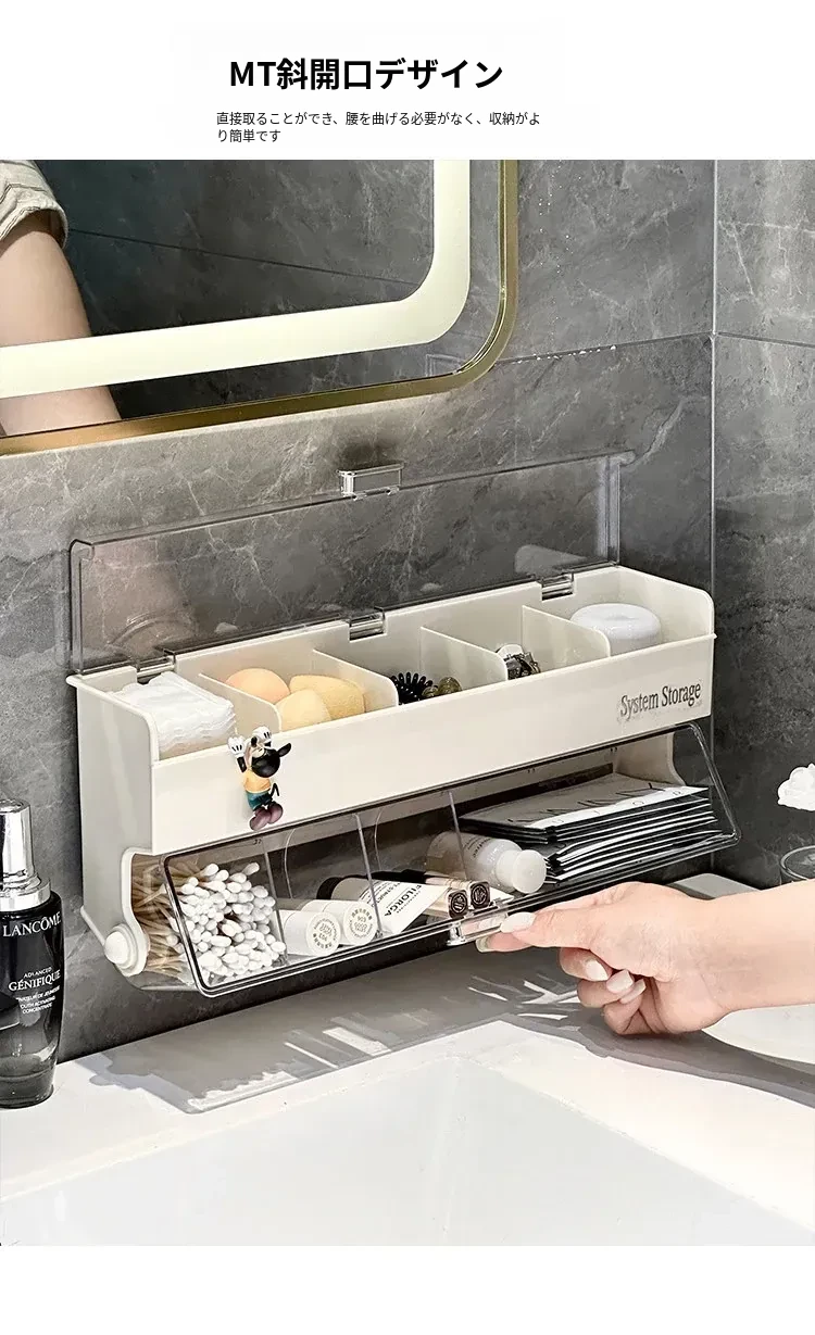 化粧品整理に最適!防塵カバー付きパフ収納ボックス - コットン・綿棒も収納できる壁掛け分格式リップ収納ラックで、あなたのメイクアップスペースをスッキリ整頓!