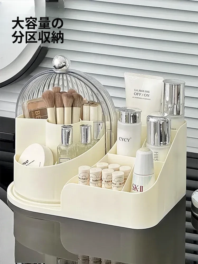 高級感溢れる化粧品収納ボックス - デスク上の埃から守るスキンケア&メイクブラシスタンド、コスメ整理に最適な口紅収納ケース!あなたのビューティースペースをスタイリッシュに整えましょう!