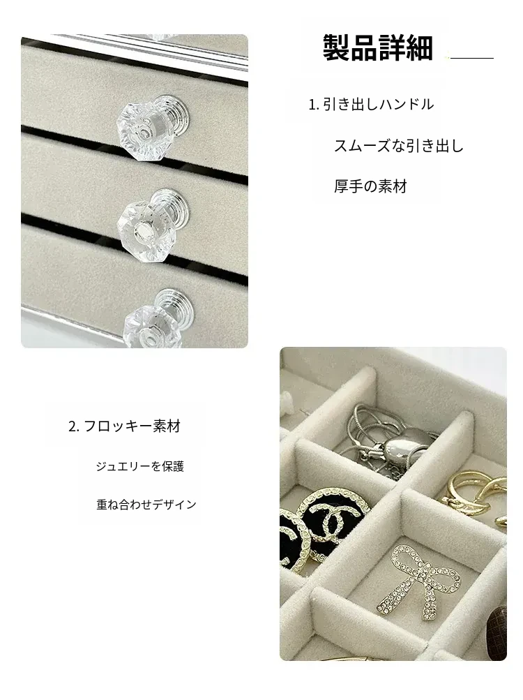 高級感あふれるジュエリーボックス!2023年新作のデザイン、ネックレスやイヤリングを美しく収納できる引き出し式のアクセサリーケース。金や貴重品も安心して保管できます。おしゃれで機能的な収納をお求めの方にぴったり!