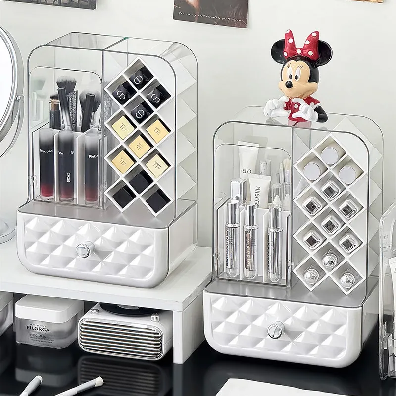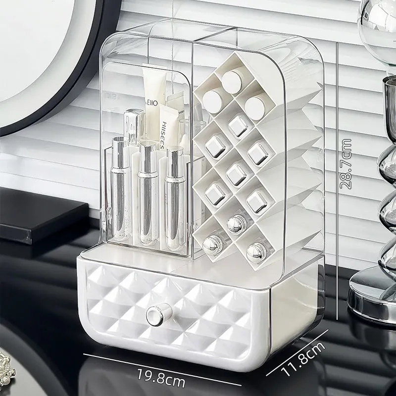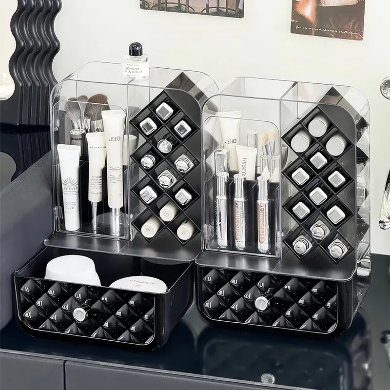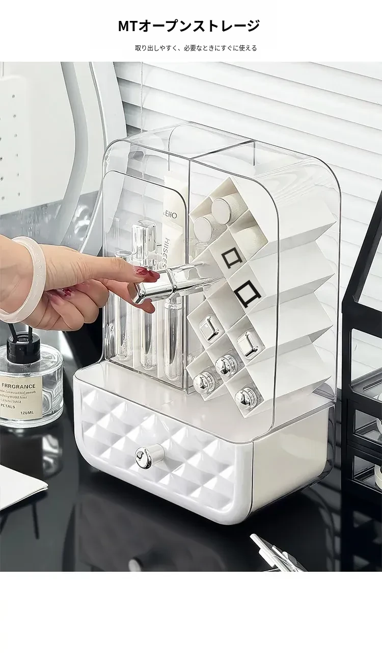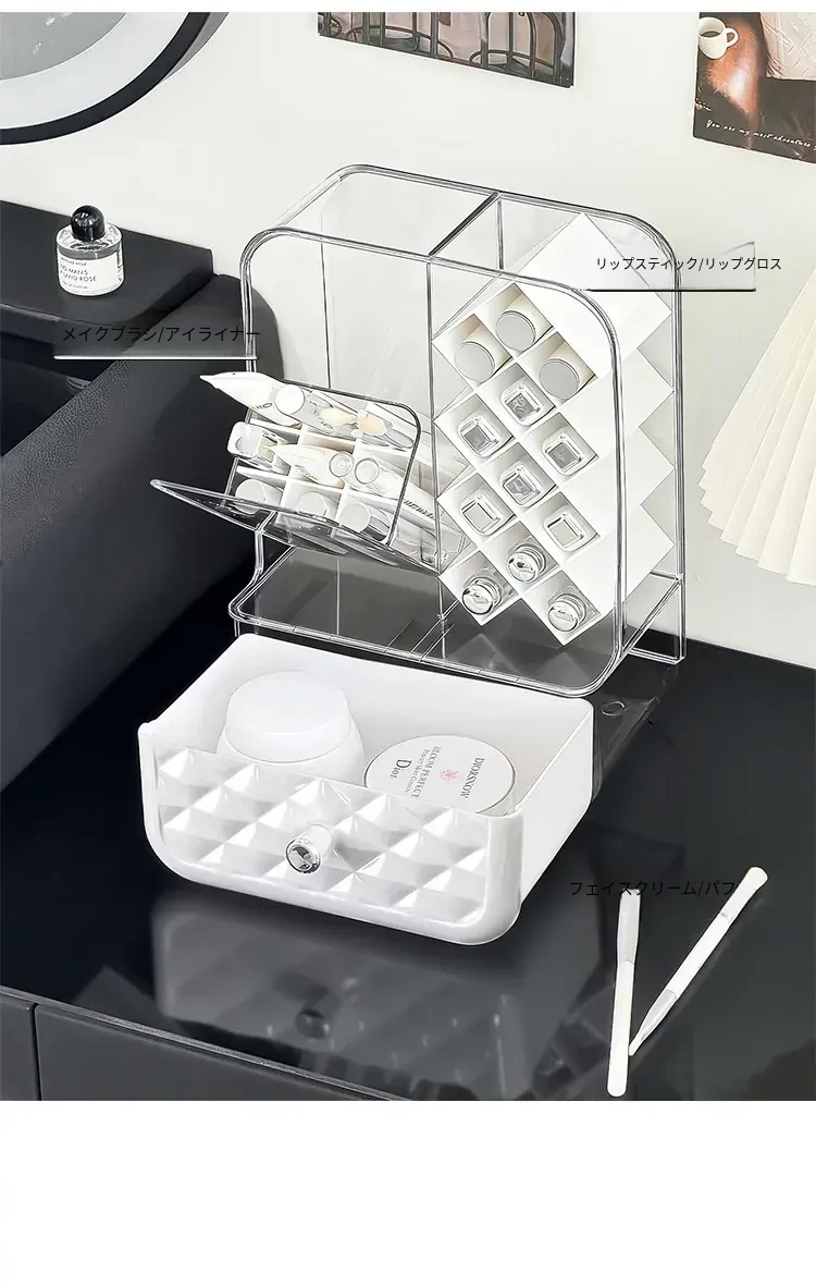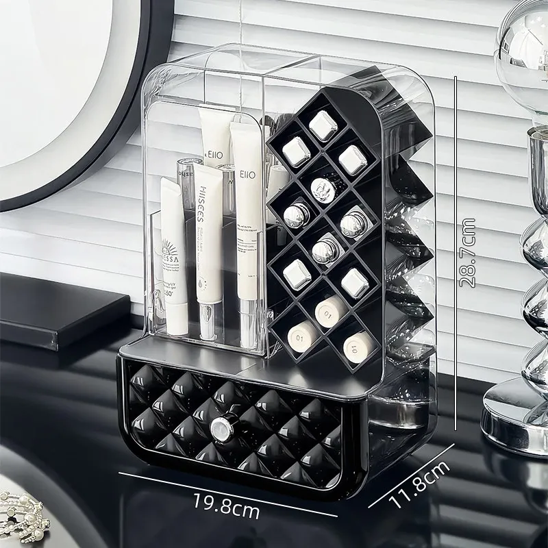 高級感溢れる口紅収納ボックス&メイクブラシ収納筒!リップグロスのディスプレイスタンドで、デスク周りをおしゃれに整理!防塵設計で、化粧品を清潔に保つアイテムです。