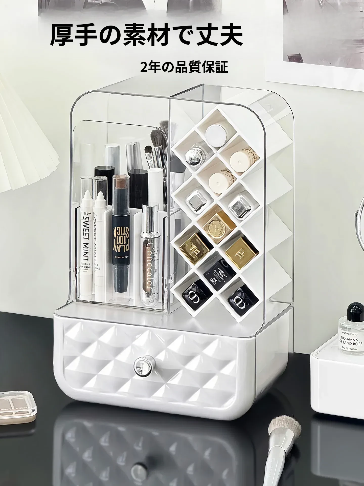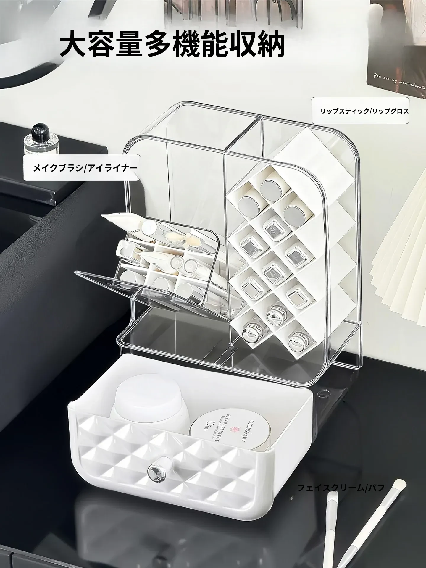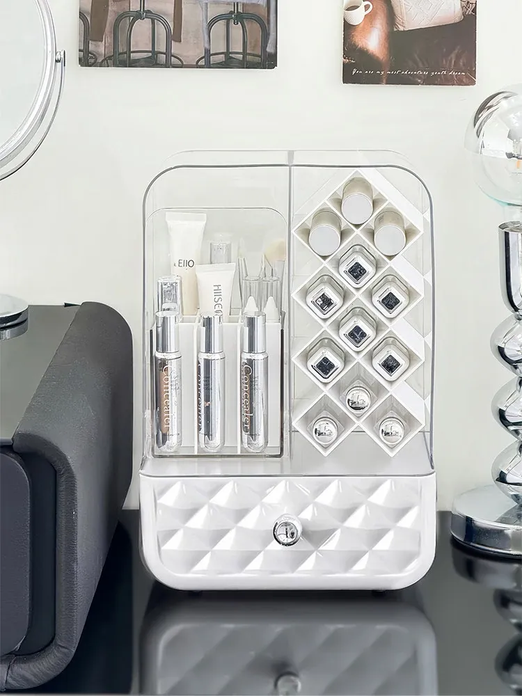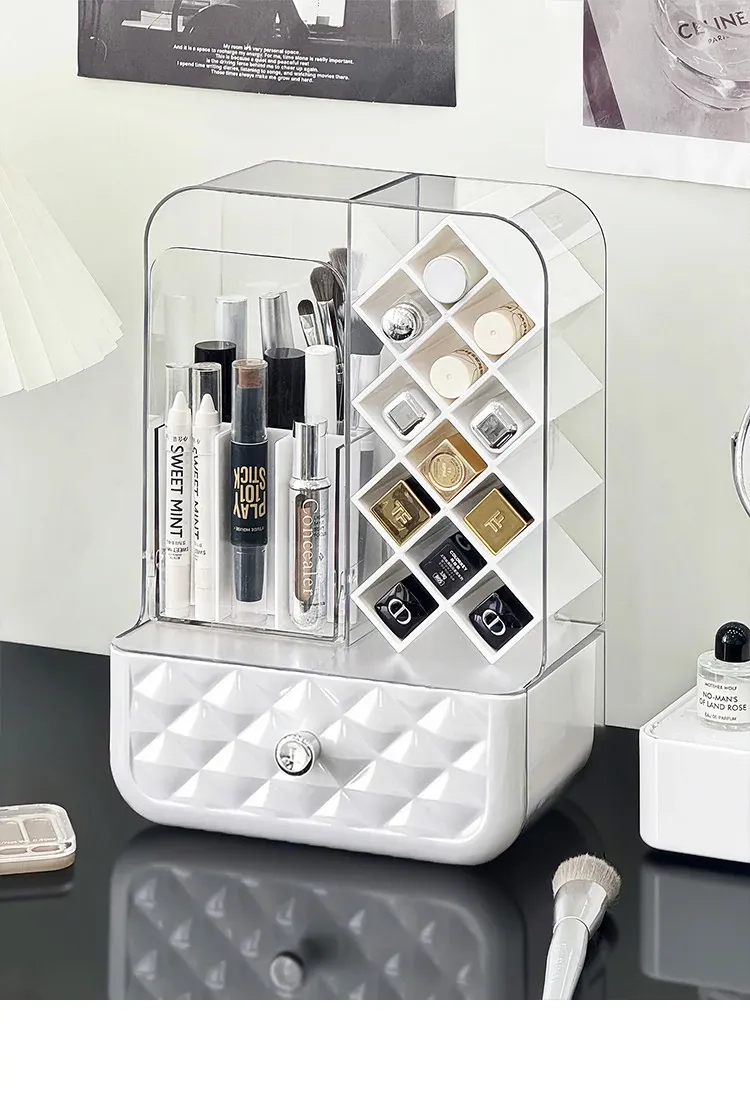 高級感溢れる口紅収納ボックス&メイクブラシ収納筒!リップグロスのディスプレイスタンドで、デスク周りをおしゃれに整理!防塵設計で、化粧品を清潔に保つアイテムです。
