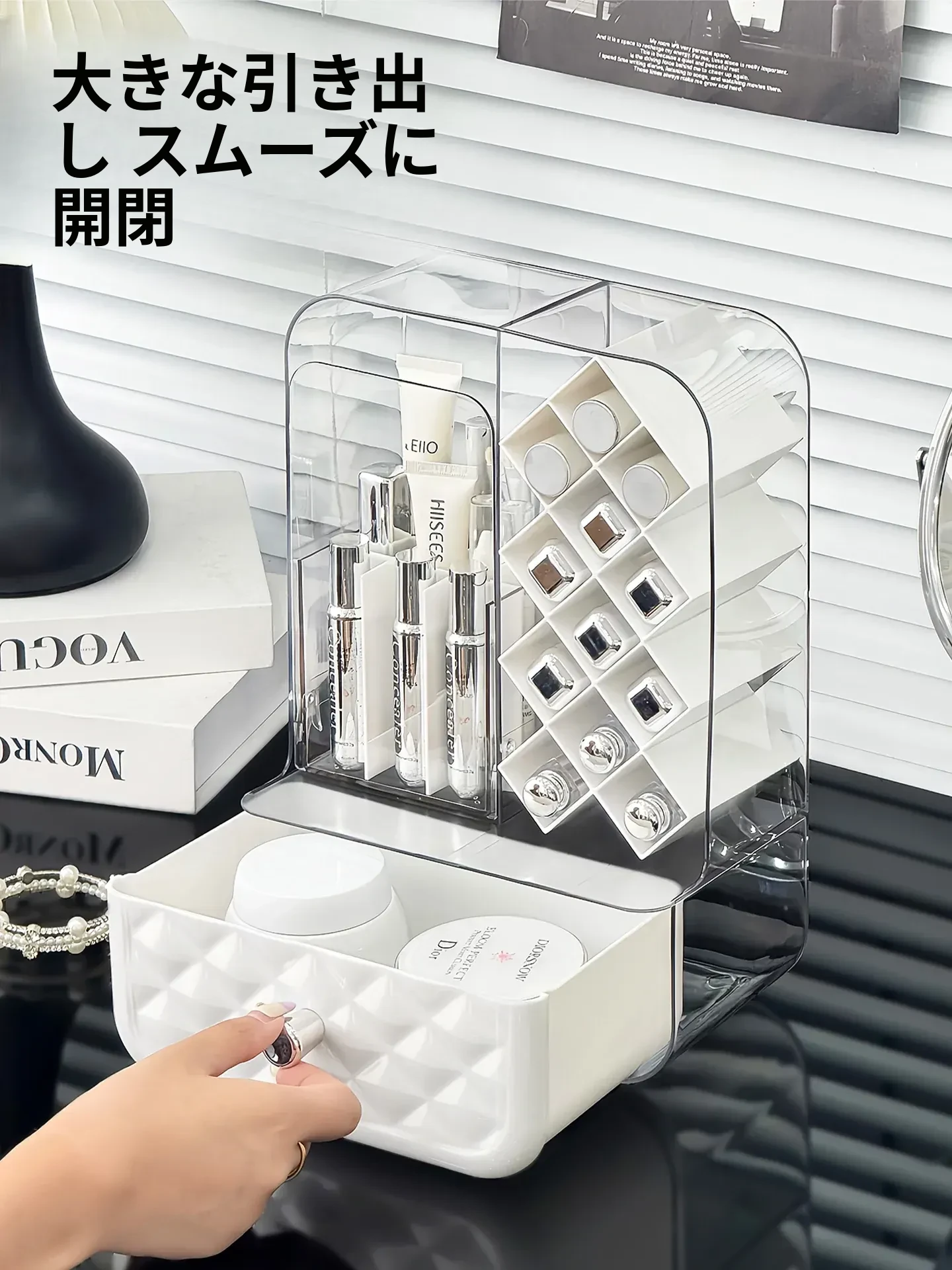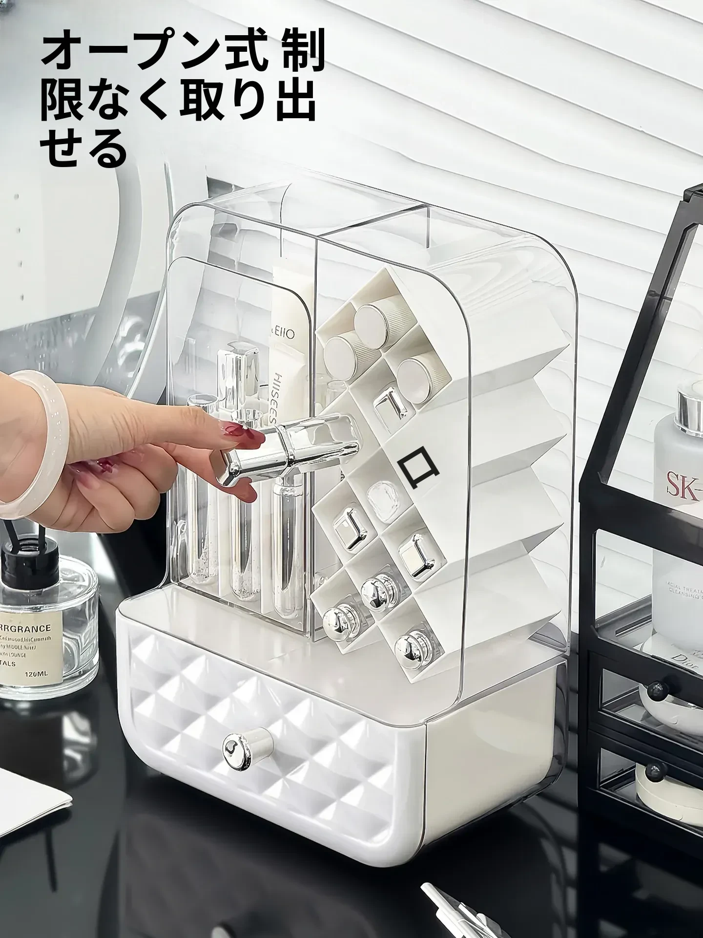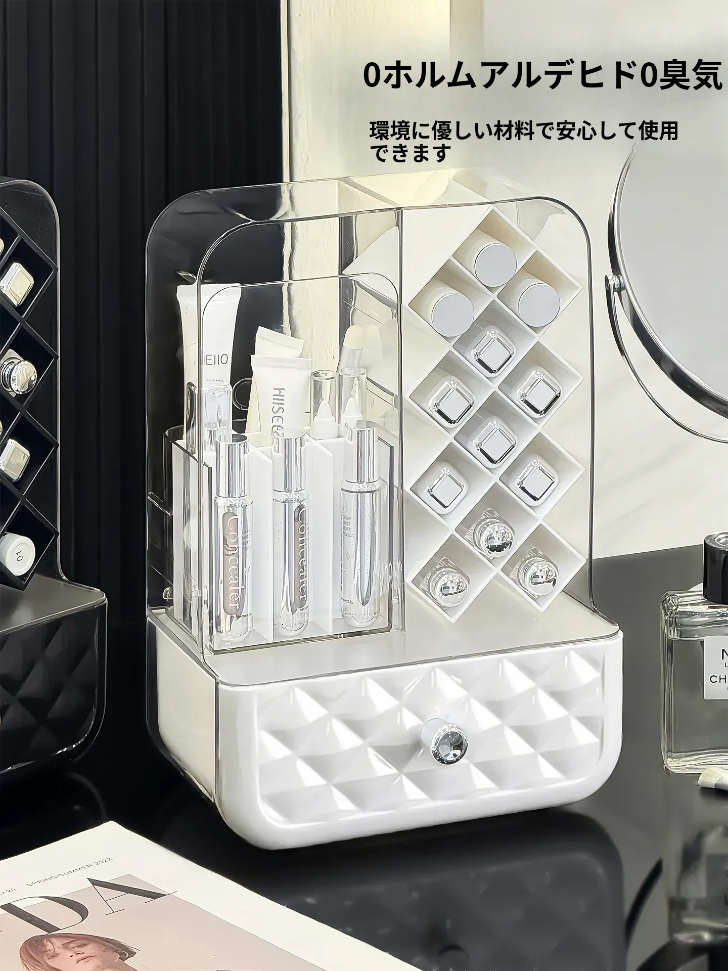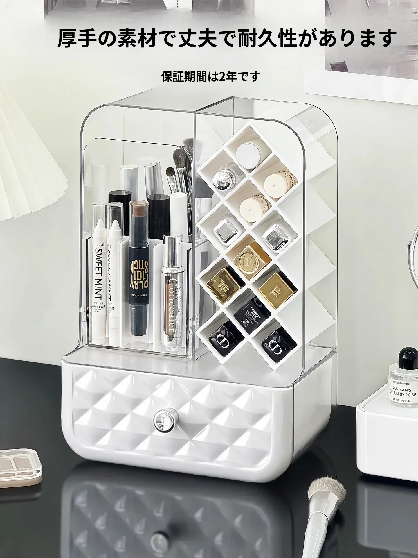 高級感溢れる口紅収納ボックス&メイクブラシ収納筒!リップグロスのディスプレイスタンドで、デスク周りをおしゃれに整理!防塵設計で、化粧品を清潔に保つアイテムです。