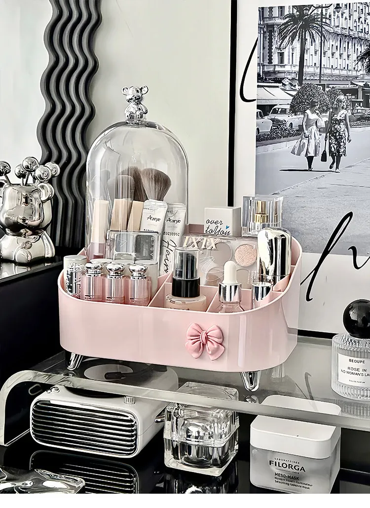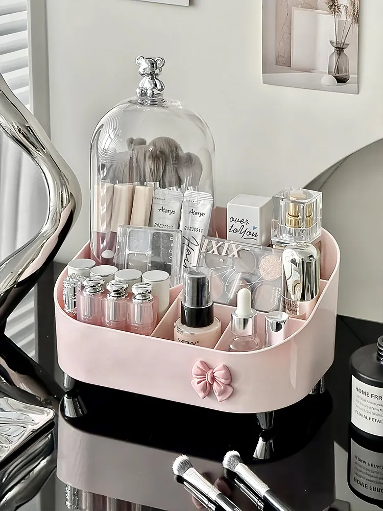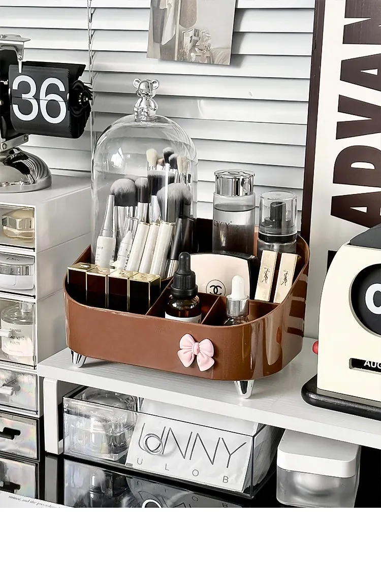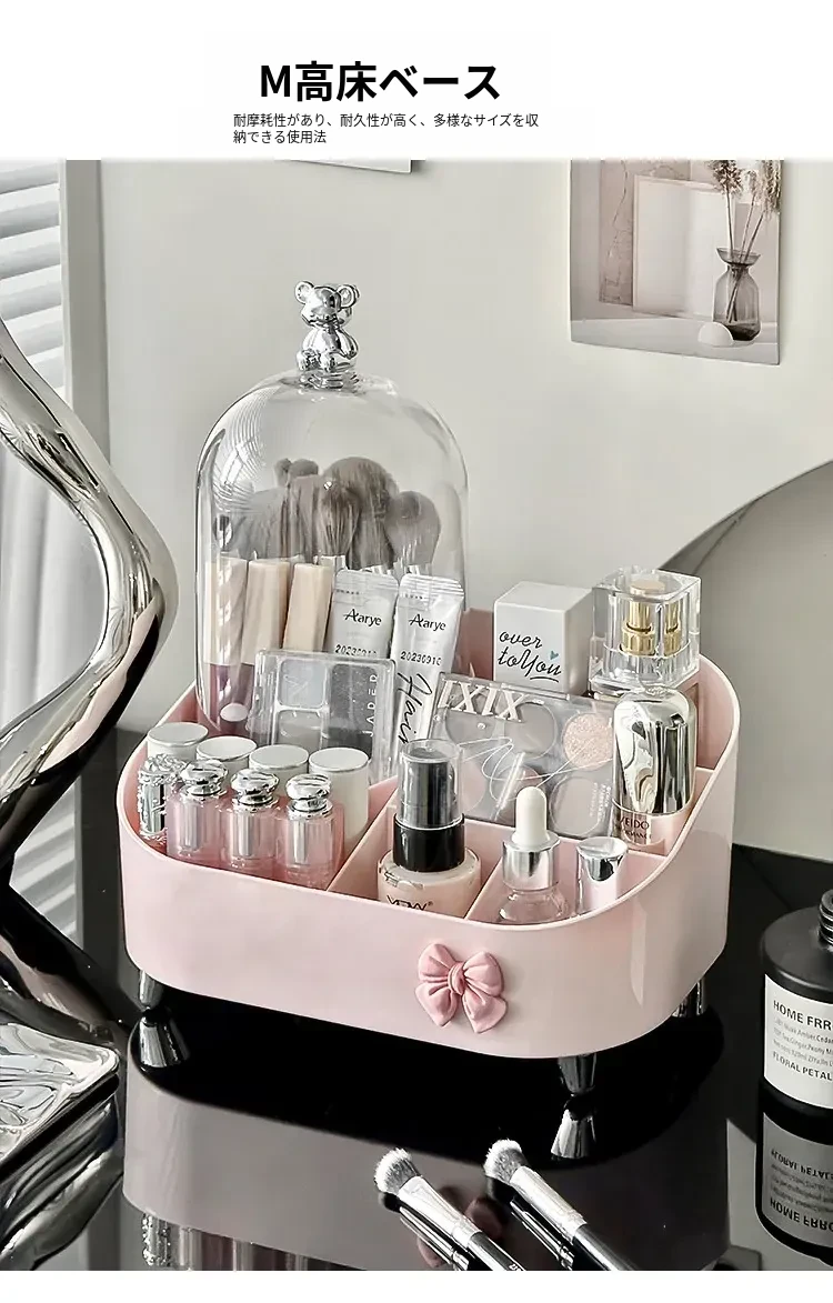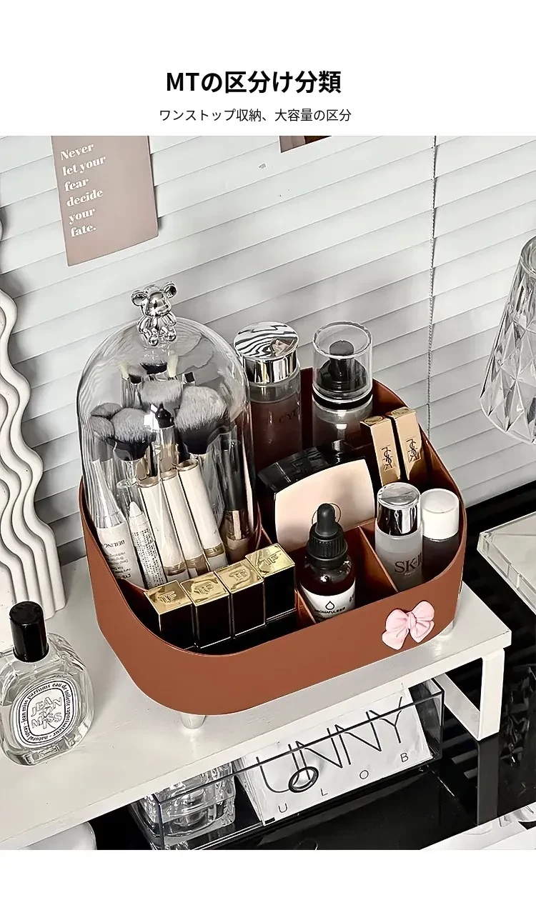 高級感溢れる化粧品収納ボックス - デスクトップメイク台にぴったり!香水やリップ、メイクブラシをスッキリ整理できる引き出し式収納ラック。あなたのビューティースペースをスタイリッシュに演出!