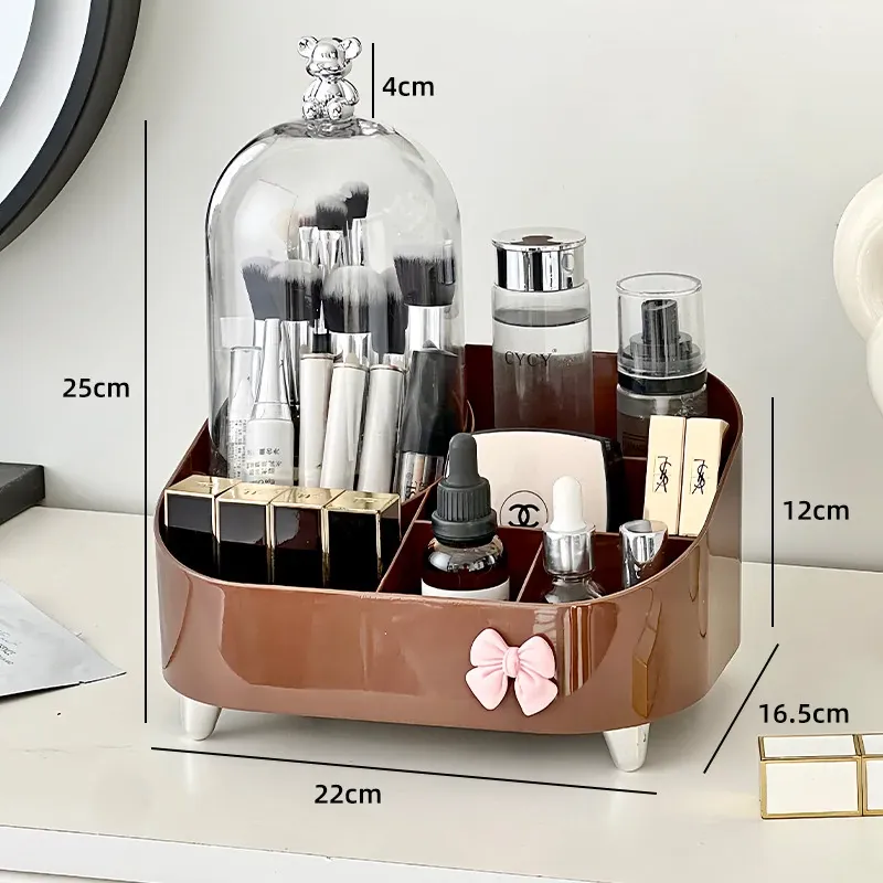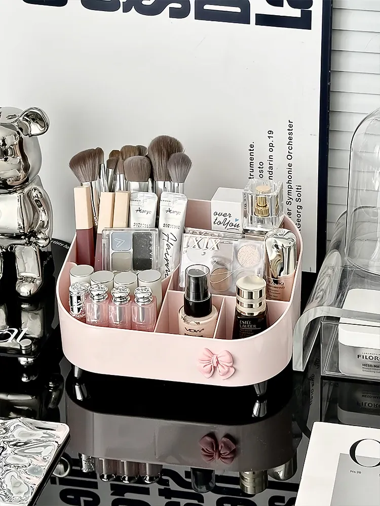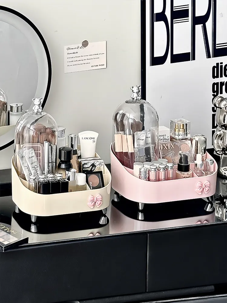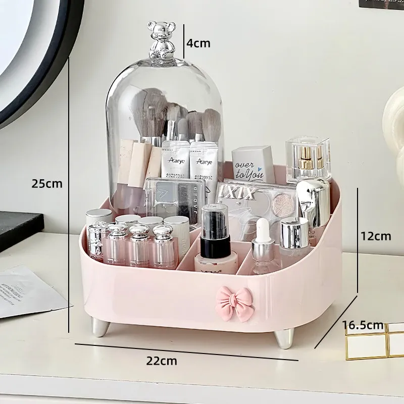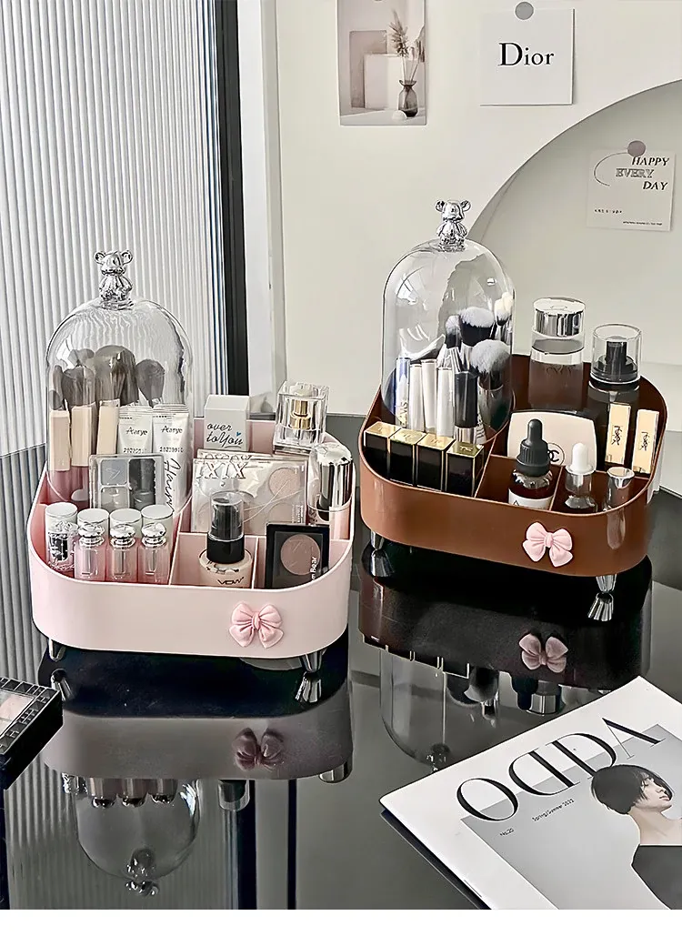 高級感溢れる化粧品収納ボックス - デスクトップメイク台にぴったり!香水やリップ、メイクブラシをスッキリ整理できる引き出し式収納ラック。あなたのビューティースペースをスタイリッシュに演出!