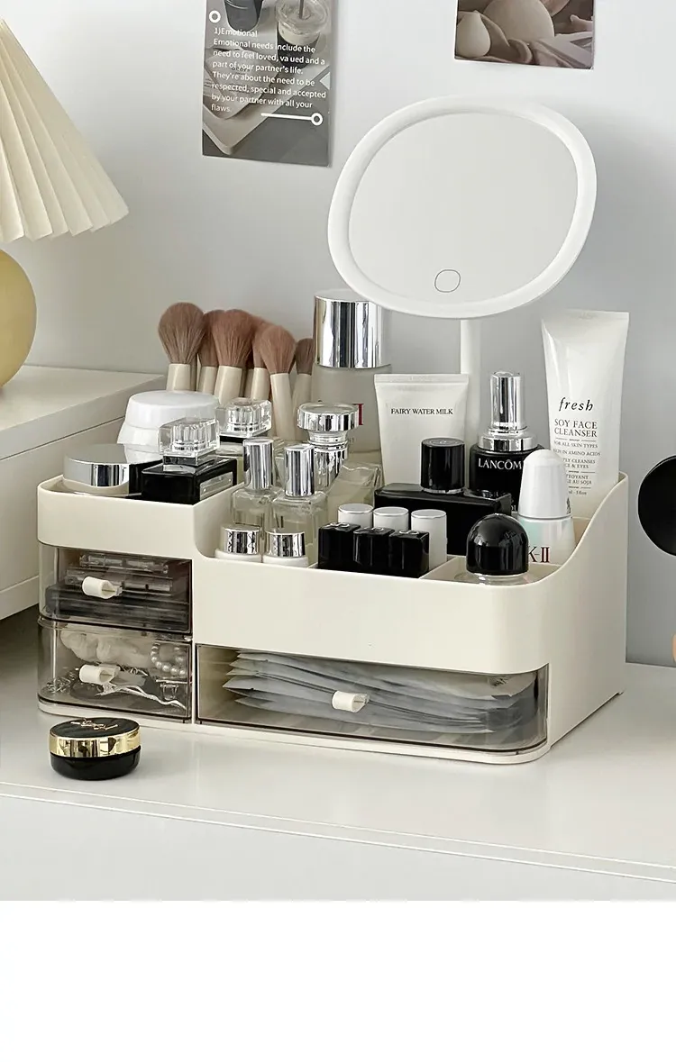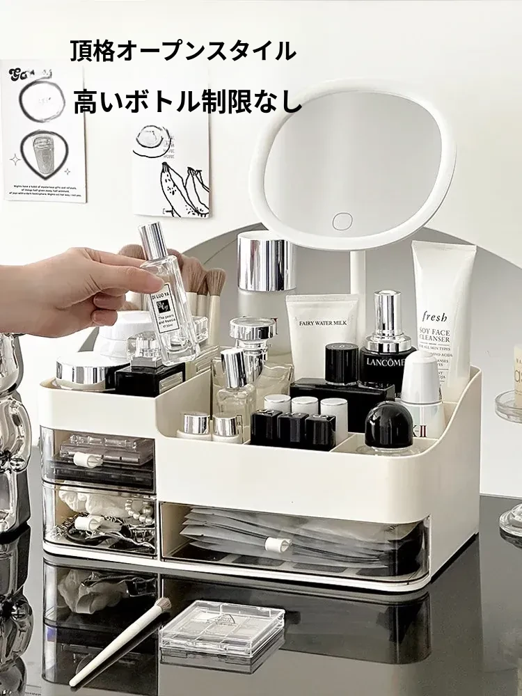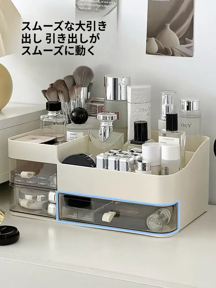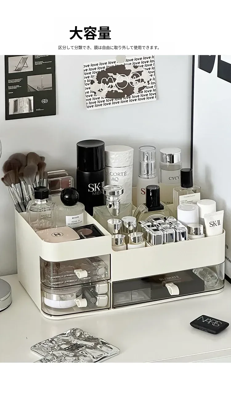 高級感あふれる化粧品収納ボックス!引き出し式メイク台でスキンケア製品をスマートに収納。大容量で、フェイスマスクや口紅もすっきり整理。美を引き立てるデザインで、あなたの毎日を特別に!