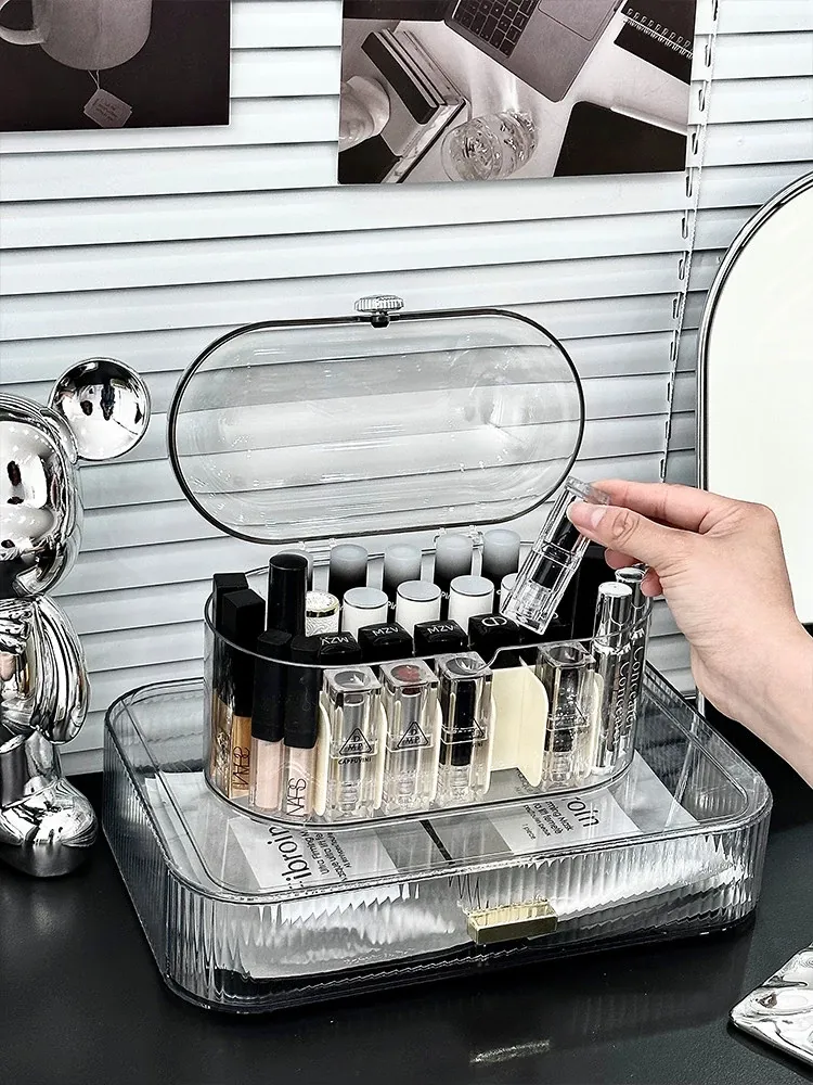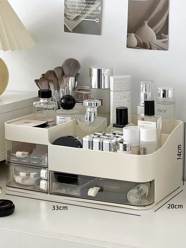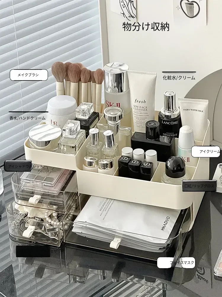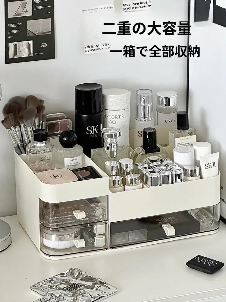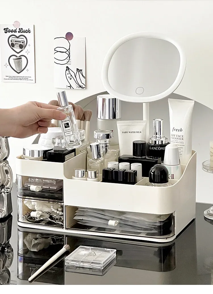 高級感あふれる化粧品収納ボックス!引き出し式メイク台でスキンケア製品をスマートに収納。大容量で、フェイスマスクや口紅もすっきり整理。美を引き立てるデザインで、あなたの毎日を特別に!