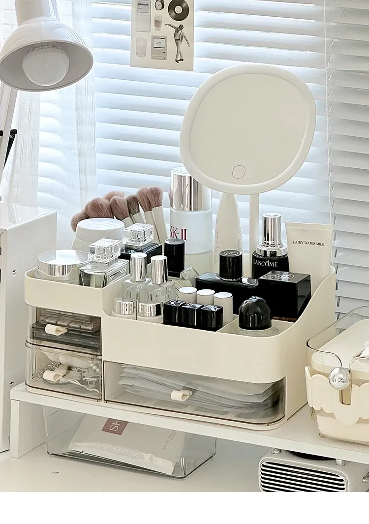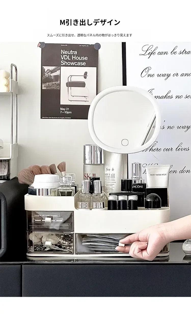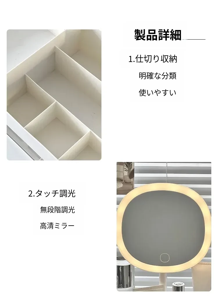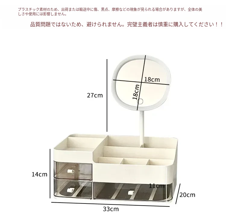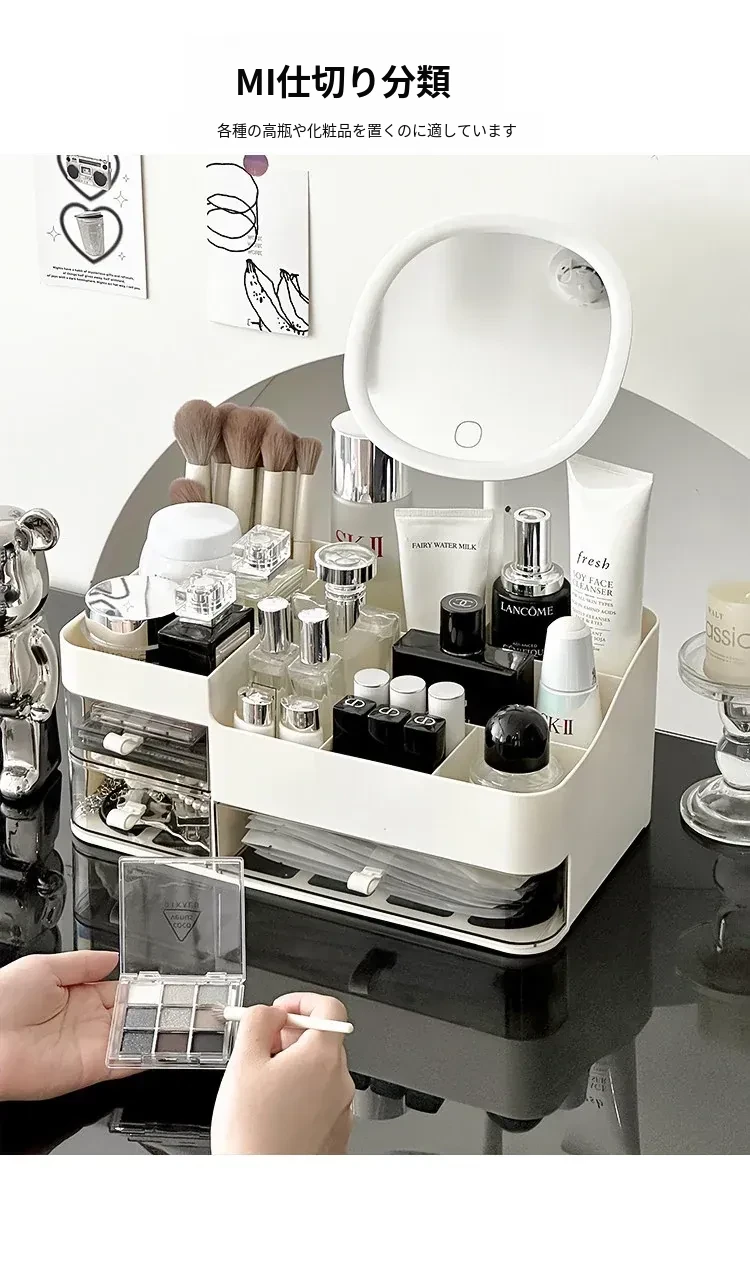 【ミラー付き収納ボックス】✅調整可能な色温度