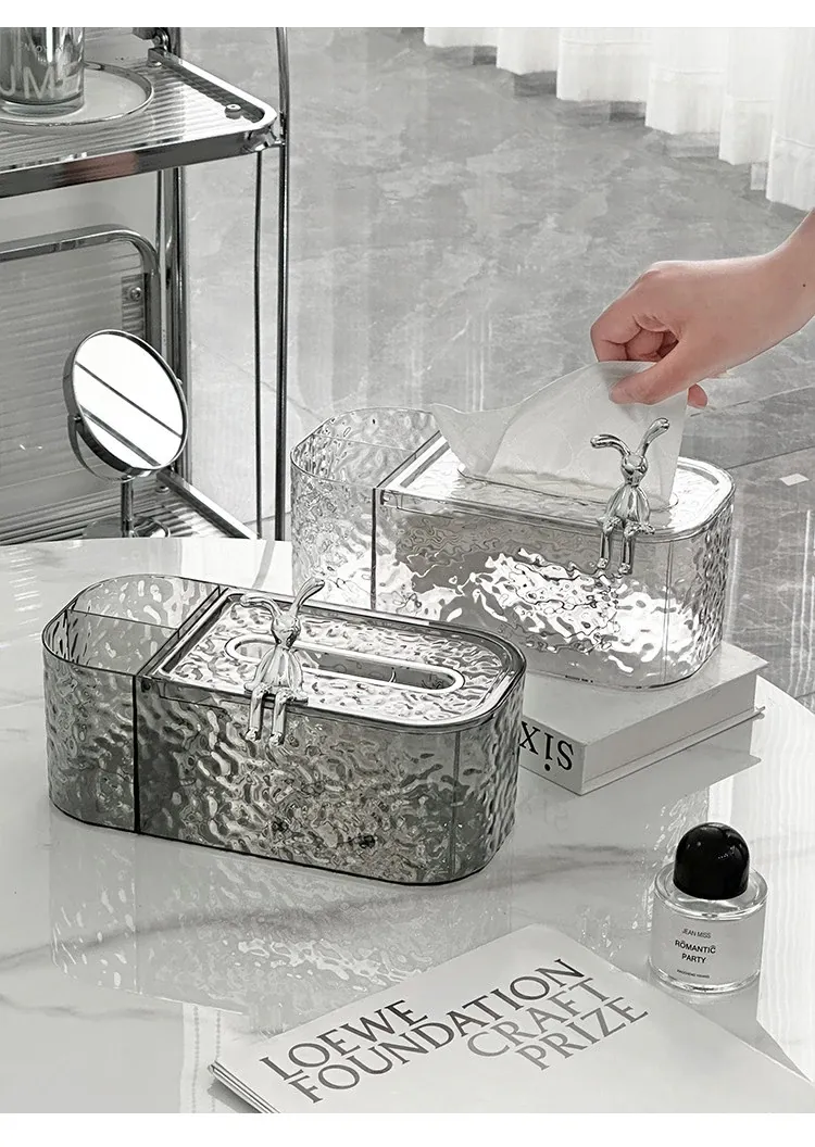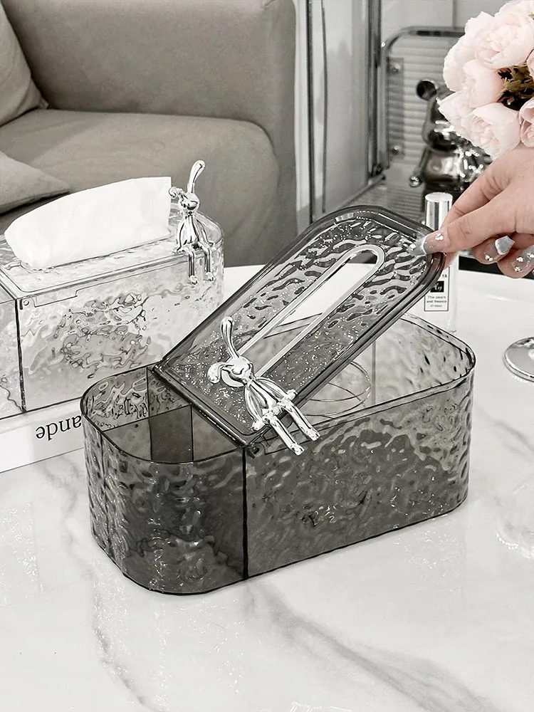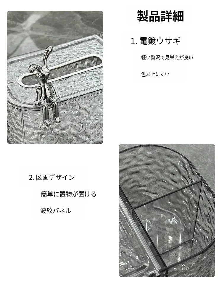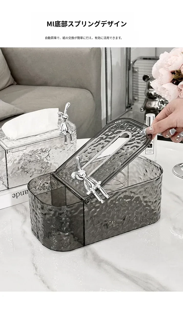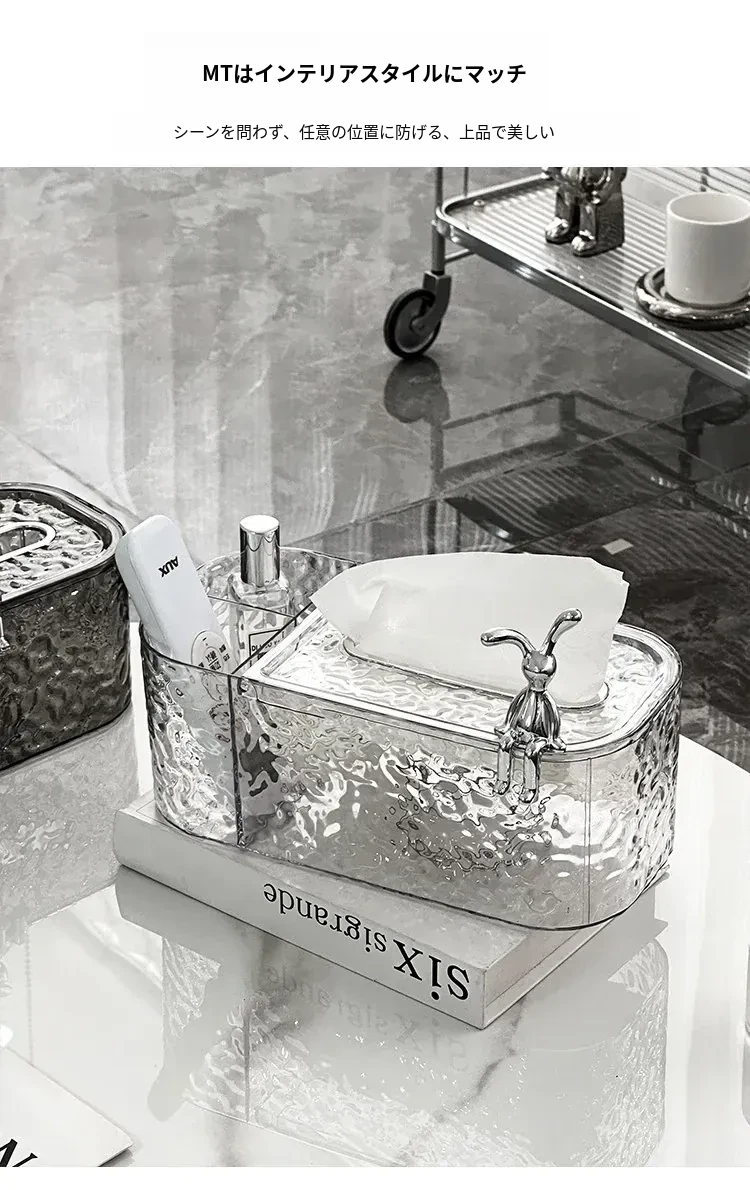透灰+透明-ウサギ波紋ティッシュボックス