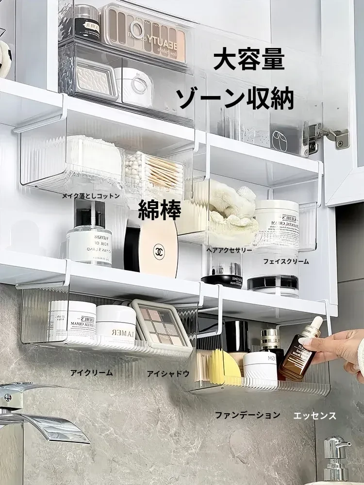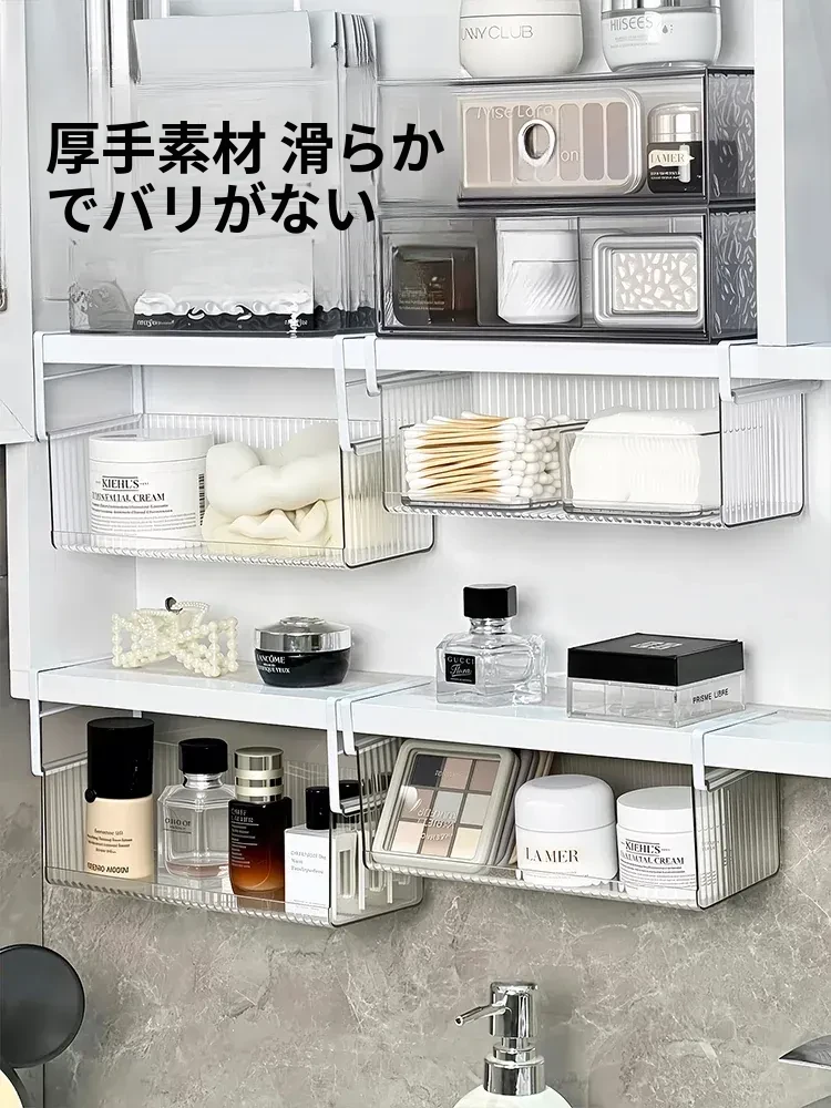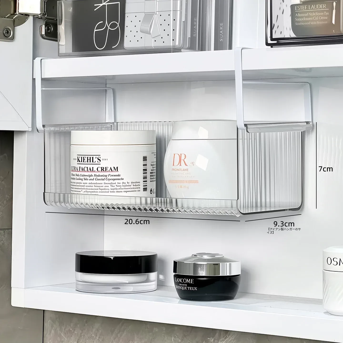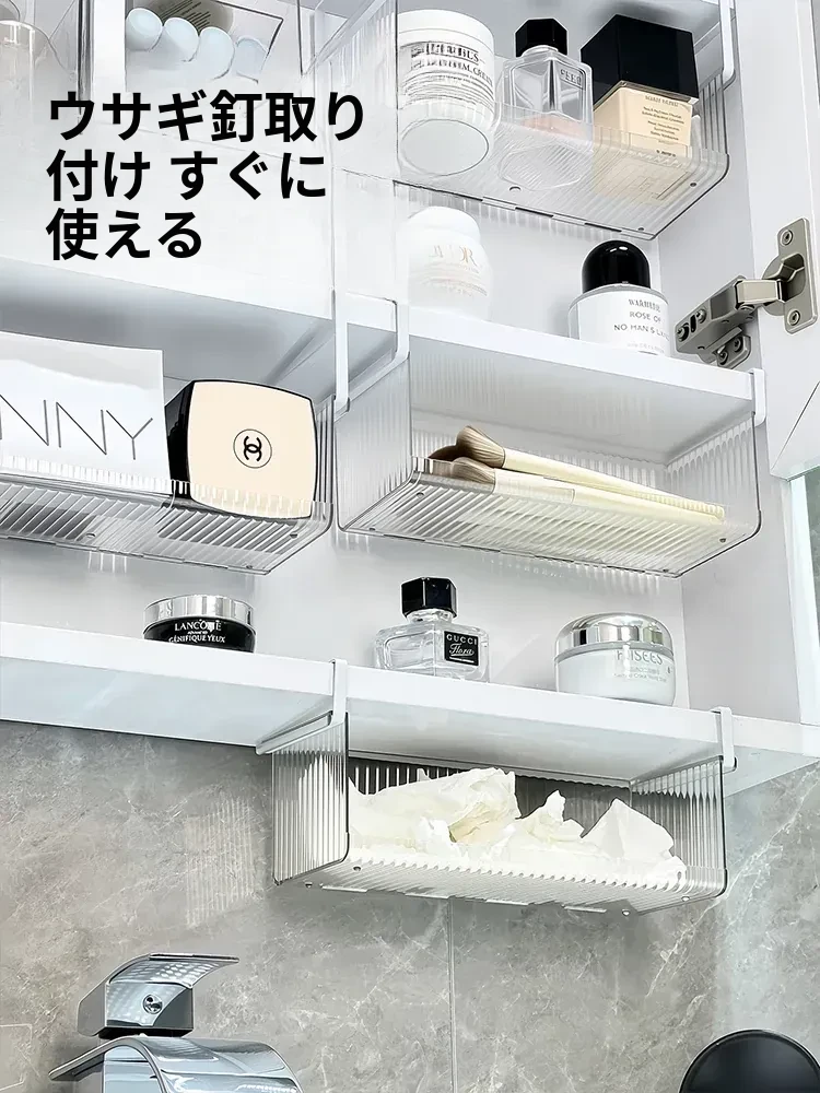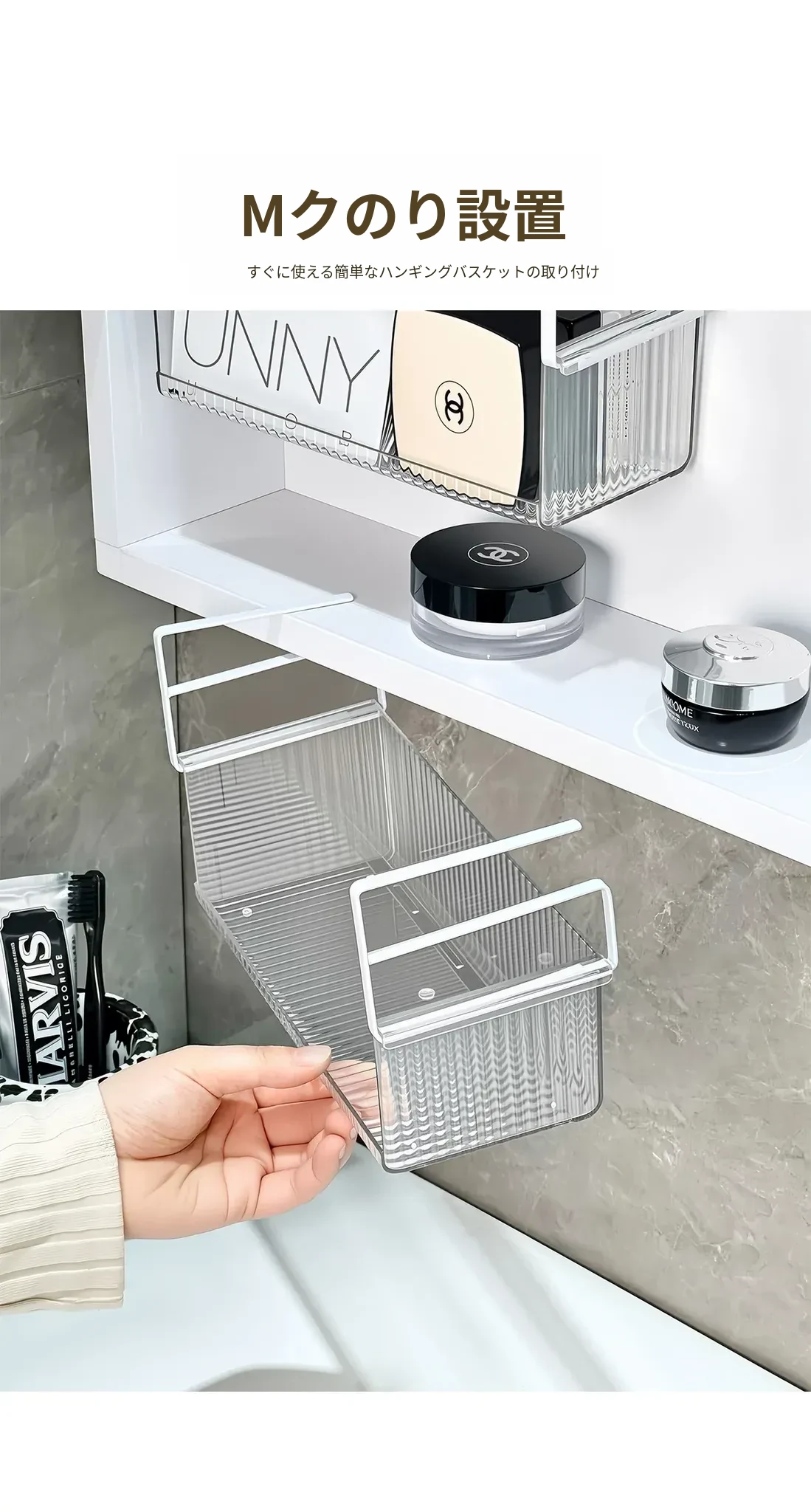 鏡台下の収納ボックス・吊り下げ式化粧品ラック!バスルームやトイレに最適なスキンケア用品やコットン収納にぴったり。美しい空間を作り出し、すっきり整理整頓!