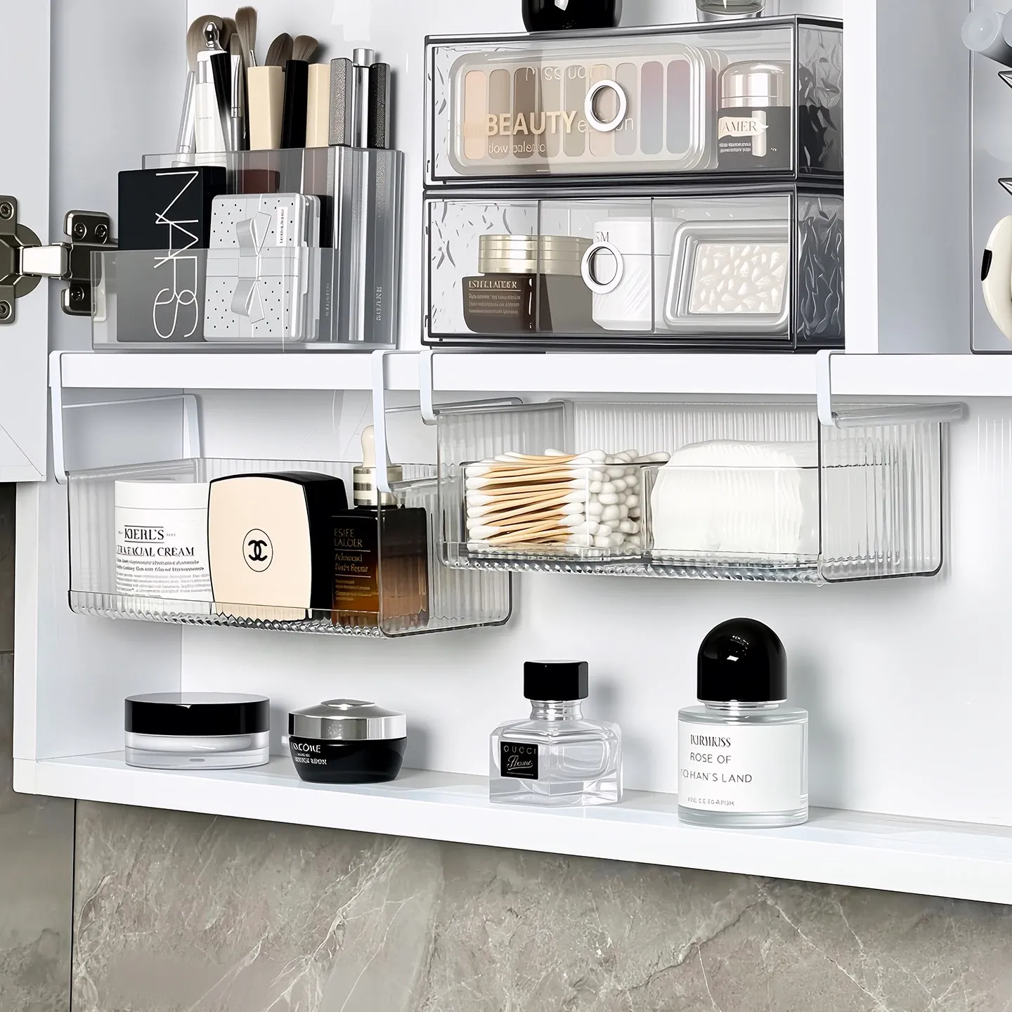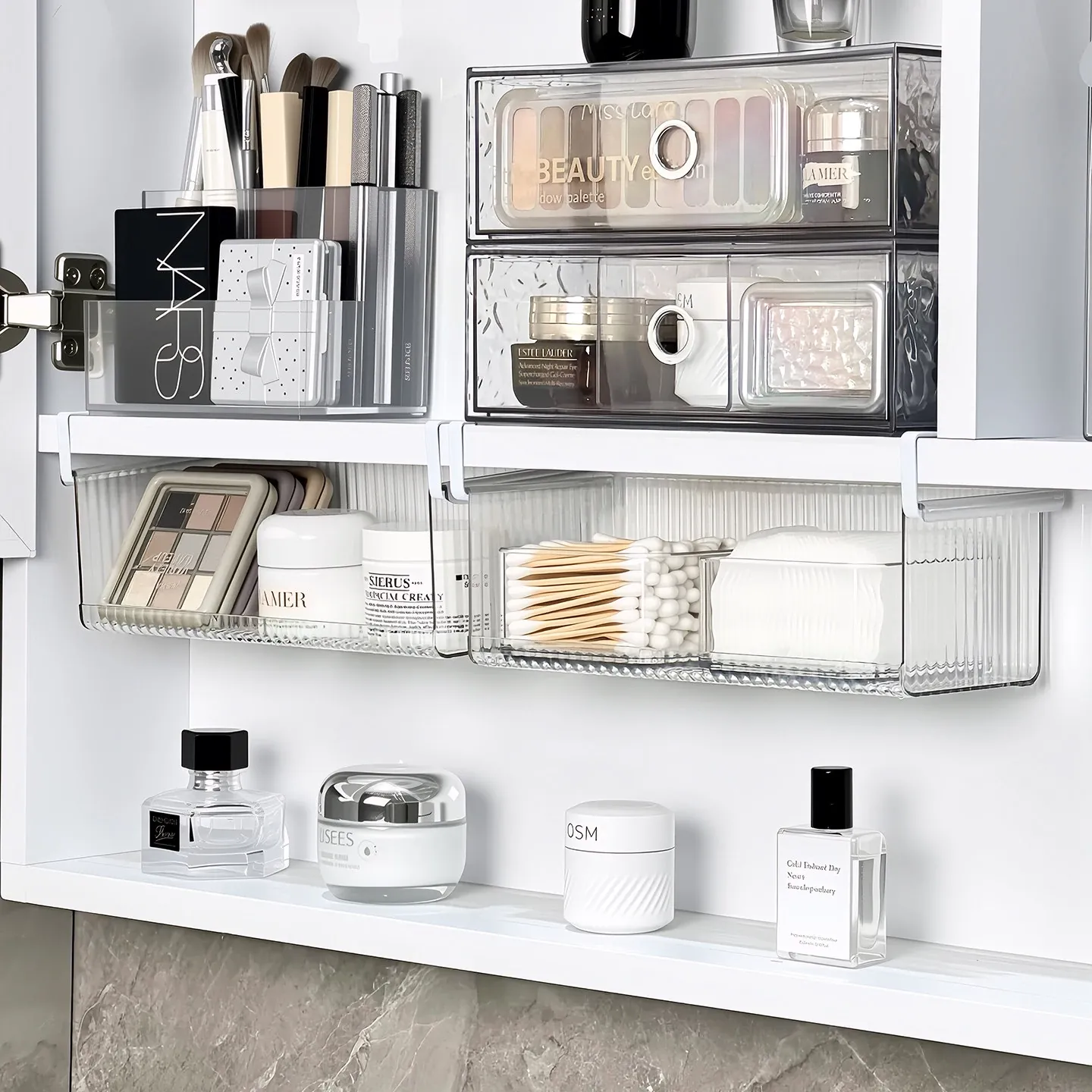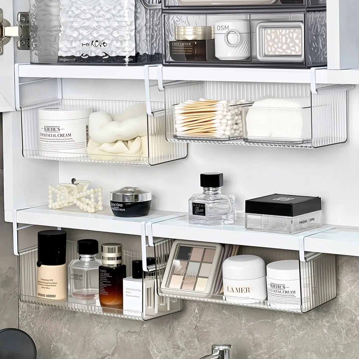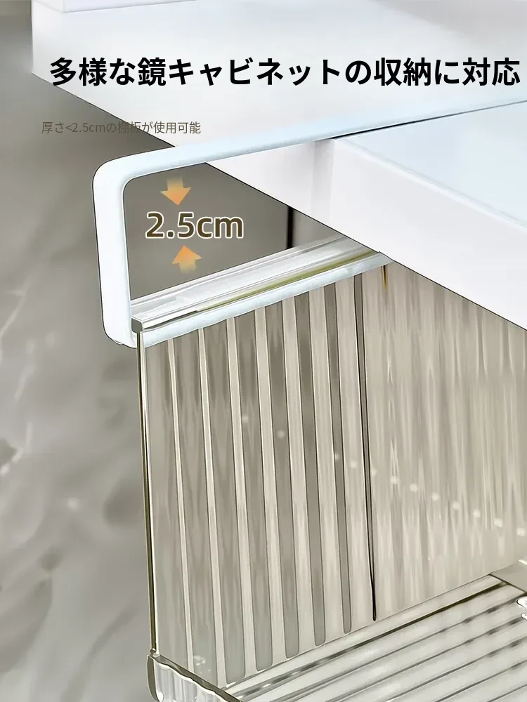 鏡台下の収納ボックス・吊り下げ式化粧品ラック!バスルームやトイレに最適なスキンケア用品やコットン収納にぴったり。美しい空間を作り出し、すっきり整理整頓!