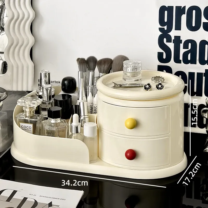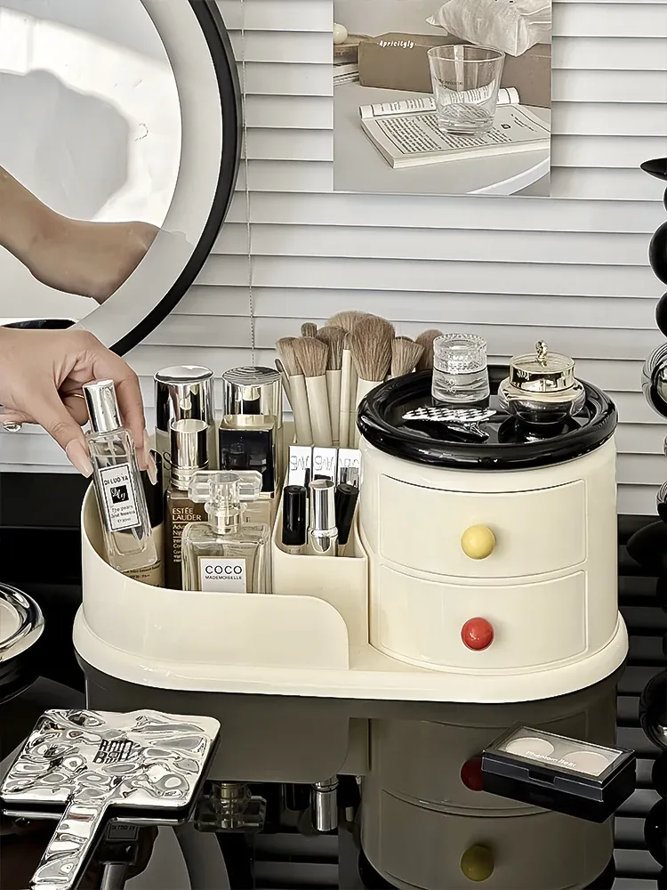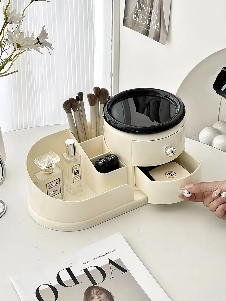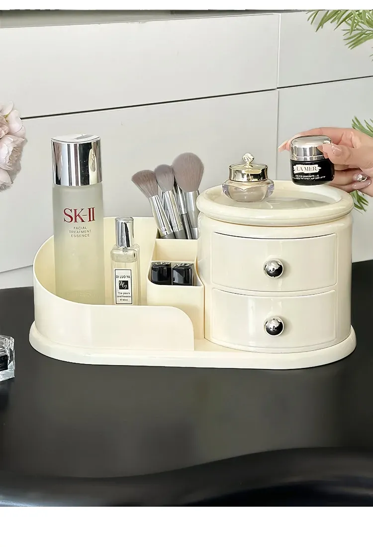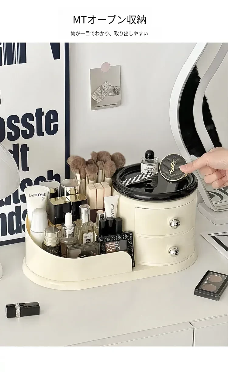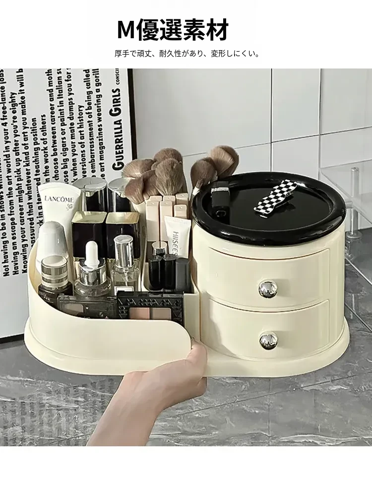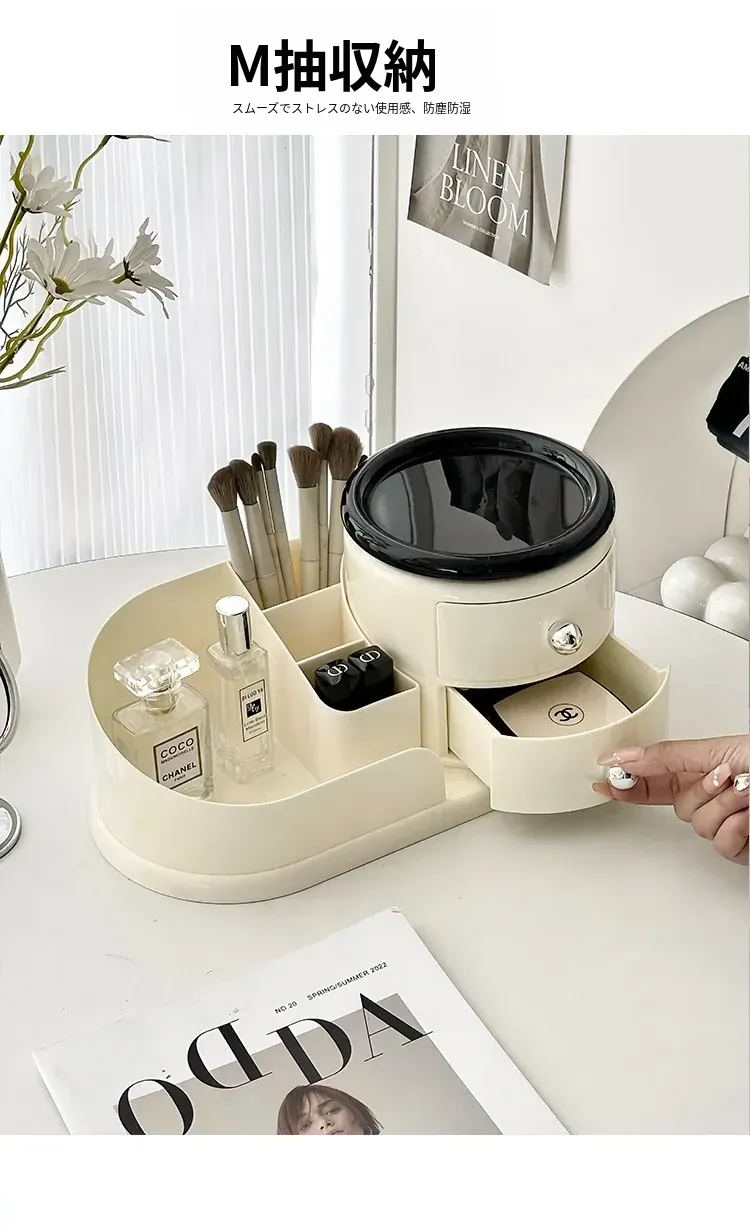 大容量デスクトップ化粧品収納ボックス - 防塵設計でスキンケアアイテムをすっきり整理!メイク台に最適な化粧ブラシ&口紅オーガナイザー。おしゃれで機能的な収納で、毎日のメイクアップをもっと楽しく!