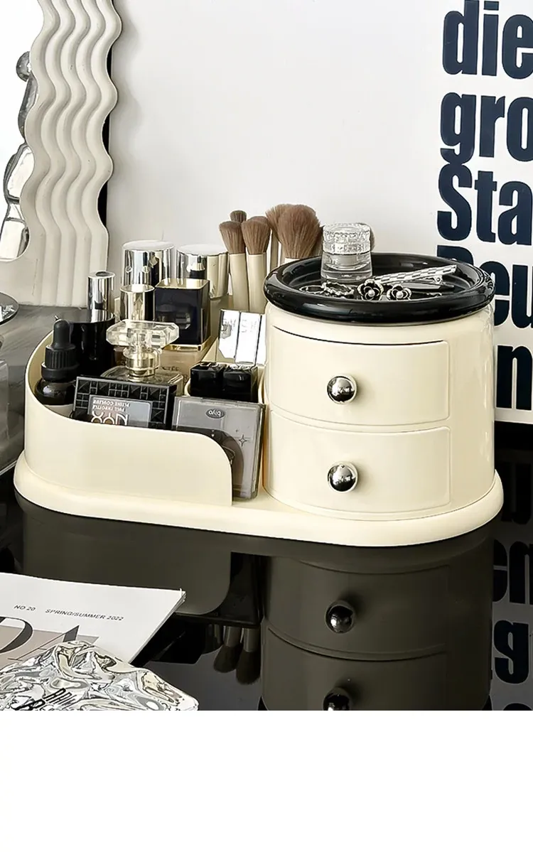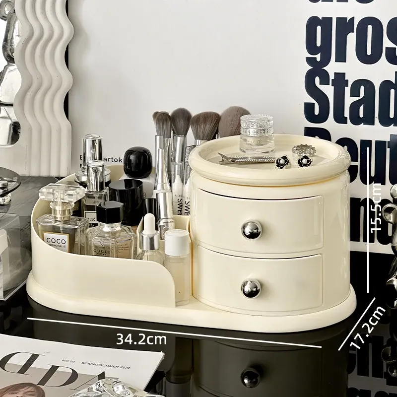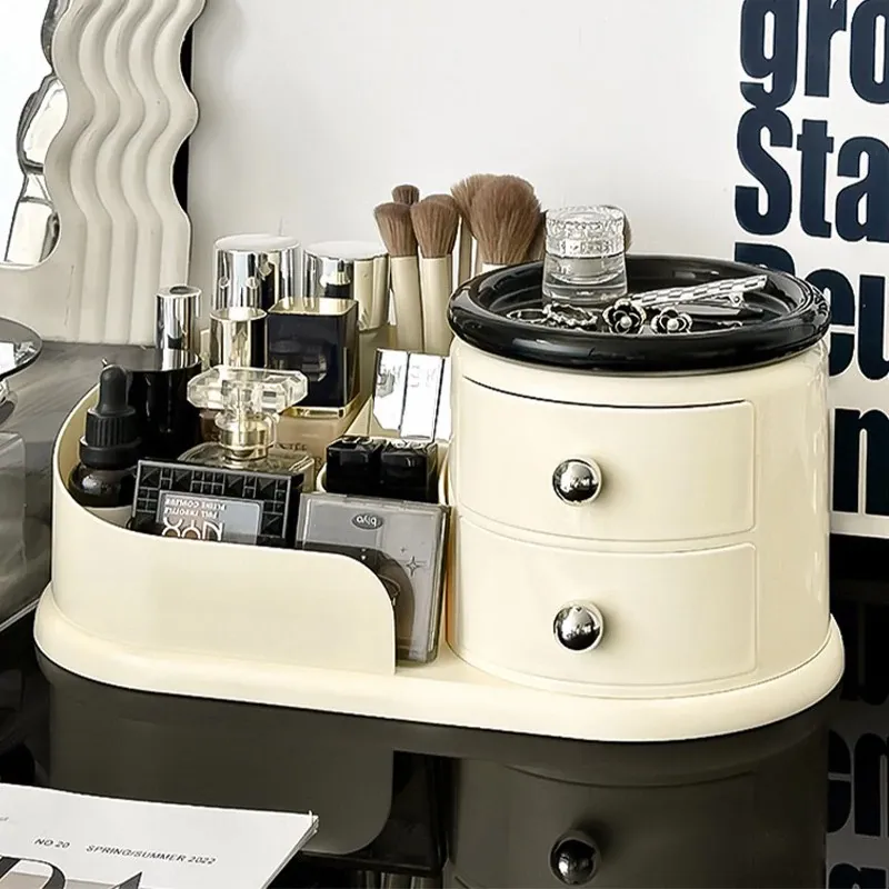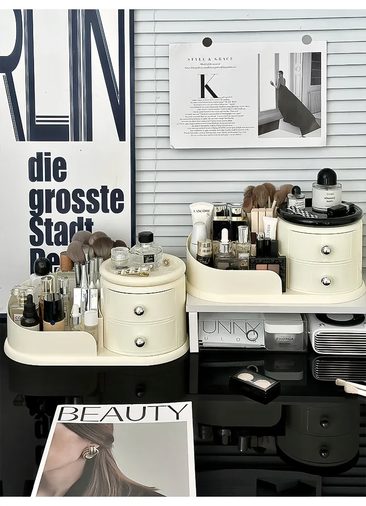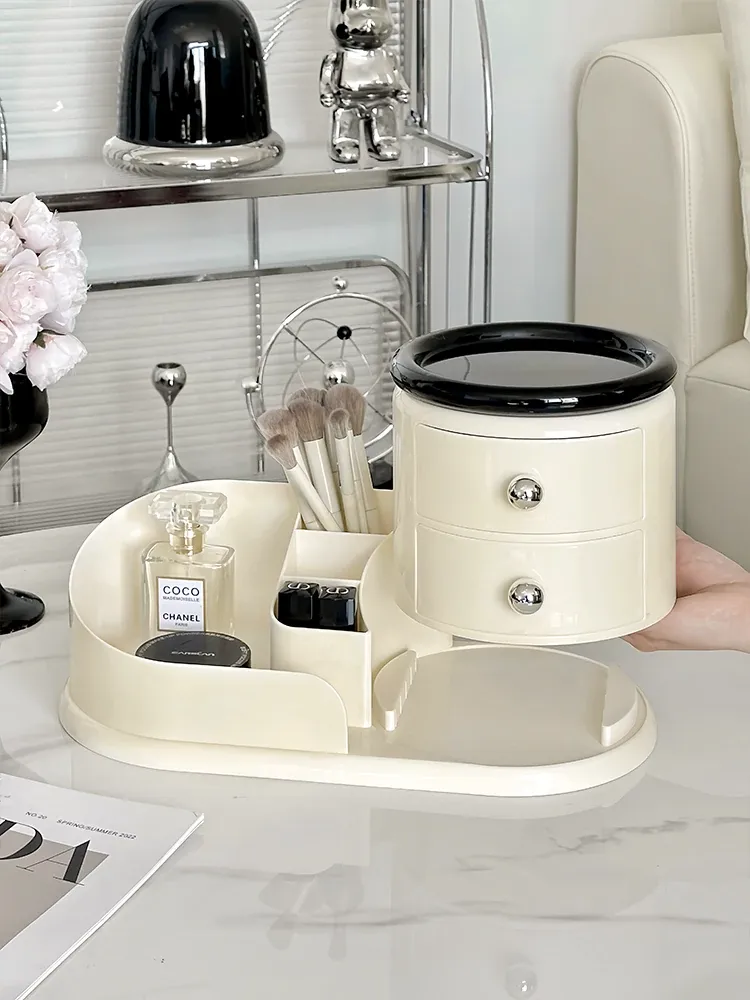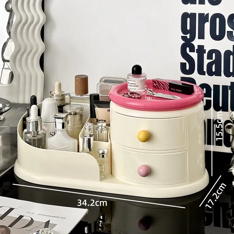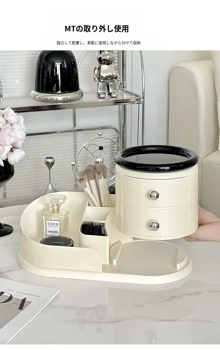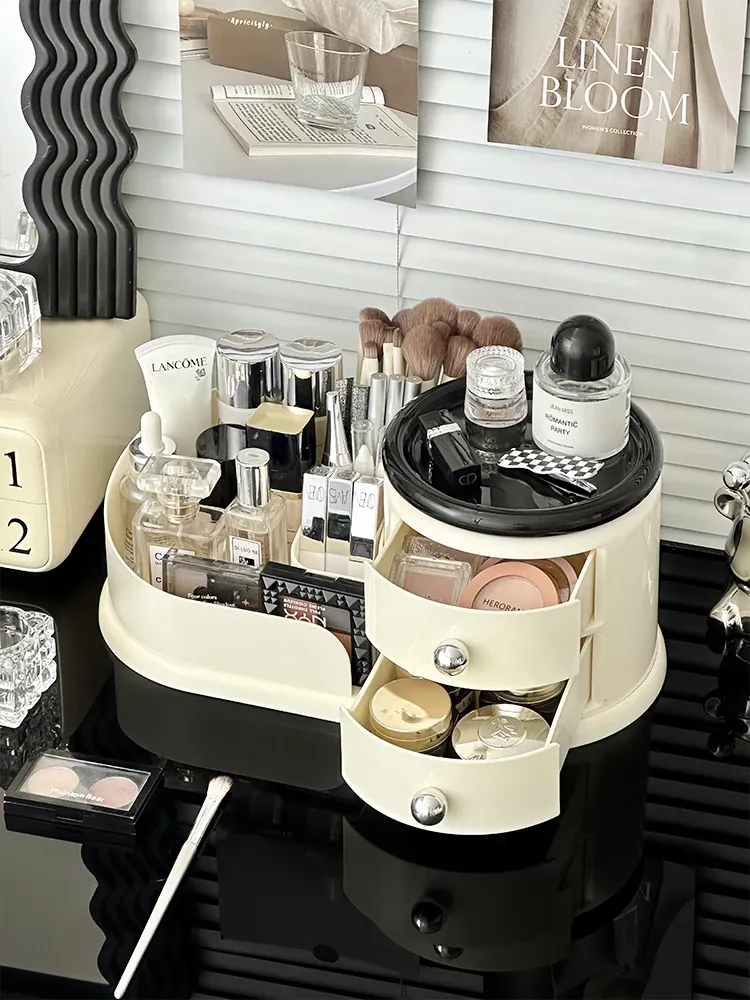 大容量デスクトップ化粧品収納ボックス - 防塵設計でスキンケアアイテムをすっきり整理!メイク台に最適な化粧ブラシ&口紅オーガナイザー。おしゃれで機能的な収納で、毎日のメイクアップをもっと楽しく!