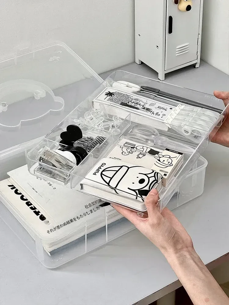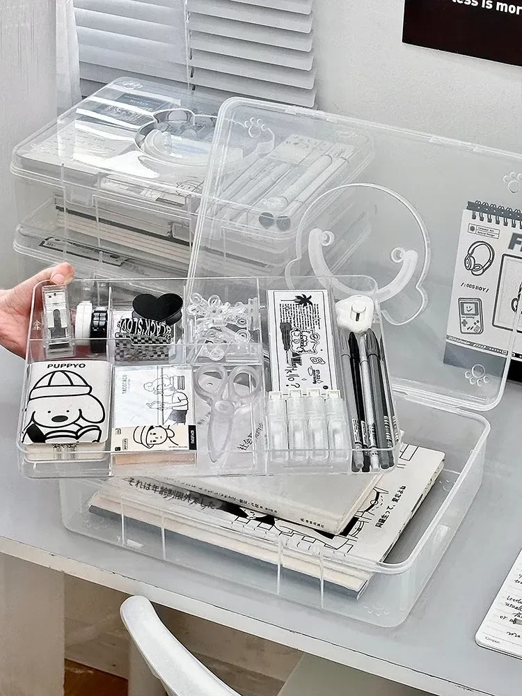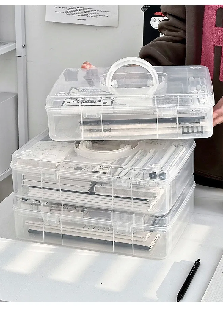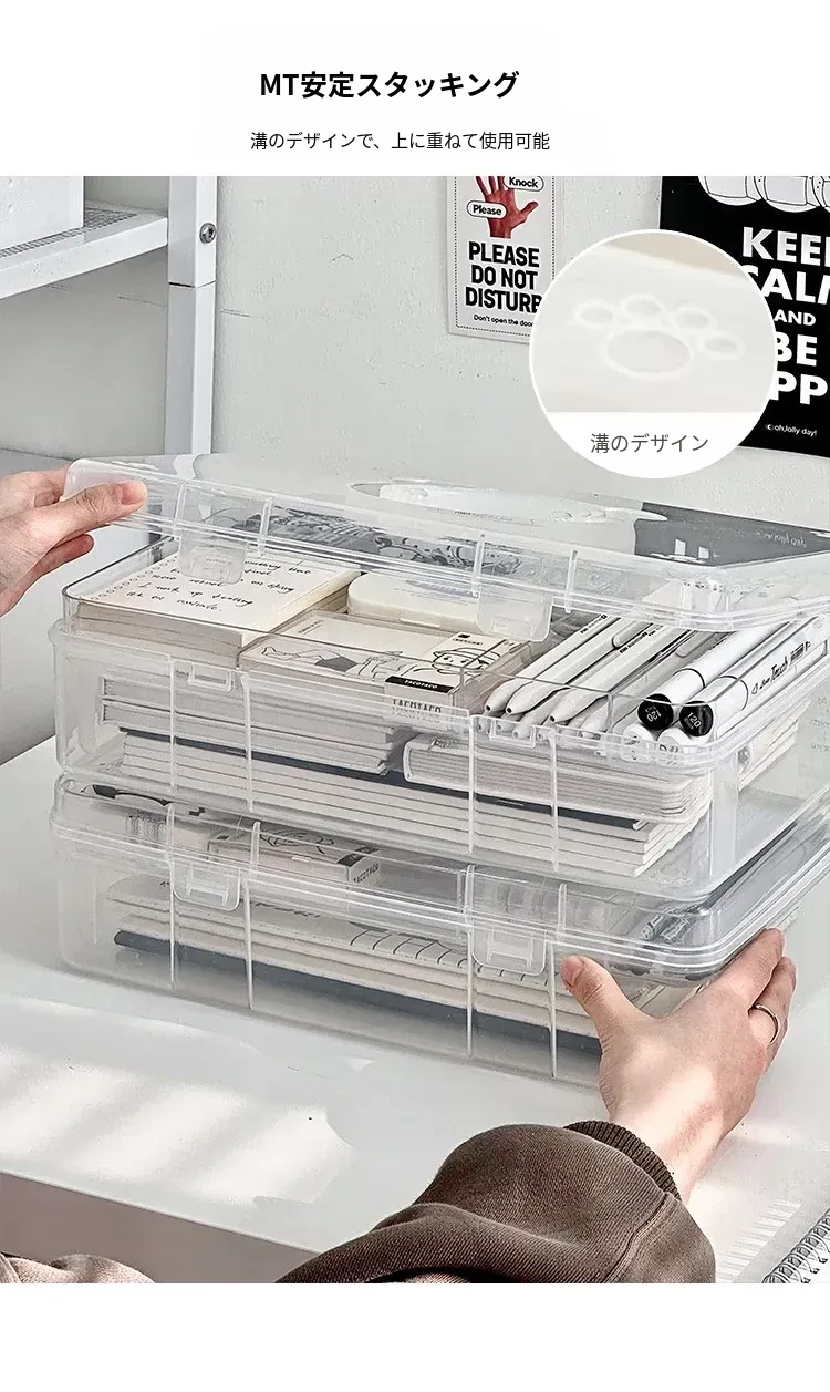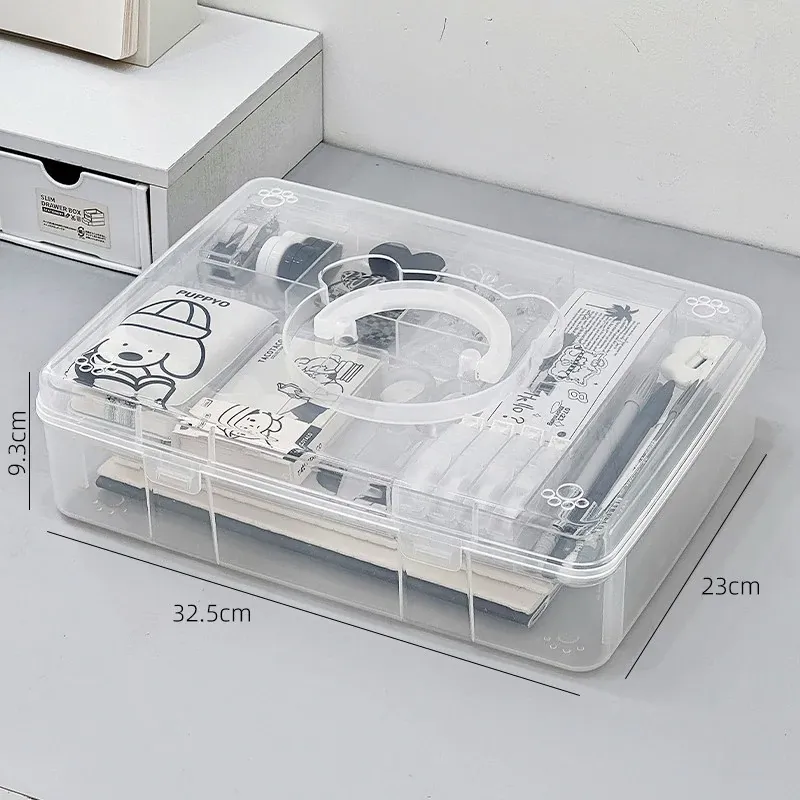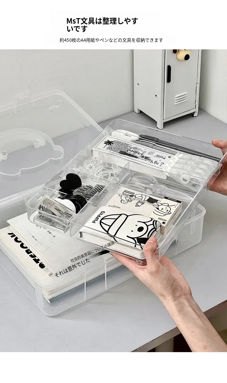 大容量!学生必备手提書籍収納ボックス - 教室やデスク用の二層仕切りで整理整頓!プラスチック製で軽量、持ち運びも簡単!