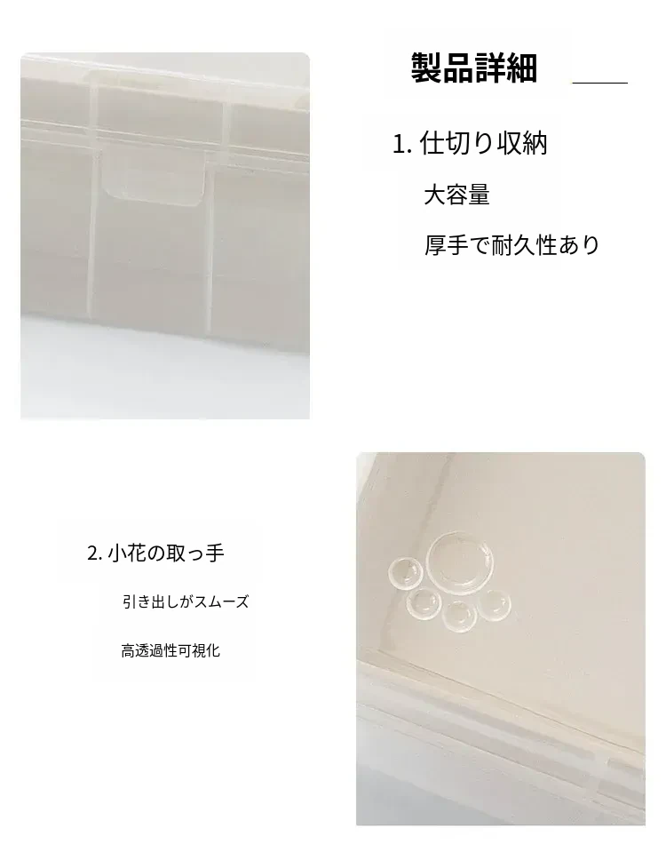 三つの二重仕切り付き蓋付き収納ボックス