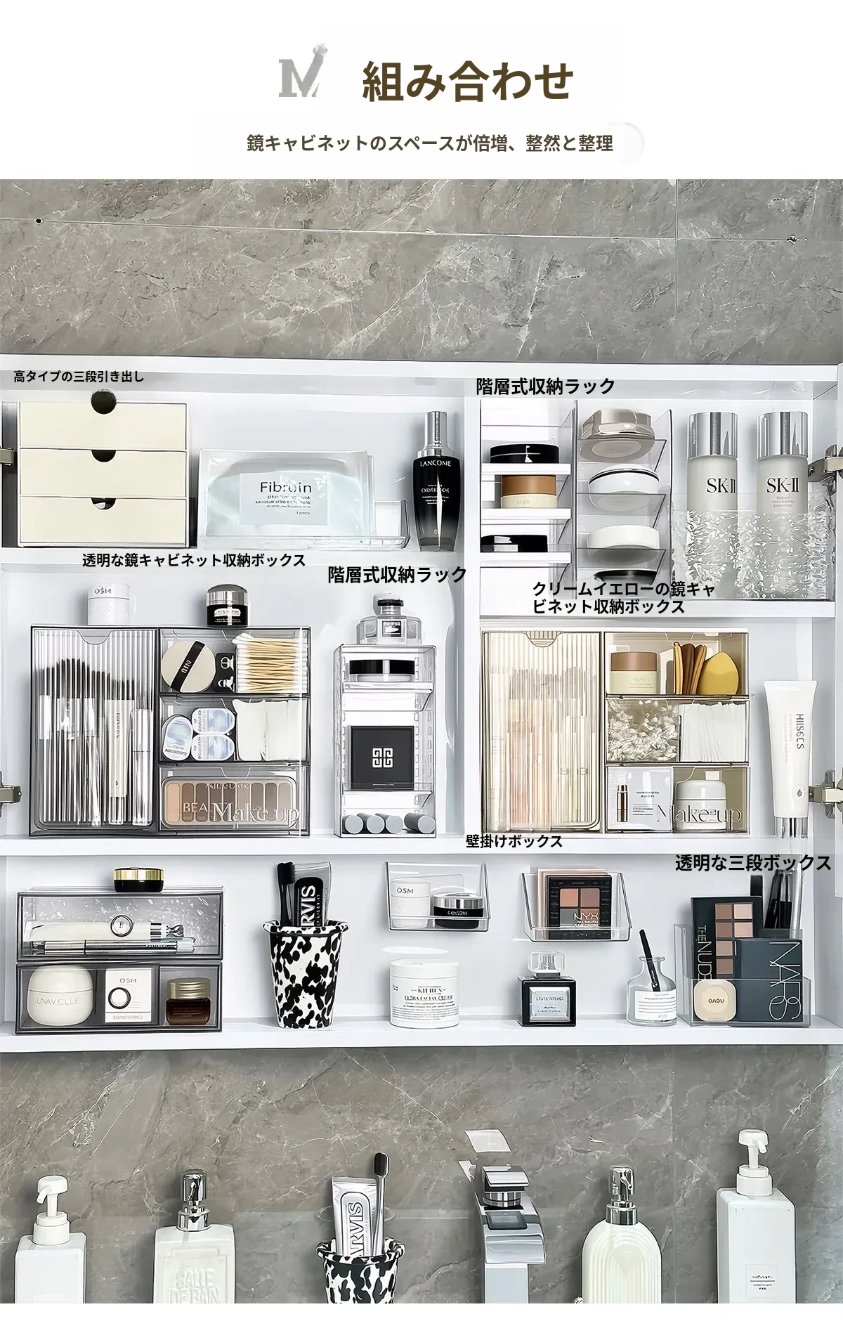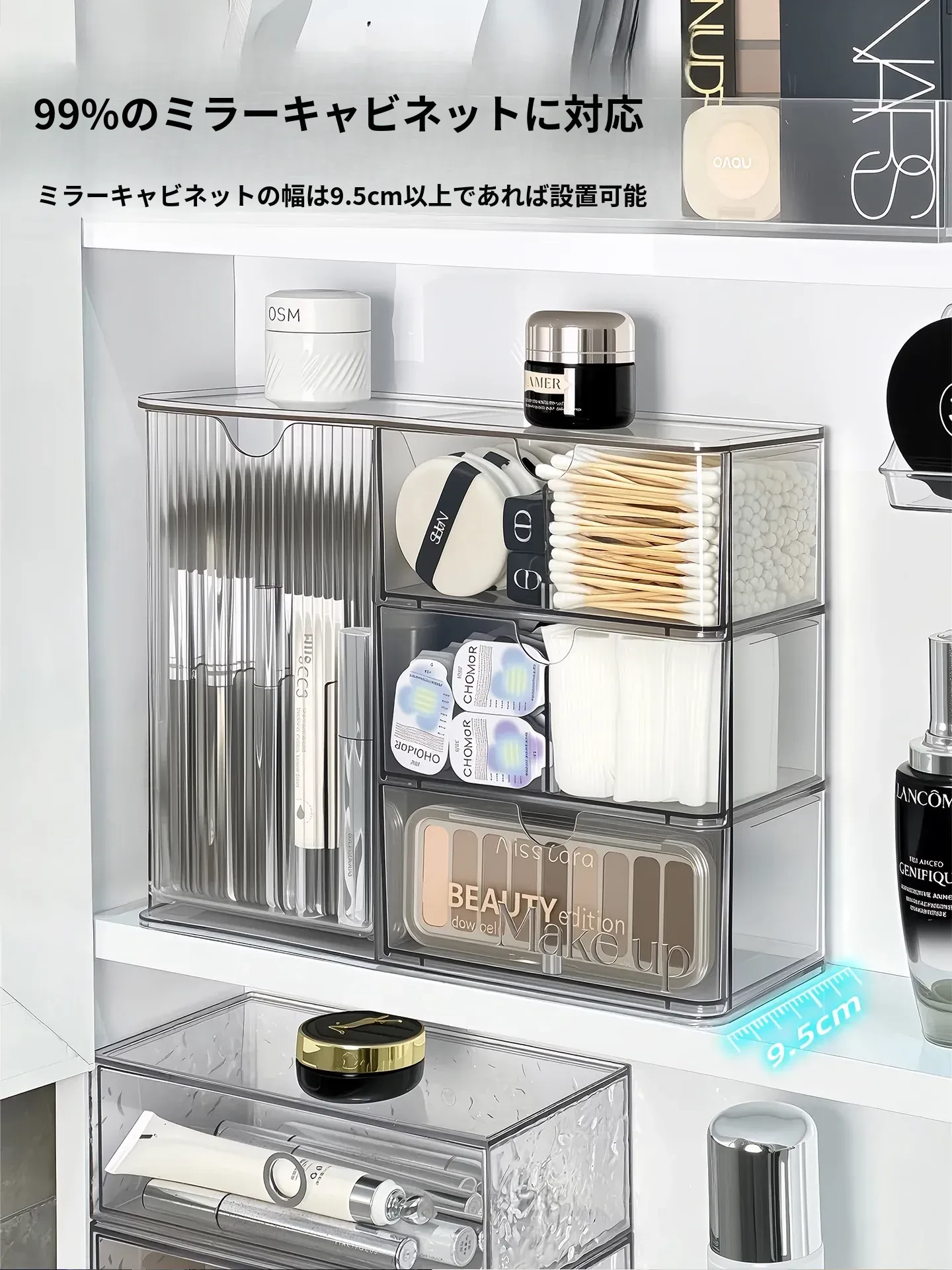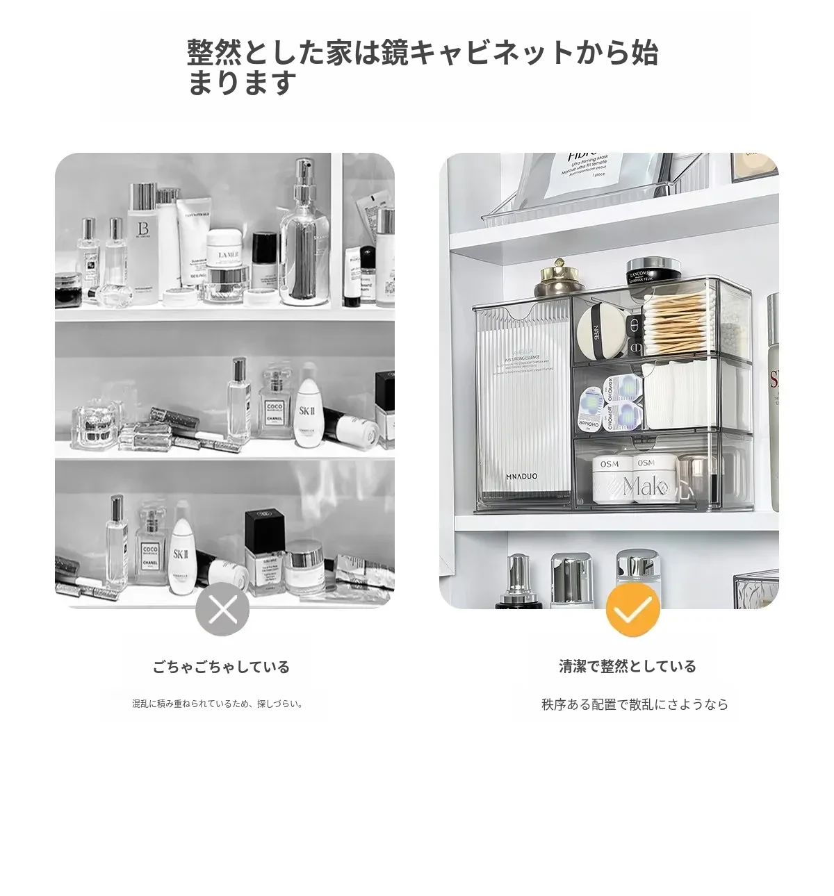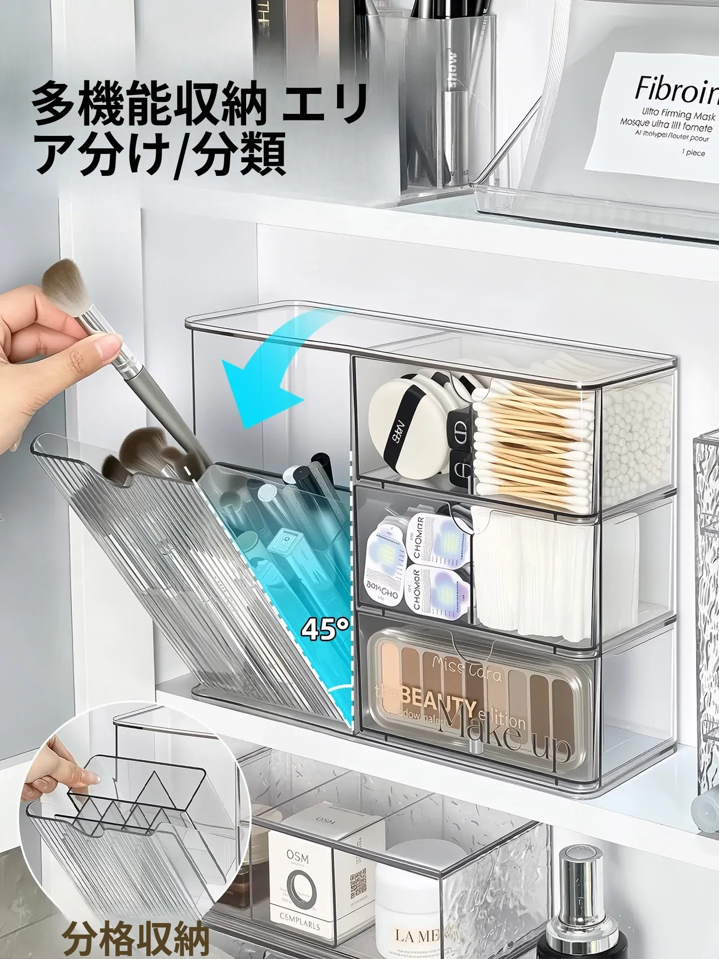高級感溢れる透明化粧品収納ボックス!鏡台内の整理整頓に最適な口紅&化粧ブラシスタンド。清潔感あふれるバスルームを演出し、あなたの美を引き立てます。