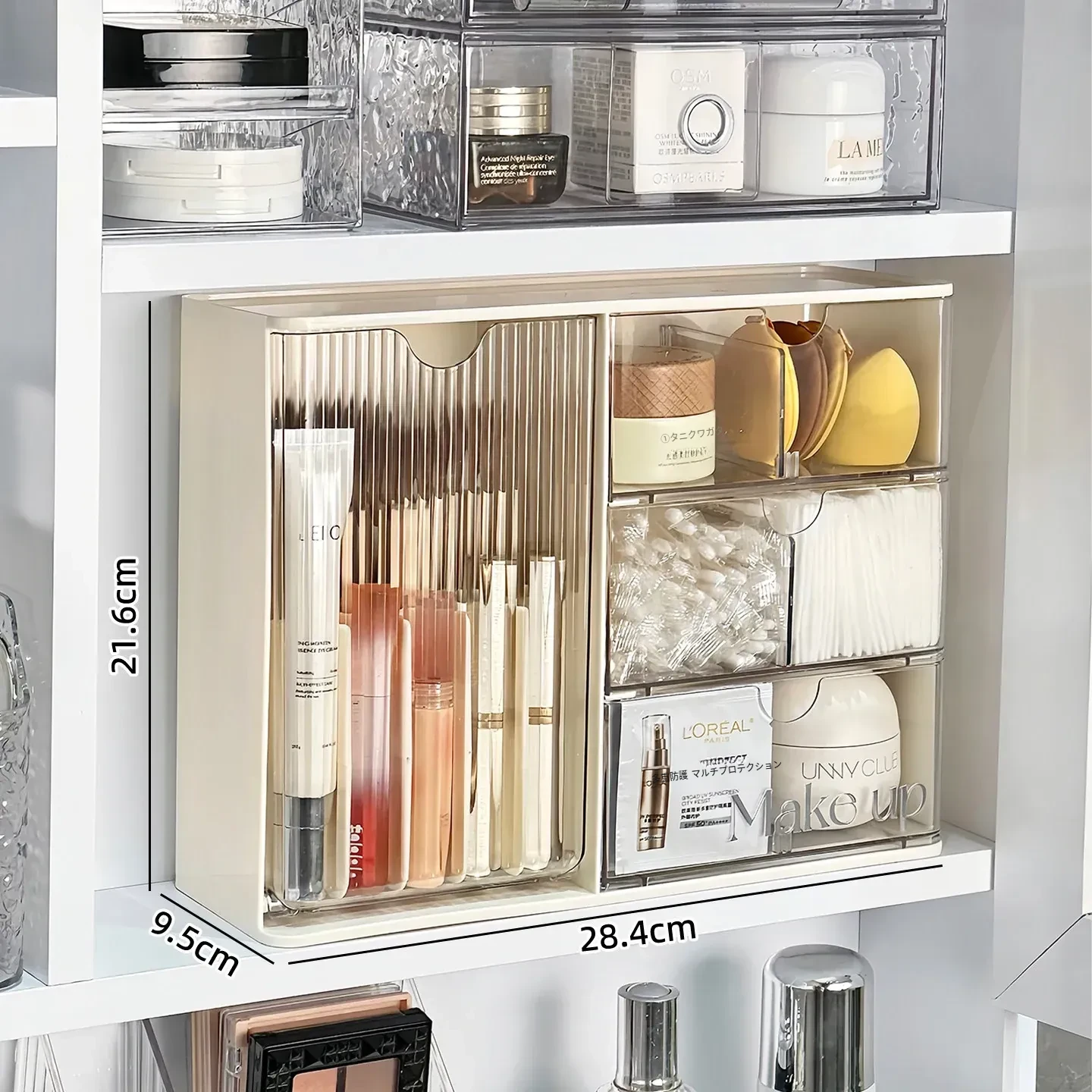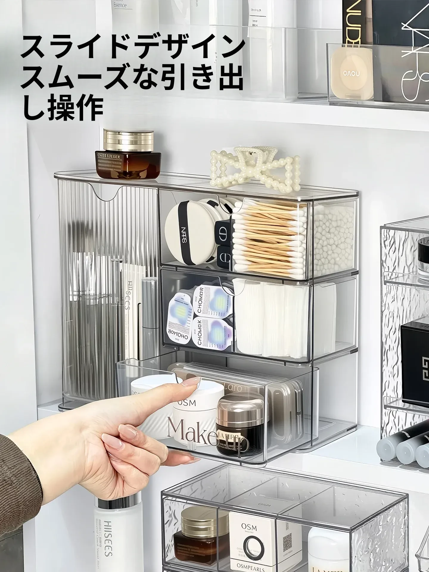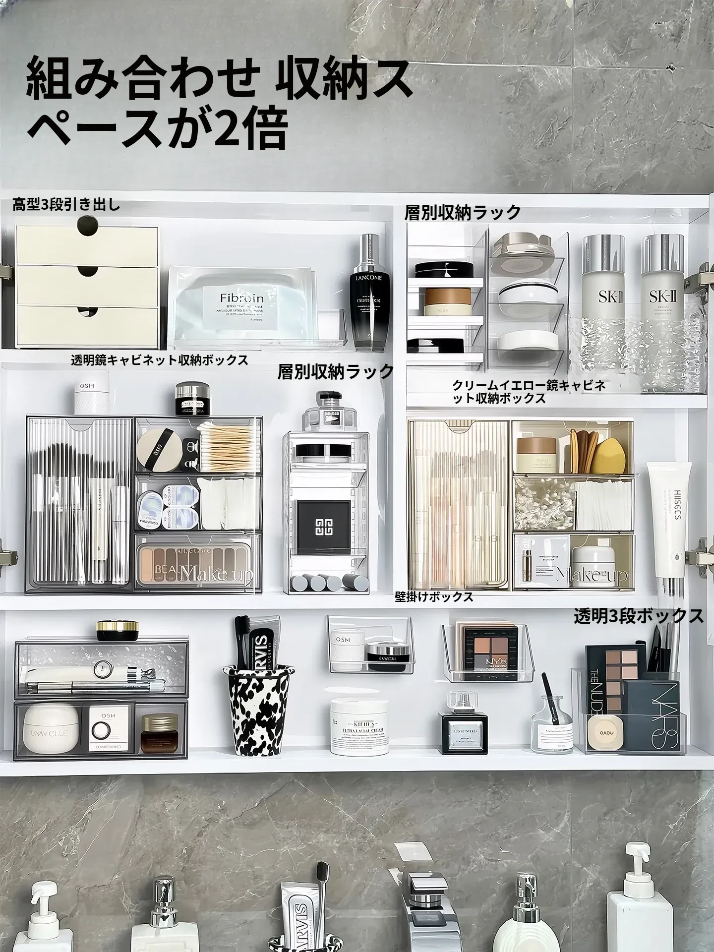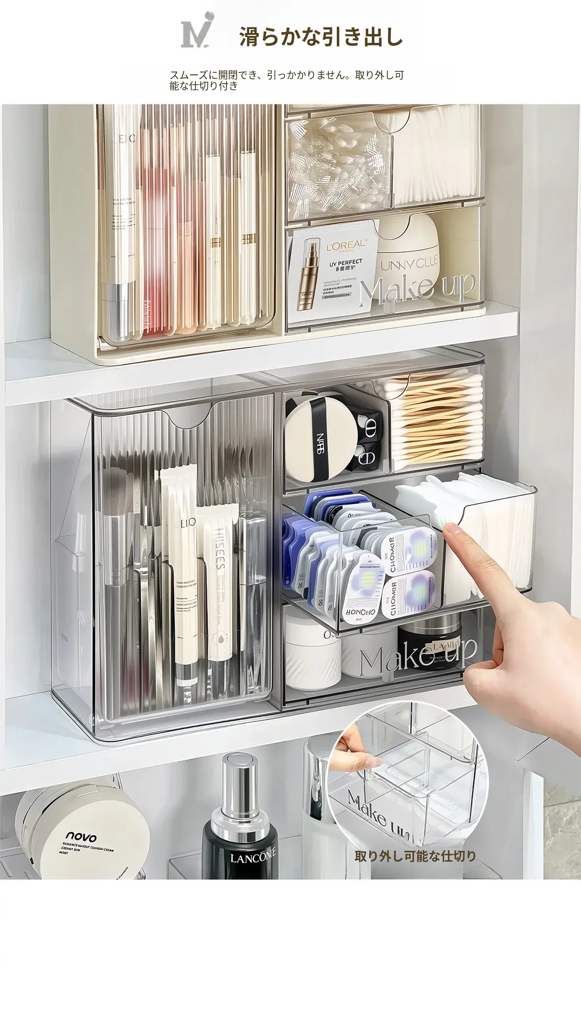 高級感溢れる透明化粧品収納ボックス!鏡台内の整理整頓に最適な口紅&化粧ブラシスタンド。清潔感あふれるバスルームを演出し、あなたの美を引き立てます。