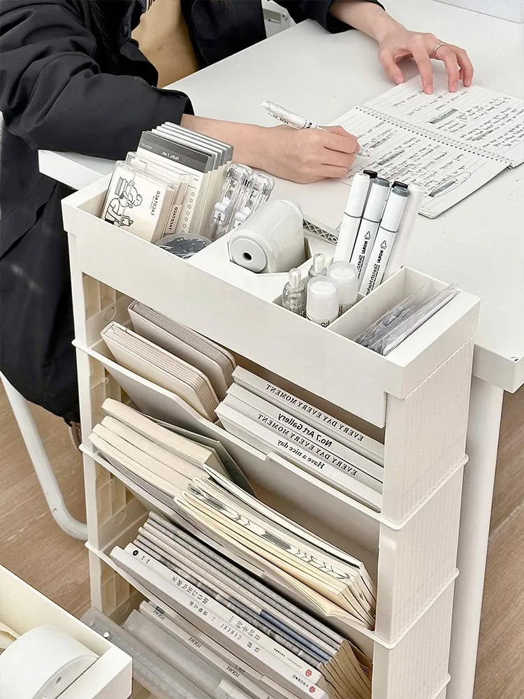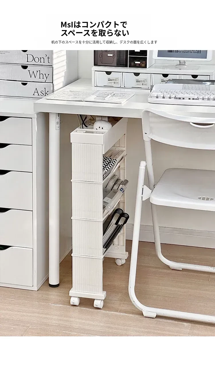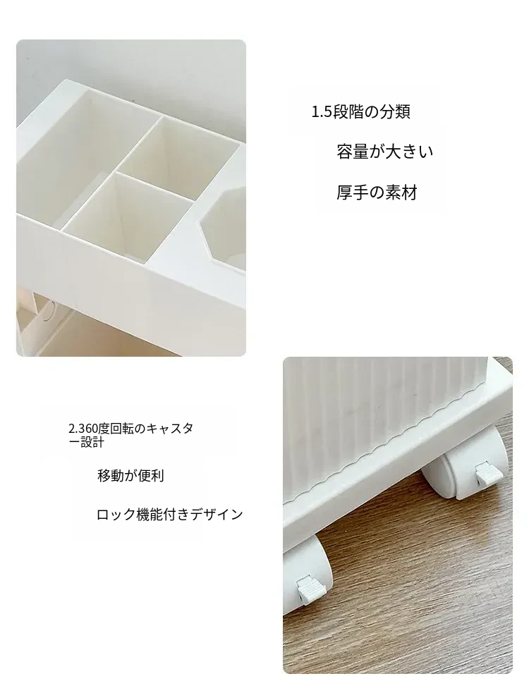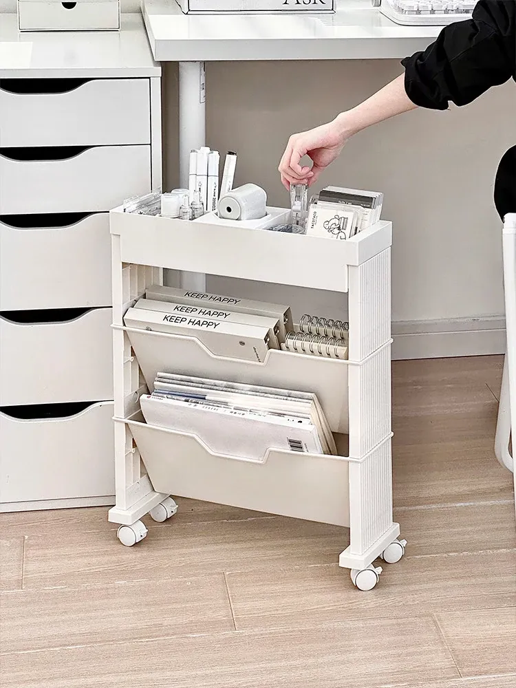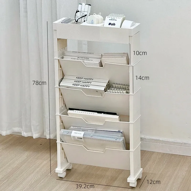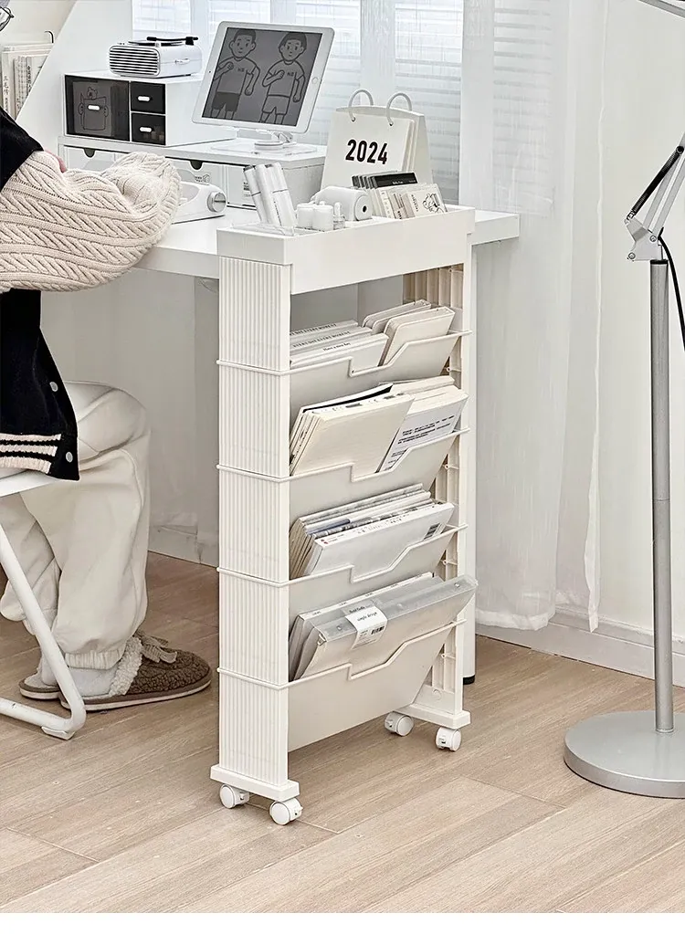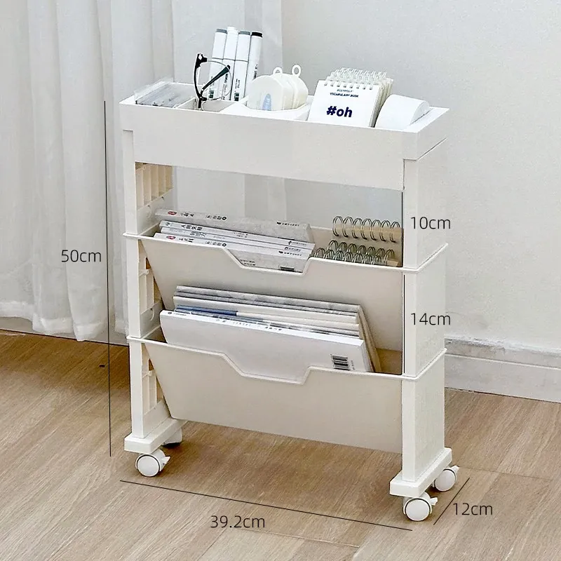 キャスター付き移動式収納ラック - 学生寮や教室に最適な本や小物の整理整頓に役立つ便利なアイテム!デスクの横にぴったりフィットし、スペースを有効活用します。
