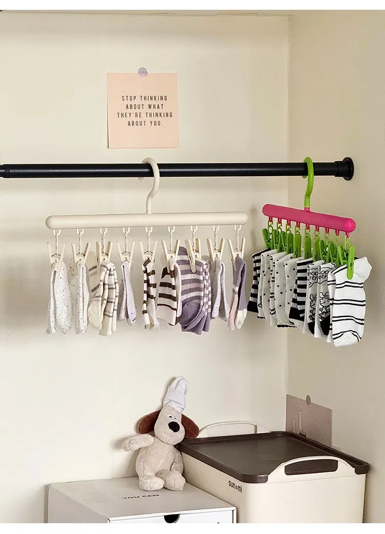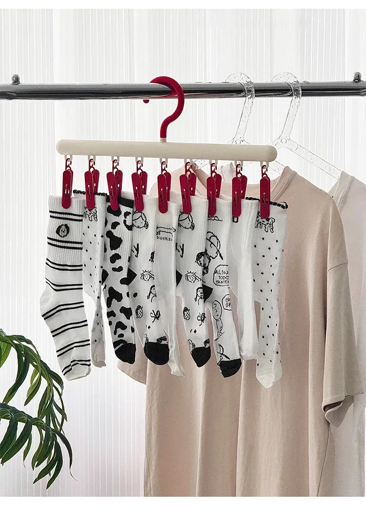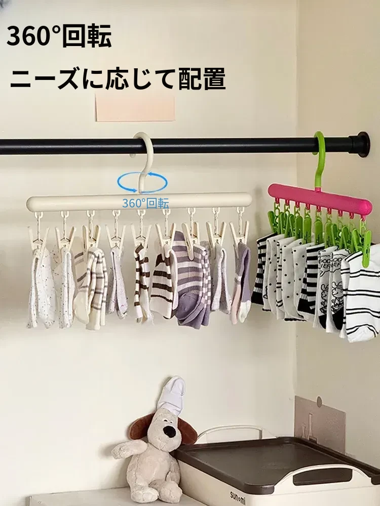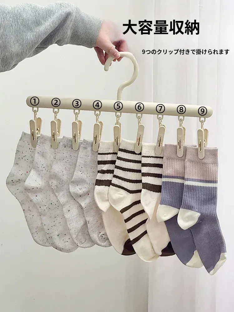 多機能ソックス干しハンガー!クリップ付きでバルコニーや寮のクローゼットに最適、靴下やパンツをしっかり固定できる便利アイテム。省スペースでおしゃれに収納!