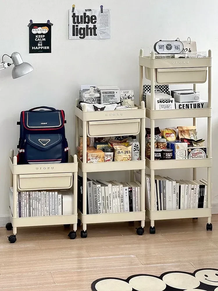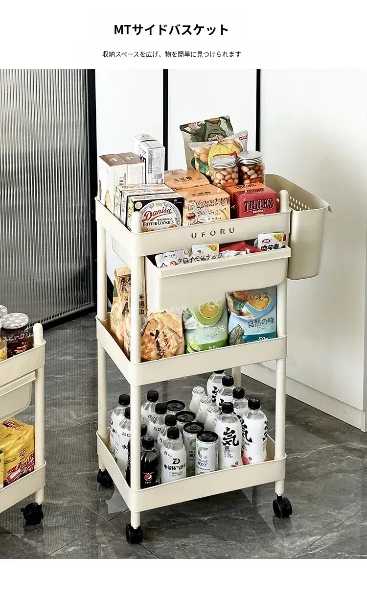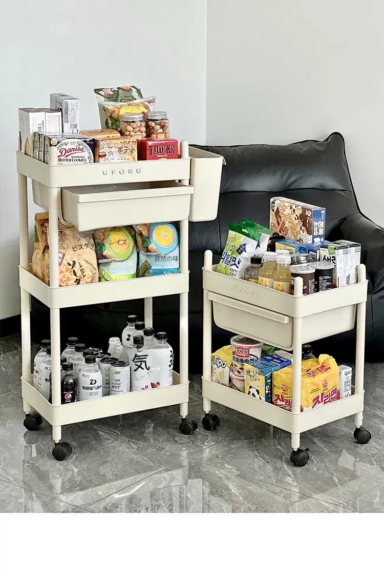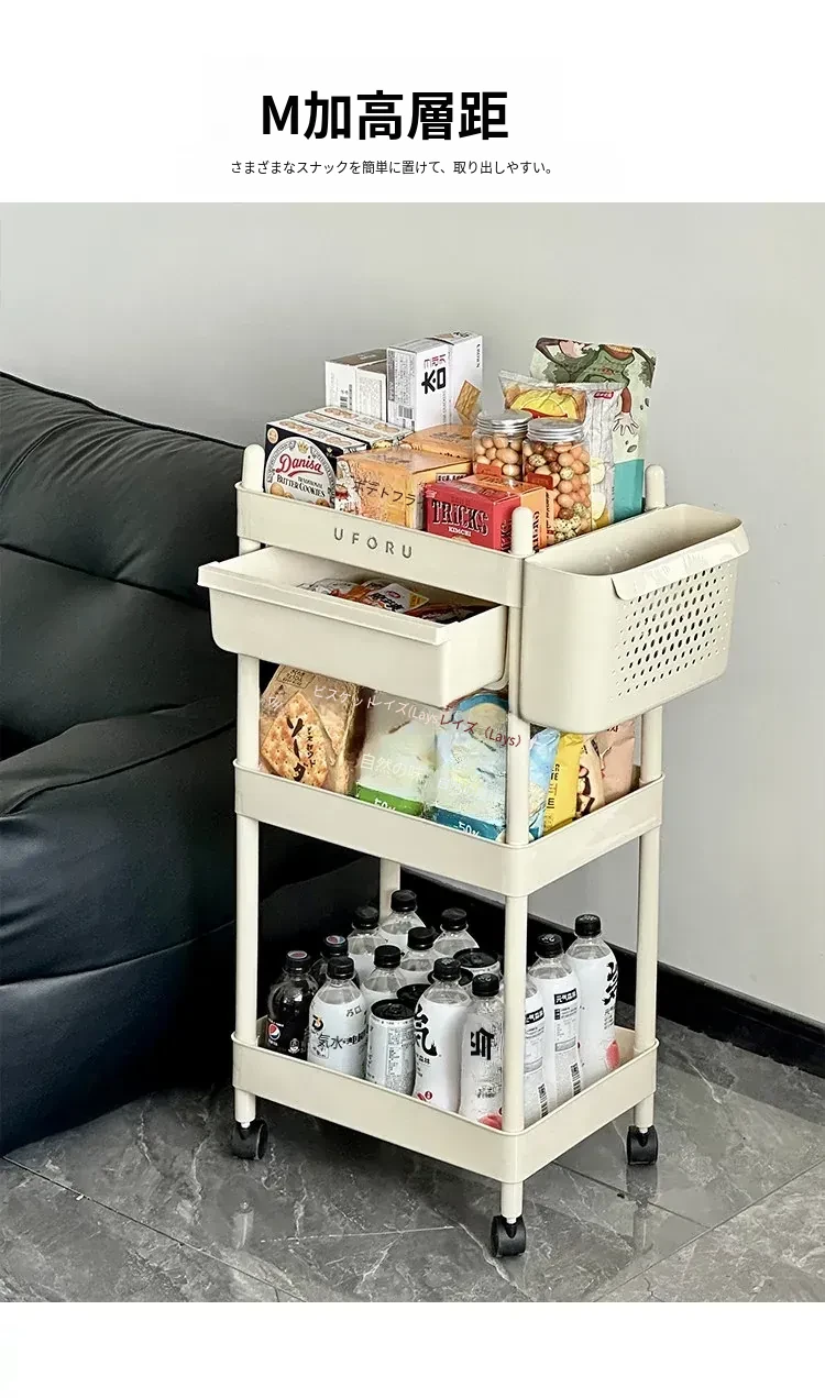 移動式おもちゃ&スナック収納ラック - 家庭用リビング&キッチンに最適な多層整理棚!使い勝手抜群で、どこでも簡単に移動可能!お部屋をすっきり整頓しましょう!