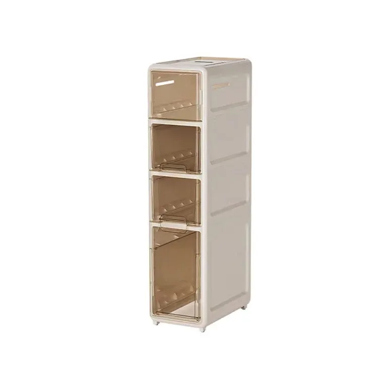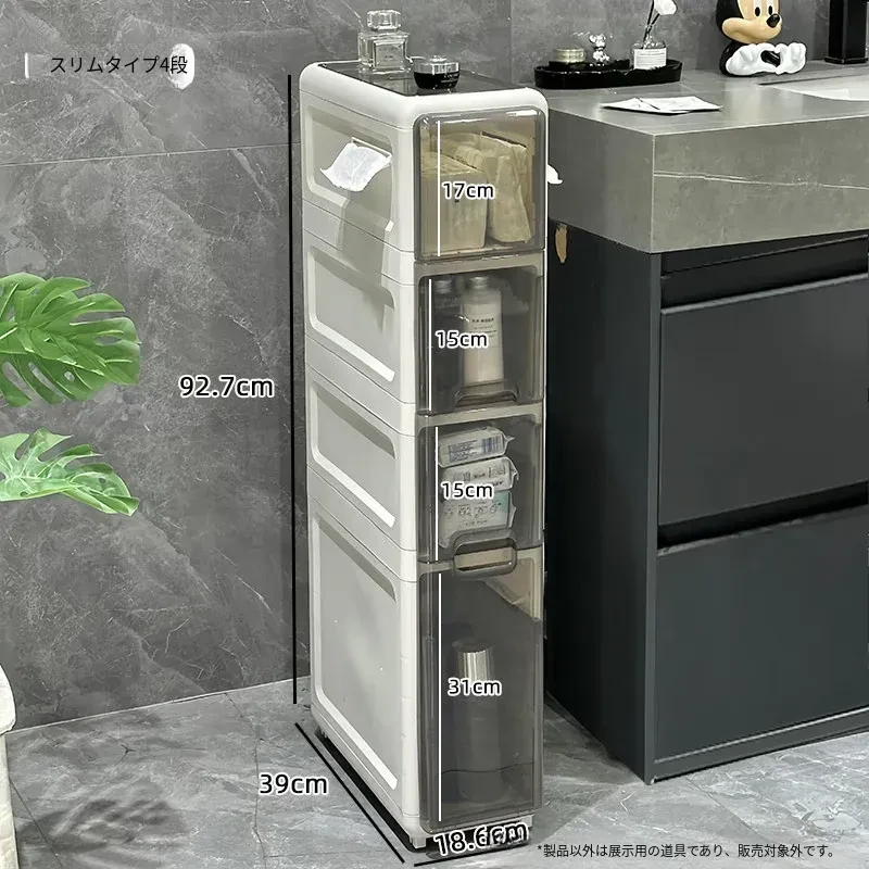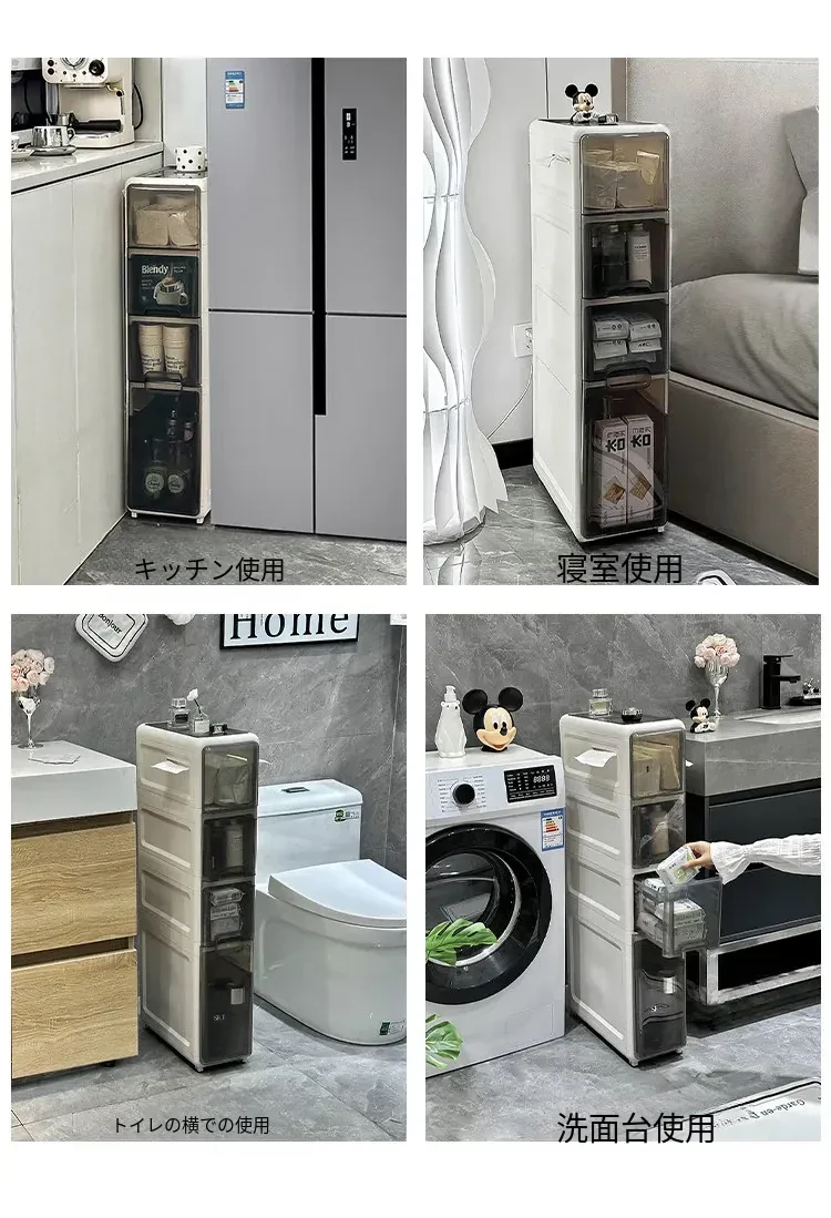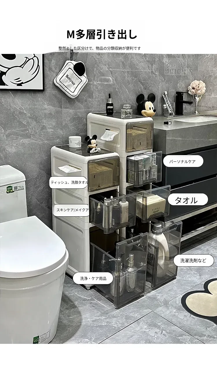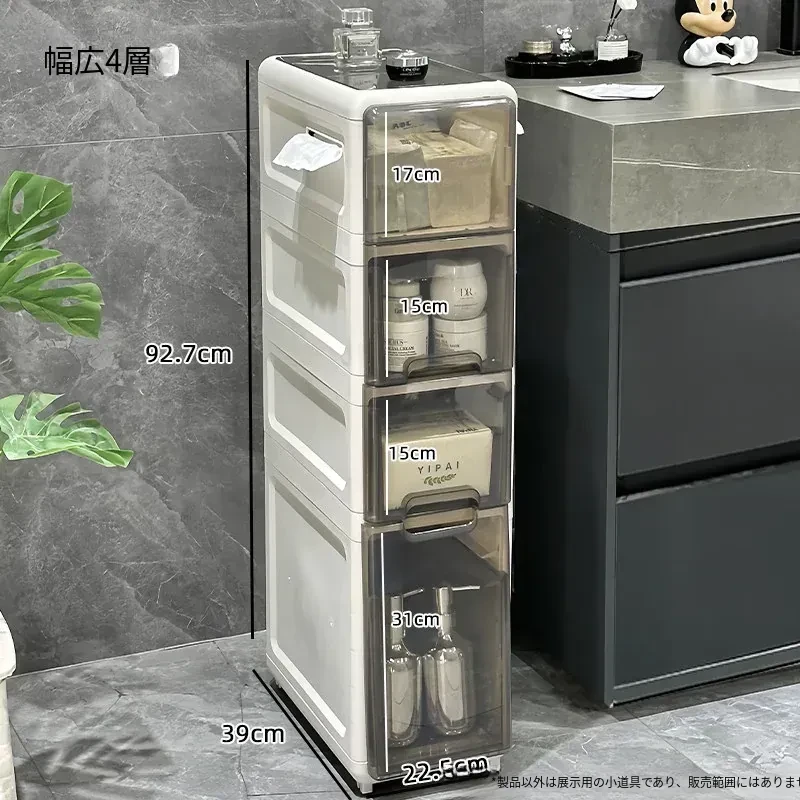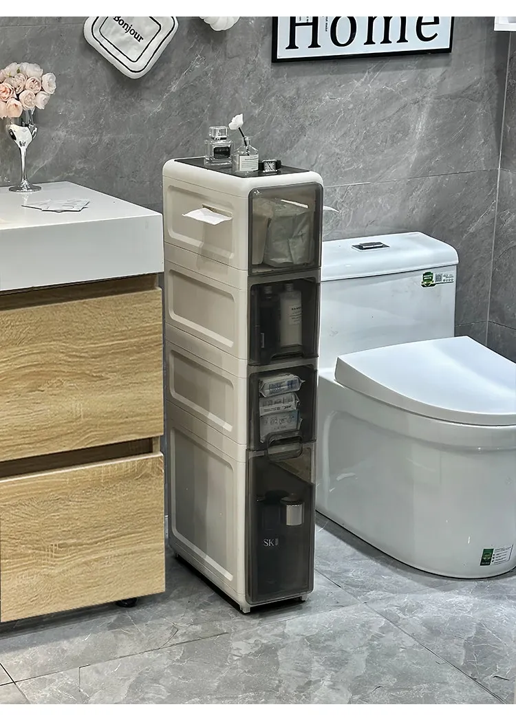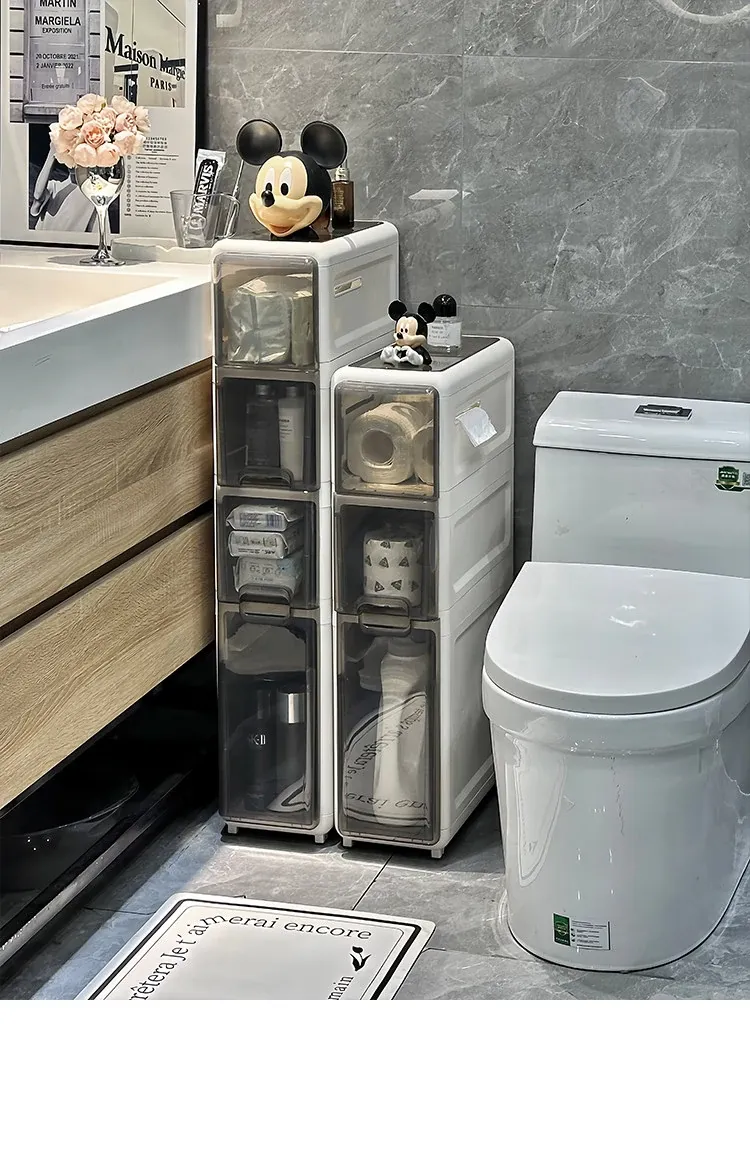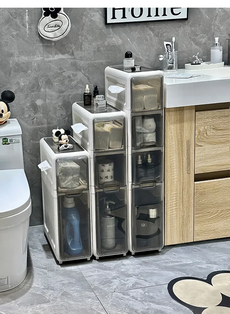 隙間収納キャビネット - バスルームやトイレにぴったりのスリムな収納!トイレ横のスペースを有効活用し、引き出し式で整理整頓も簡単。狭い場所でもおしゃれに使える収納力満点のアイテムです!