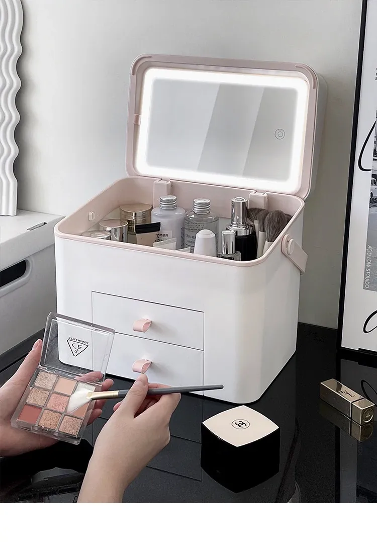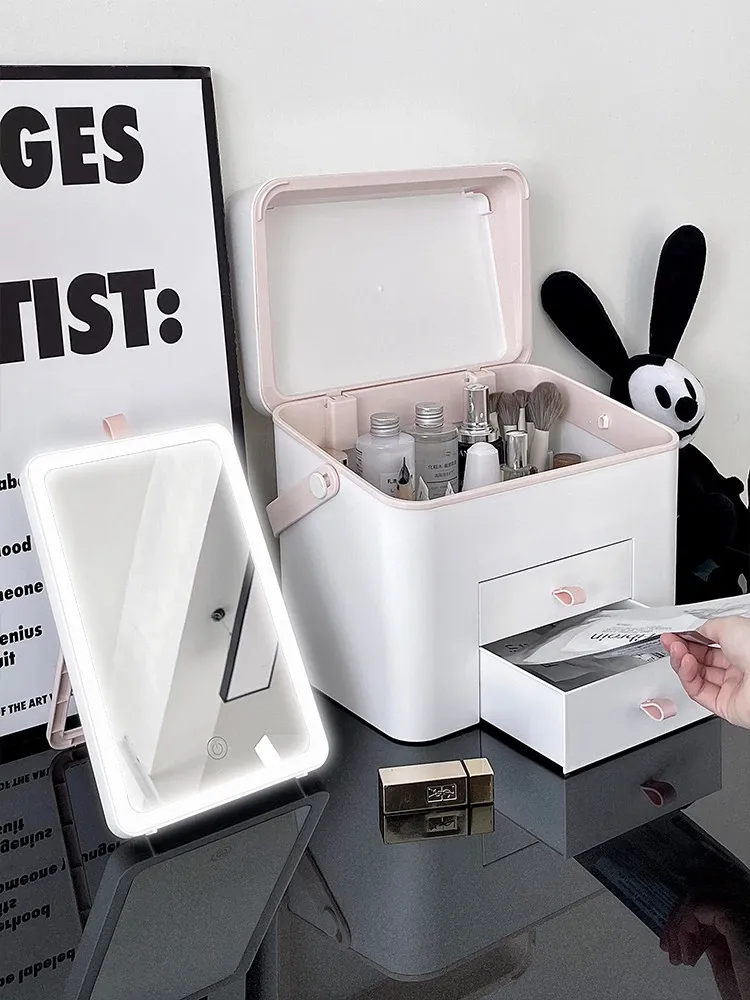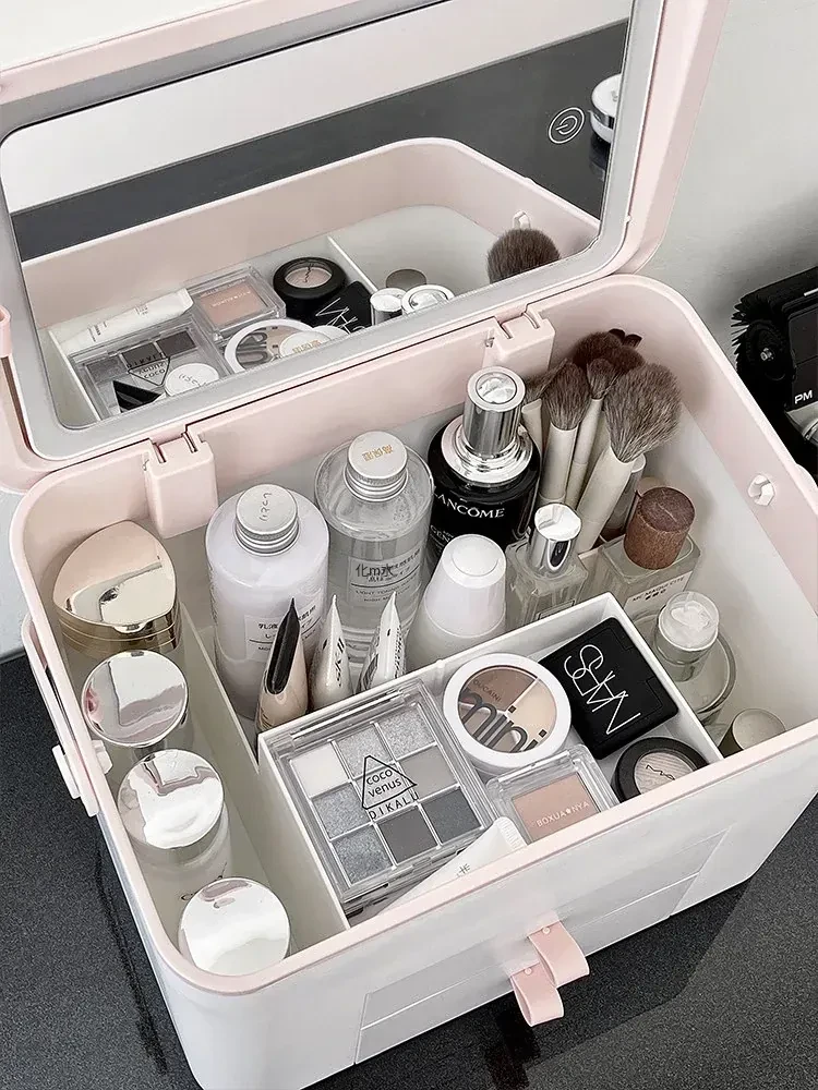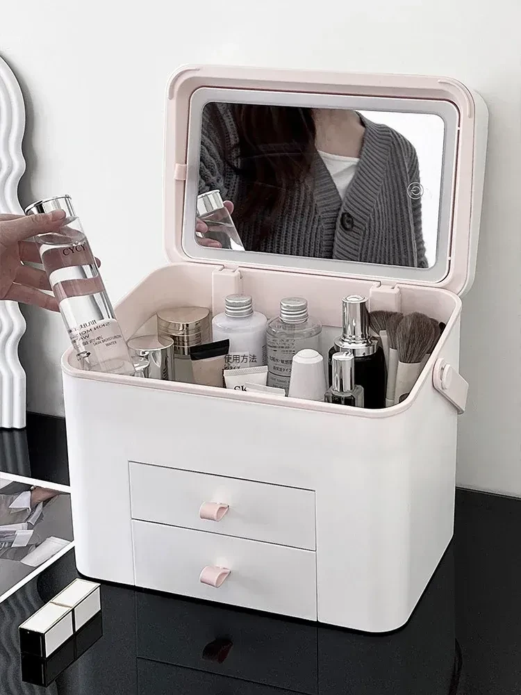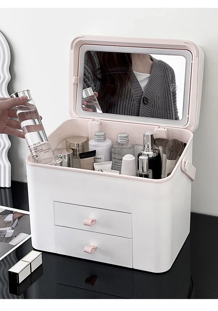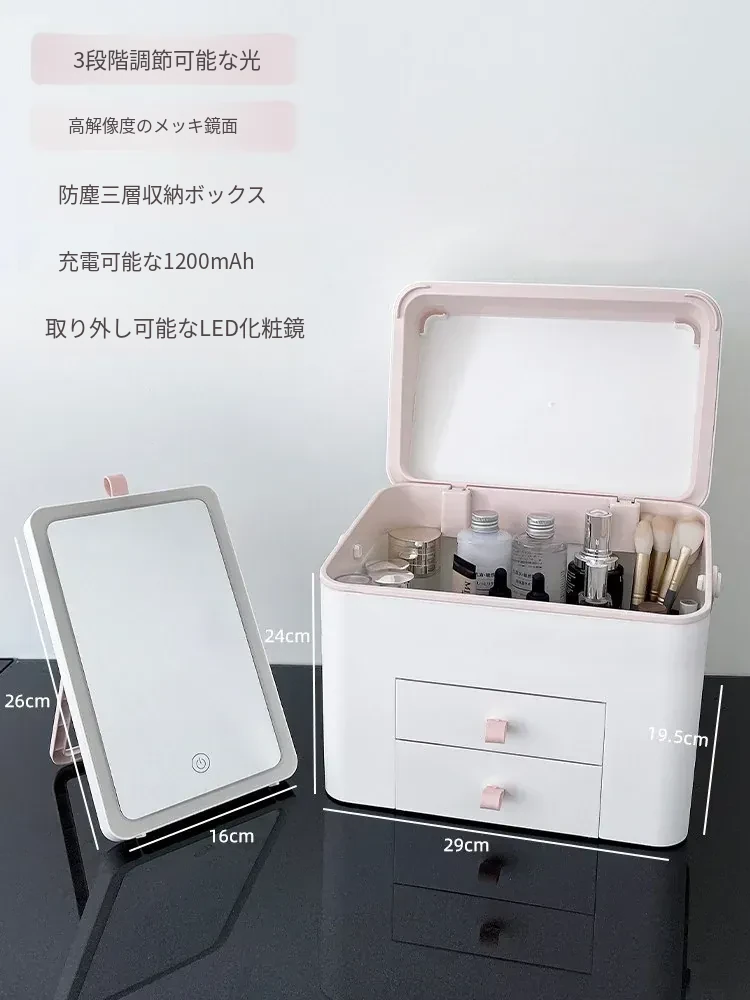 旅行にも最適!鏡付き化粧品収納ボックス - 大容量で便利なスキンケア&香水収納ケース。出張やお出かけにぴったりなアイテム!