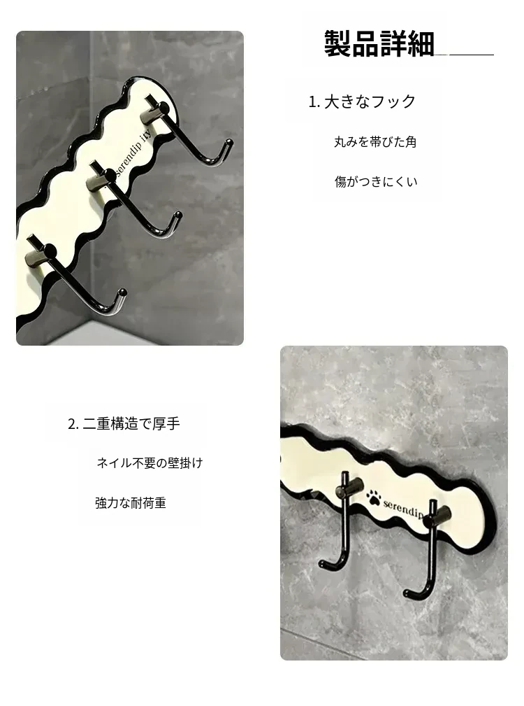 【5フック】✅しっかり固定され、落ちません【釘不要接着剤付き】