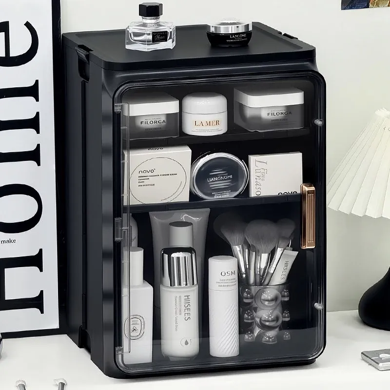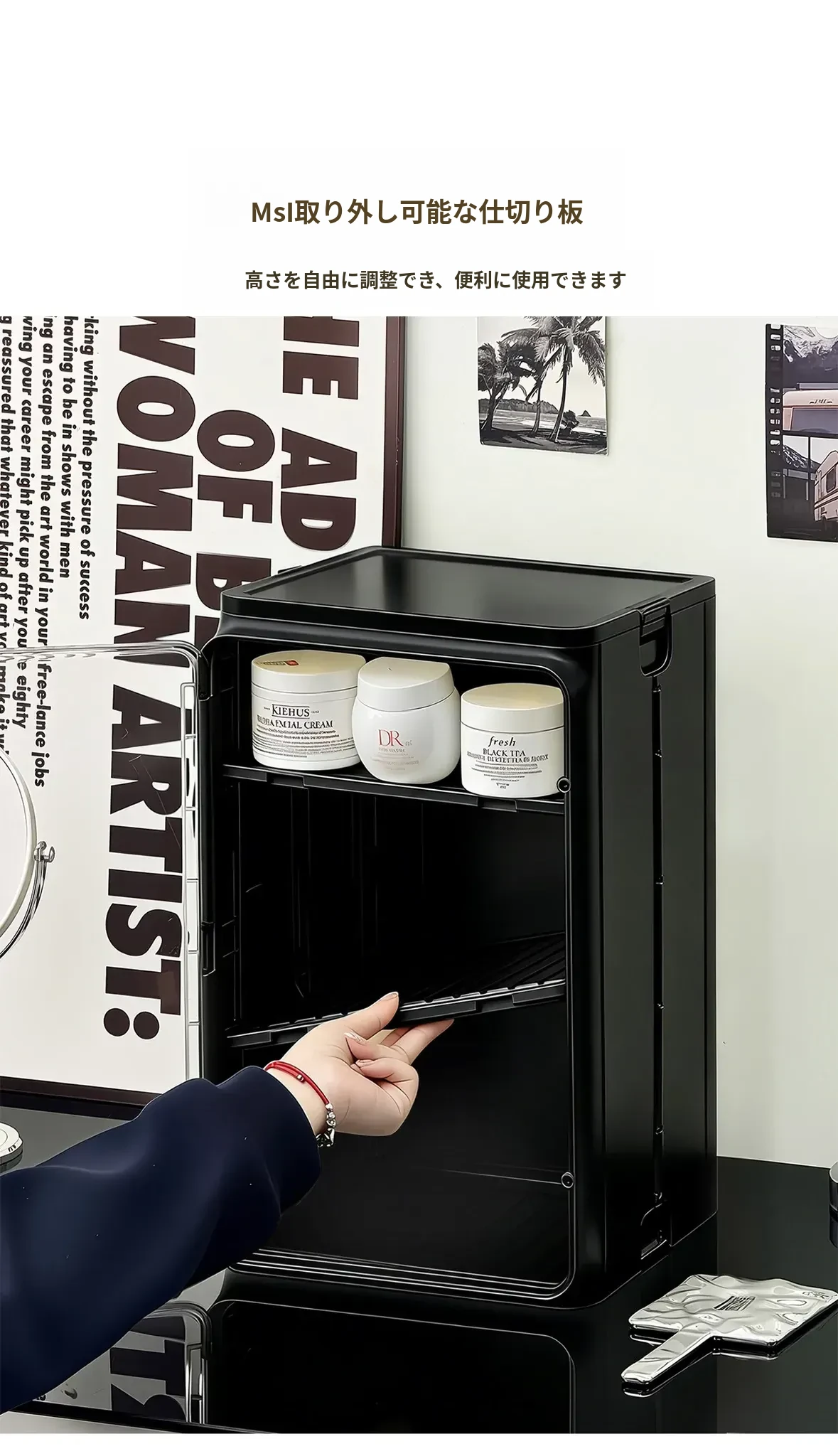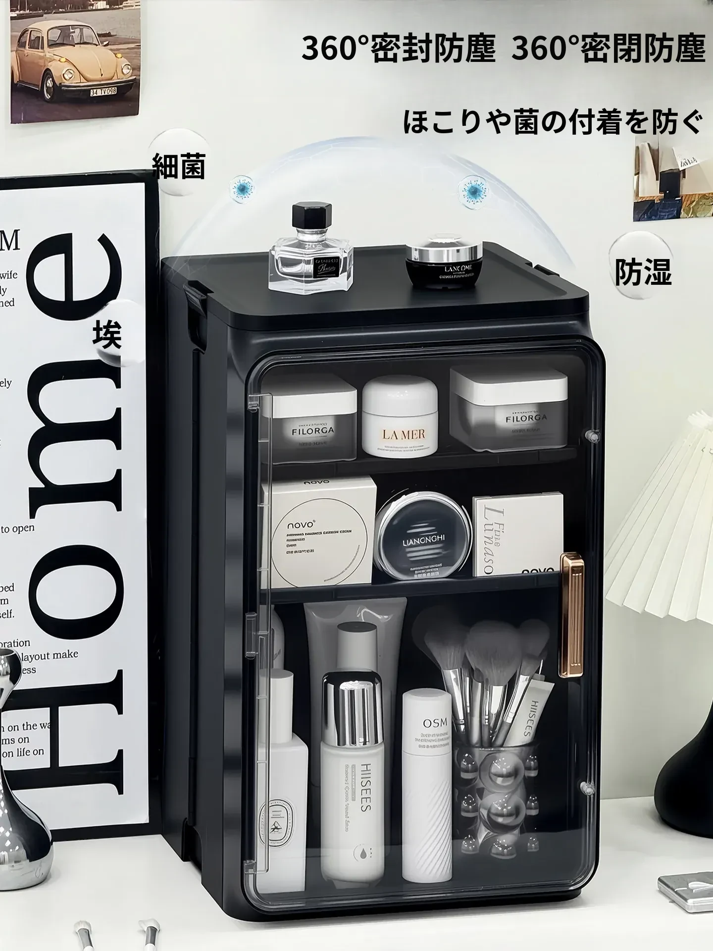 高級感溢れるアクリル製化粧品収納ボックス - デスクトップ防塵設計で、美しいドレッサーを実現!大容量で香水やスキンケア製品をすっきり整理。あなたの美を引き立てる理想的なアイテム!