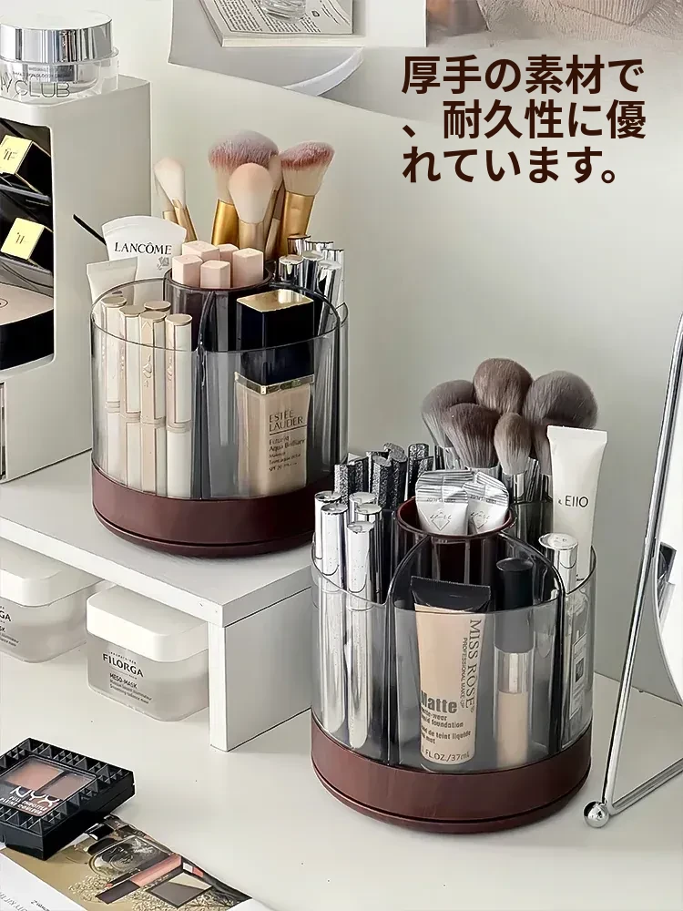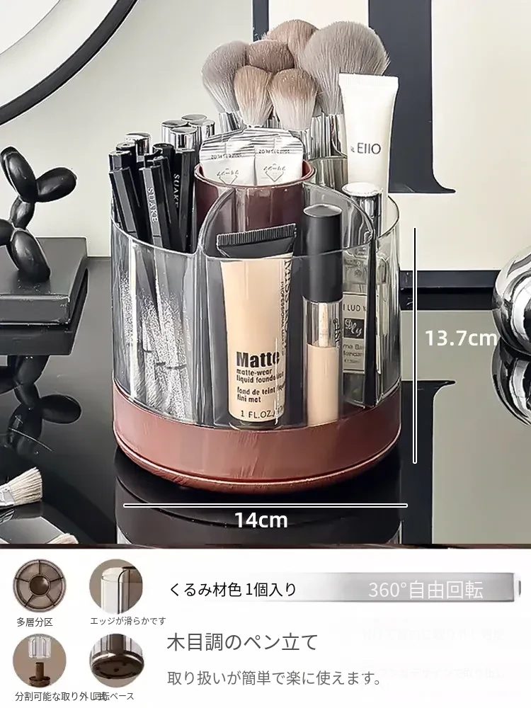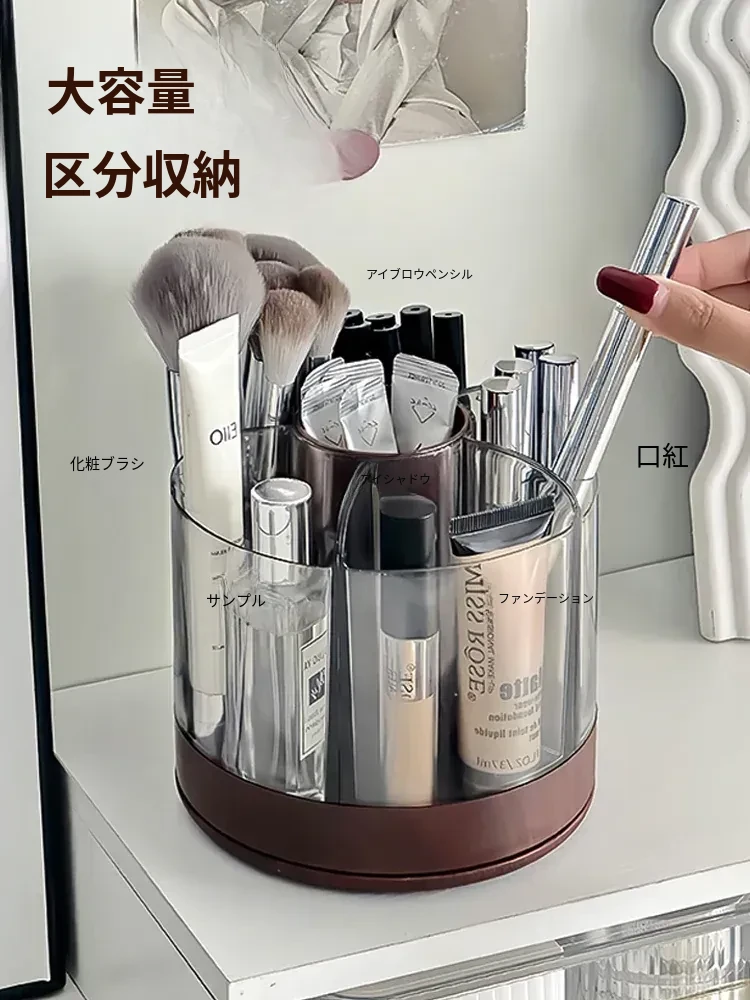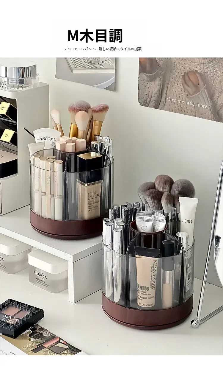 回転式メイクブラシ収納ボックス - デスクトップで整理整頓!化粧品、リップスティック、眉ペン、ブラシをスマートに収納できるおしゃれなアイテム。メイクアップ台を美しく演出します!