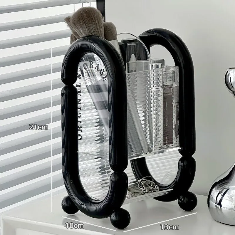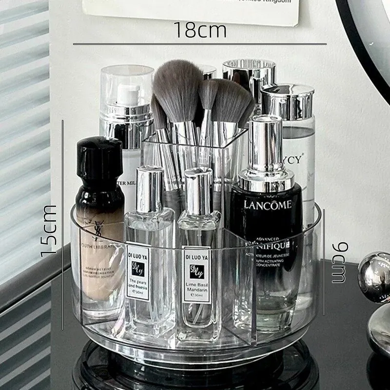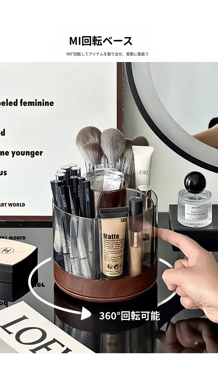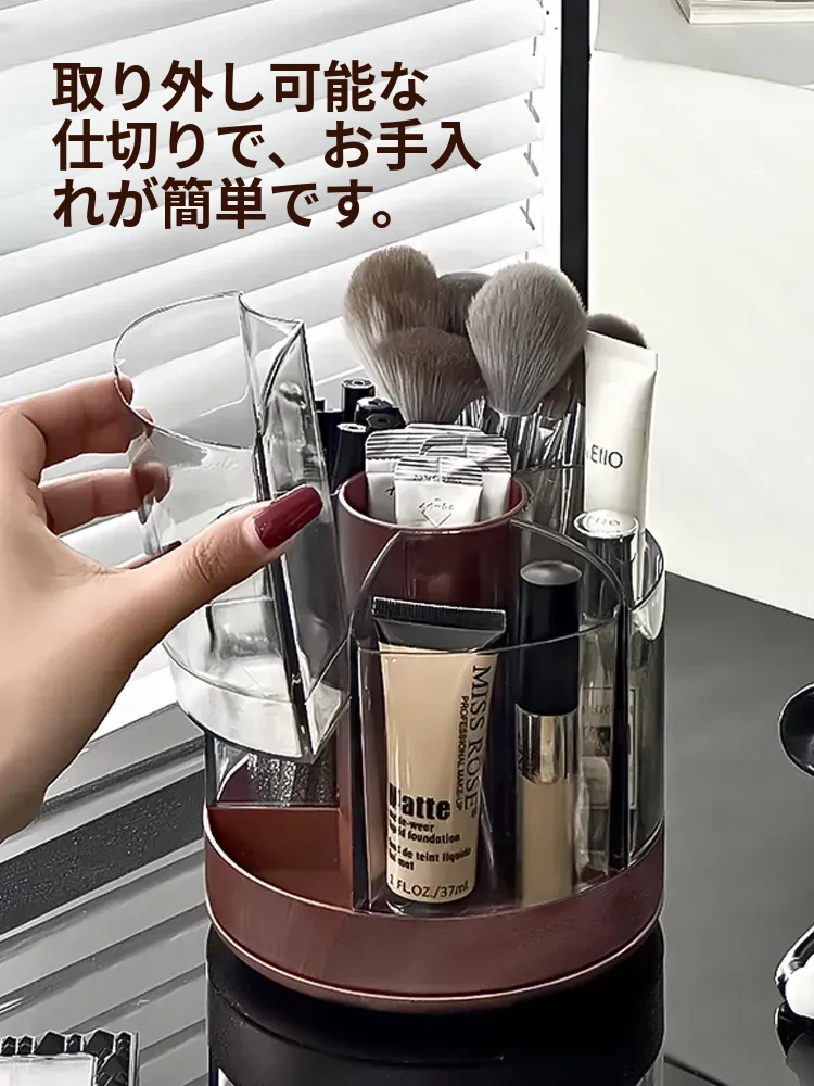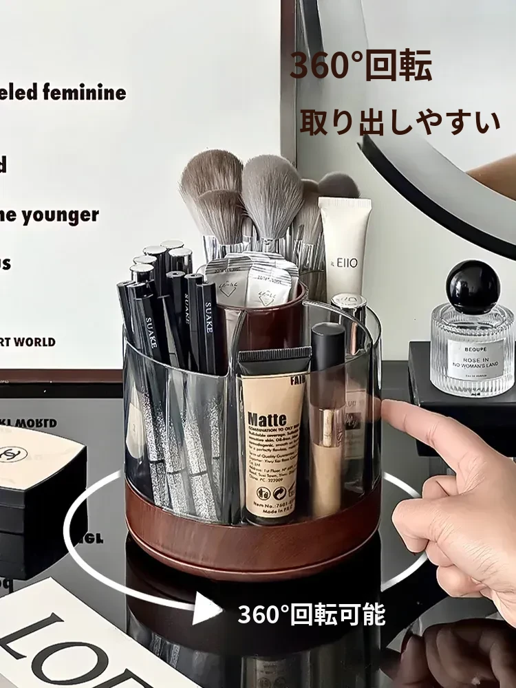 回転式メイクブラシ収納ボックス - デスクトップで整理整頓!化粧品、リップスティック、眉ペン、ブラシをスマートに収納できるおしゃれなアイテム。メイクアップ台を美しく演出します!